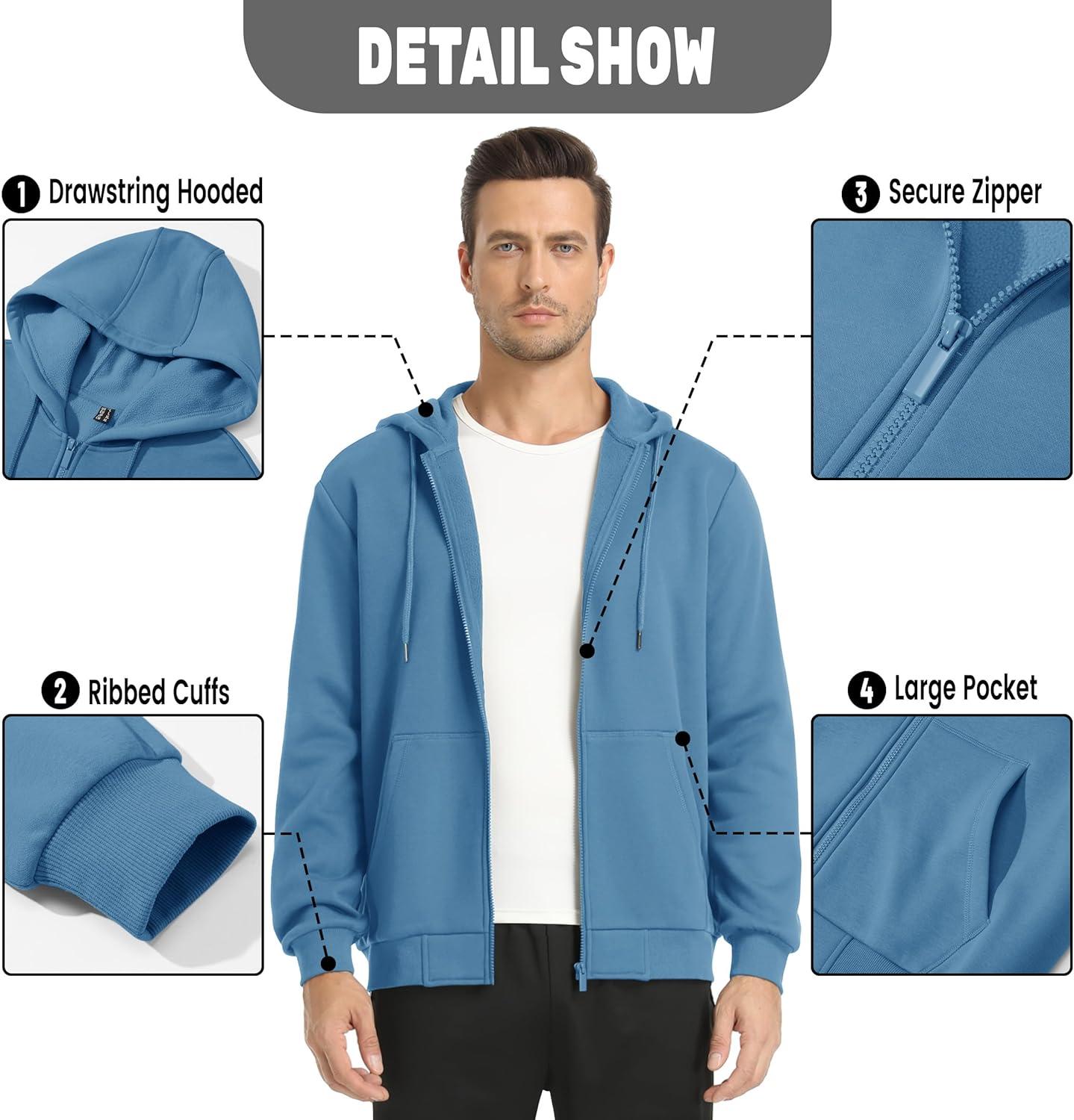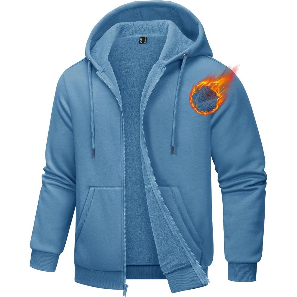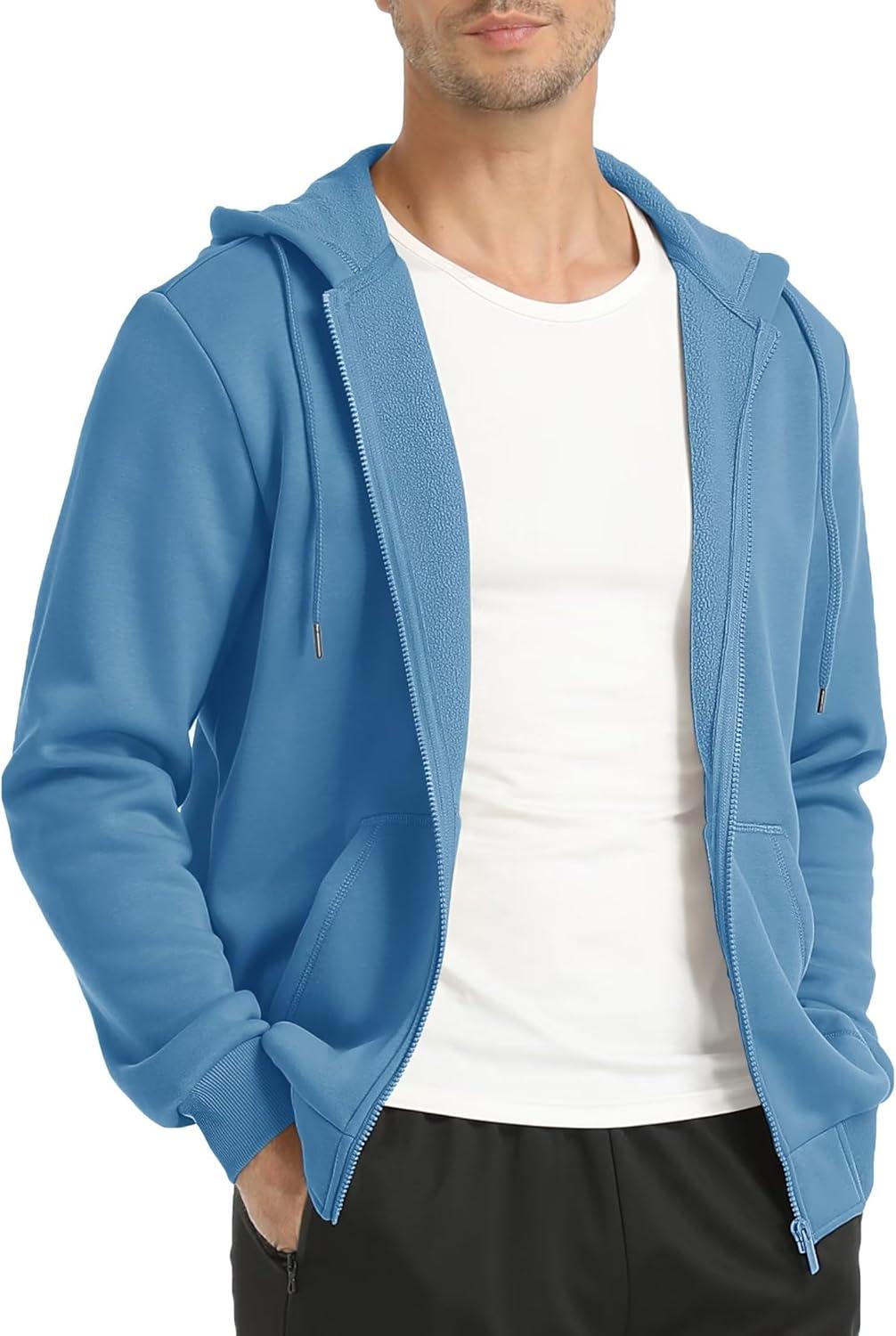 TACVASEN Mens Zip Up Hoodie Fleece Lined Hoodie Jacket Men Full Zip Sweatshirts Outdoor Thermal Athletic Hoodies(Ice Blue)