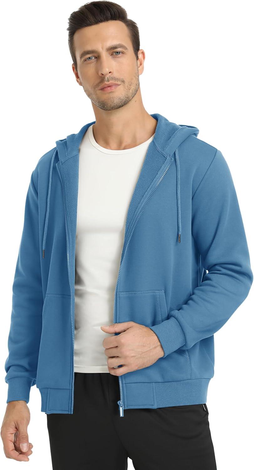 TACVASEN Mens Zip Up Hoodie Fleece Lined Hoodie Jacket Men Full Zip Sweatshirts Outdoor Thermal Athletic Hoodies(Haze Blue)