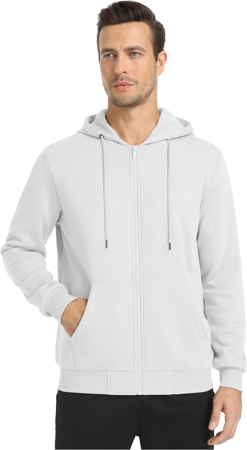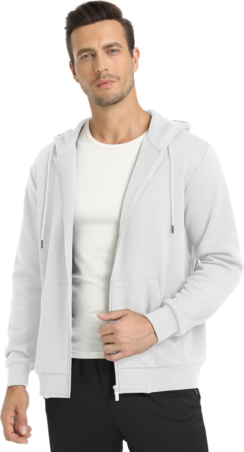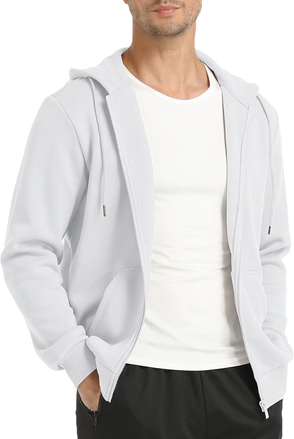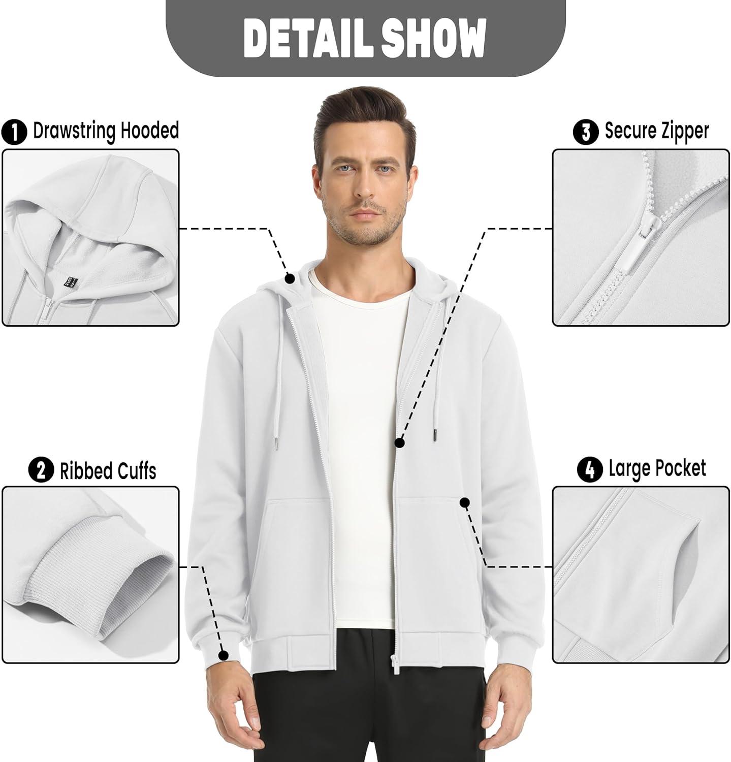 TACVASEN Mens Zip Up Hoodie Fleece Lined Hoodie Jacket Men Full Zip Sweatshirts Outdoor Thermal Athletic Hoodies(White)