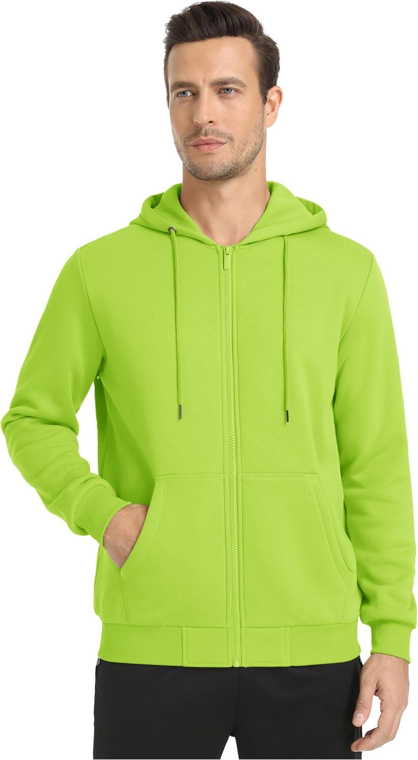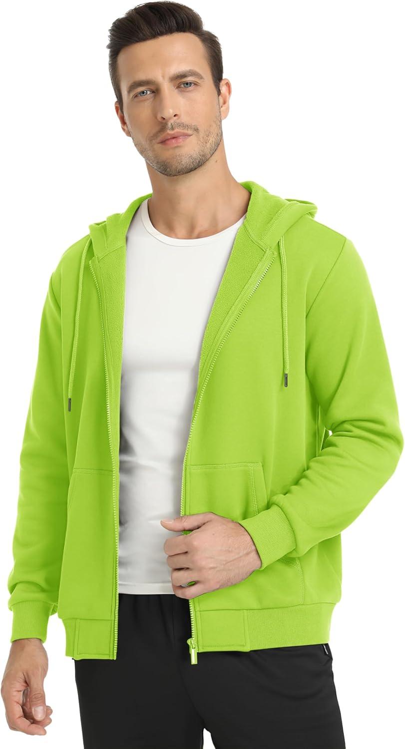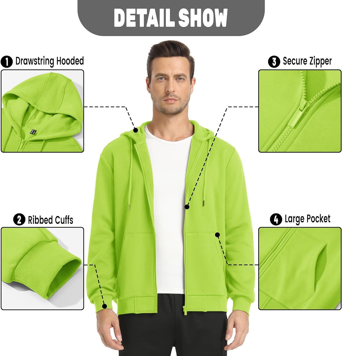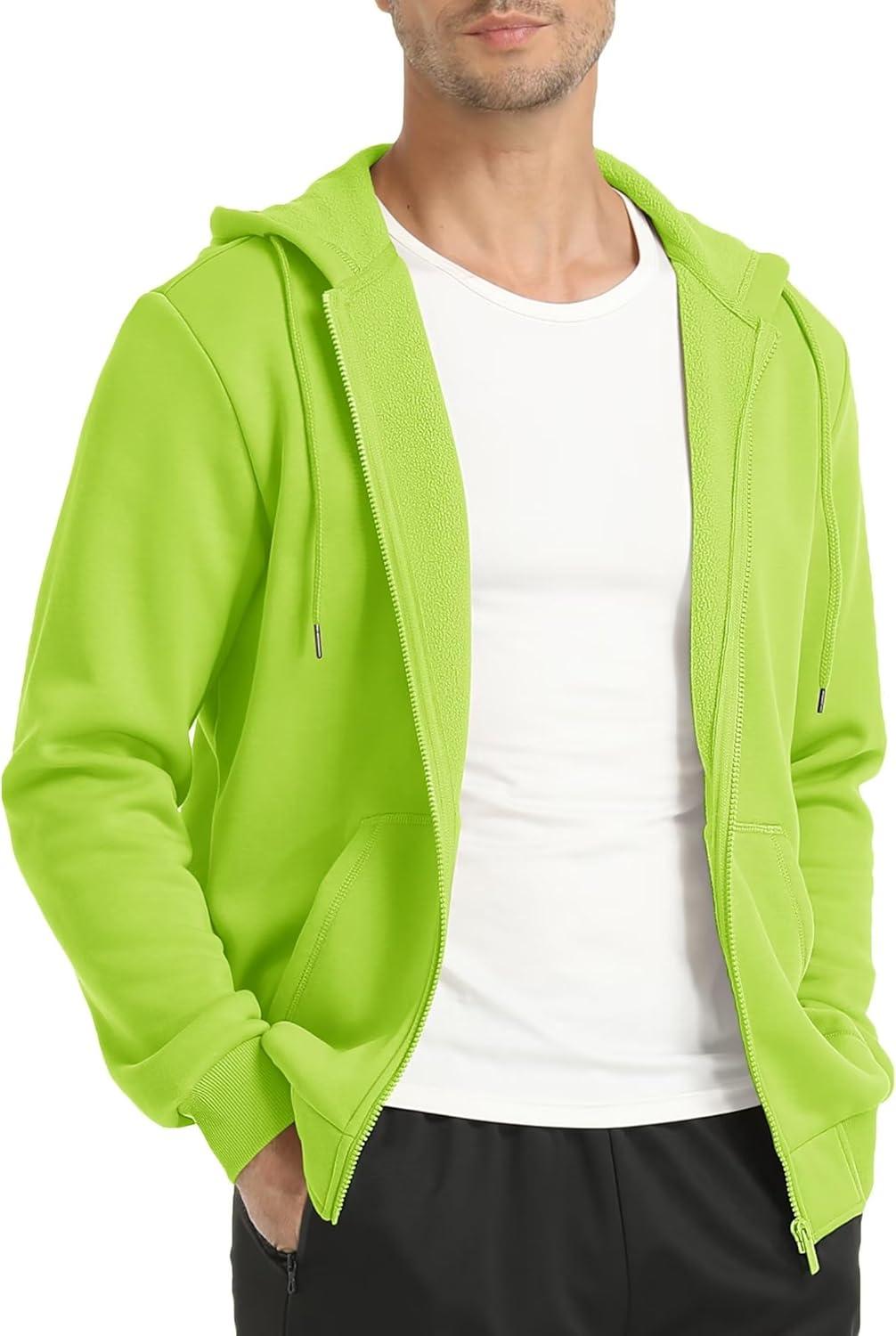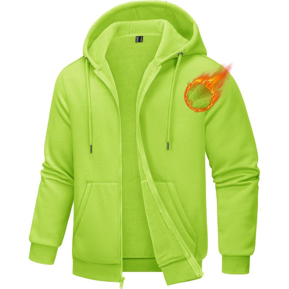 TACVASEN Mens Zip Up Hoodie Fleece Lined Hoodie Jacket Men Full Zip Sweatshirts Outdoor Thermal Athletic Hoodies(Yellow Green)