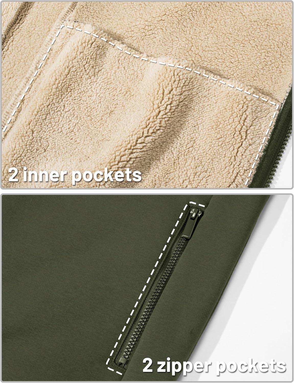 TACVASEN Men’s Zip Up Sherpa Lined Hoodies Thick Fleece Heavyweight Jacket Windproof Thermal Zipper Sweatshirt(05 Green)