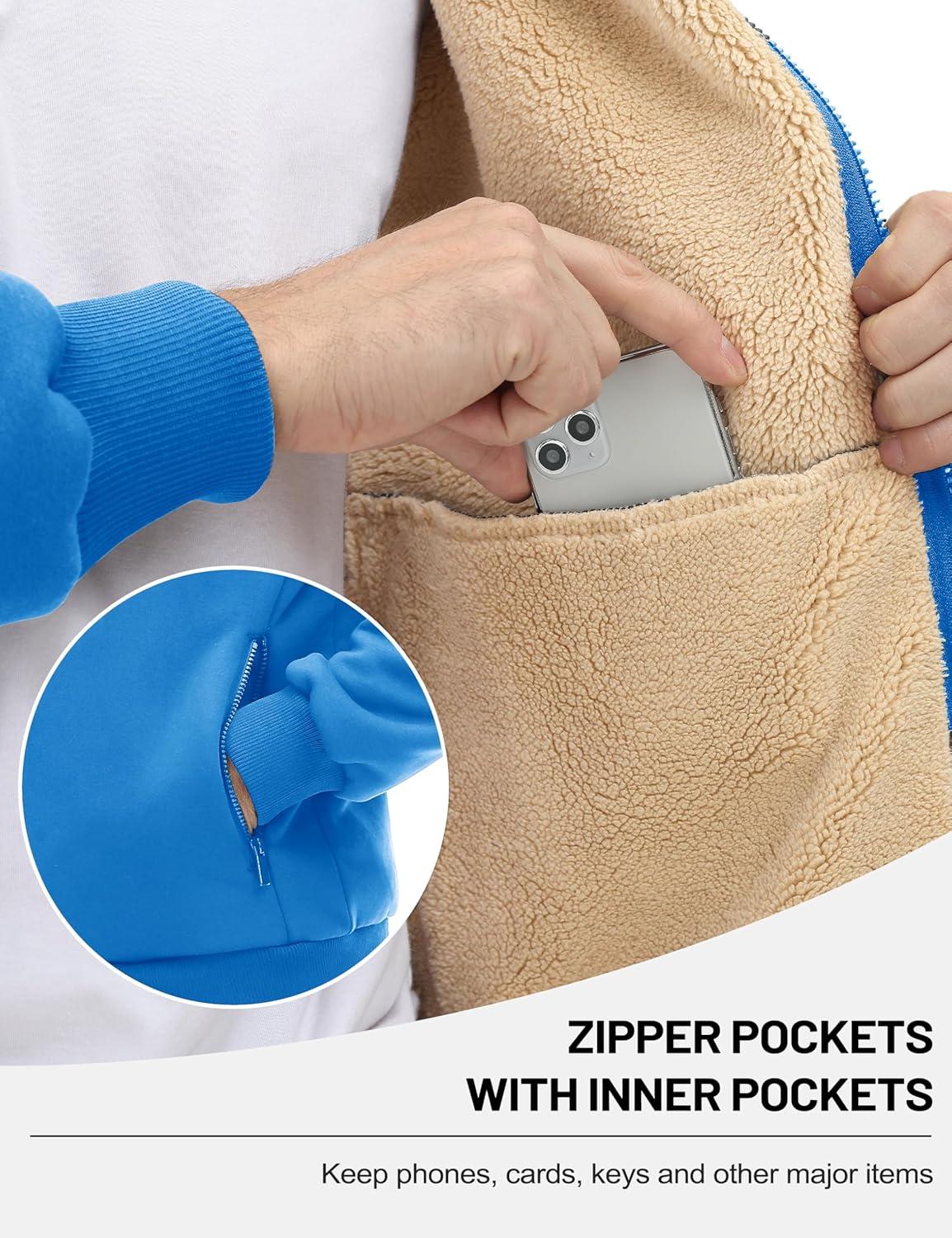 TACVASEN Men’s Zip Up Sherpa Lined Hoodies Thick Fleece Heavyweight Jacket Windproof Thermal Zipper Sweatshirt(09 Azure)