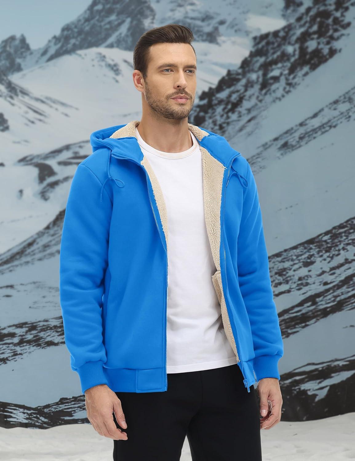 TACVASEN Men’s Zip Up Sherpa Lined Hoodies Thick Fleece Heavyweight Jacket Windproof Thermal Zipper Sweatshirt(Azure)