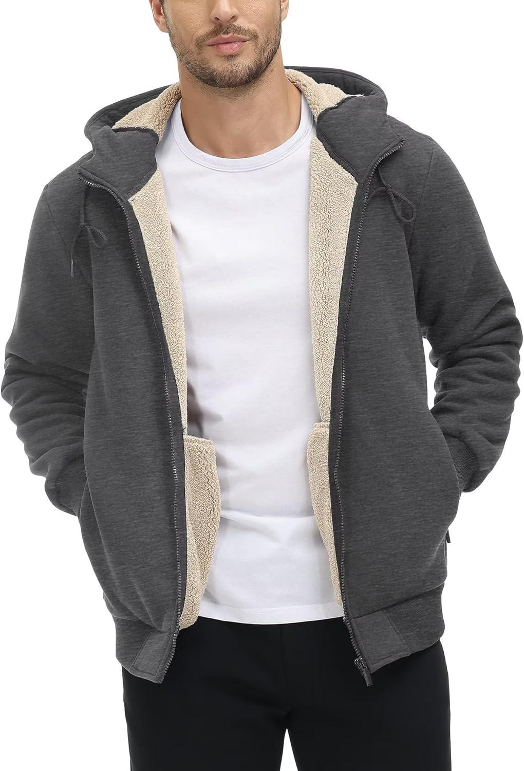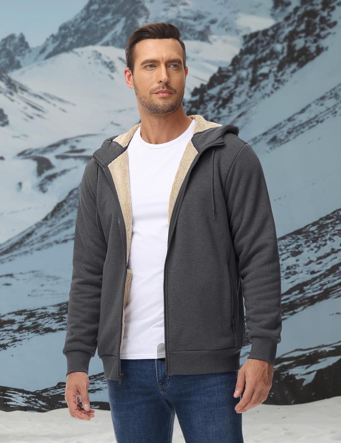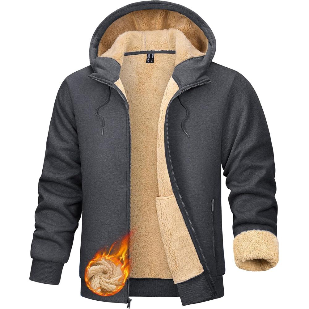 TACVASEN Men’s Zip Up Sherpa Lined Hoodies Thick Fleece Heavyweight Jacket Windproof Thermal Zipper Sweatshirt(Dark Grey)