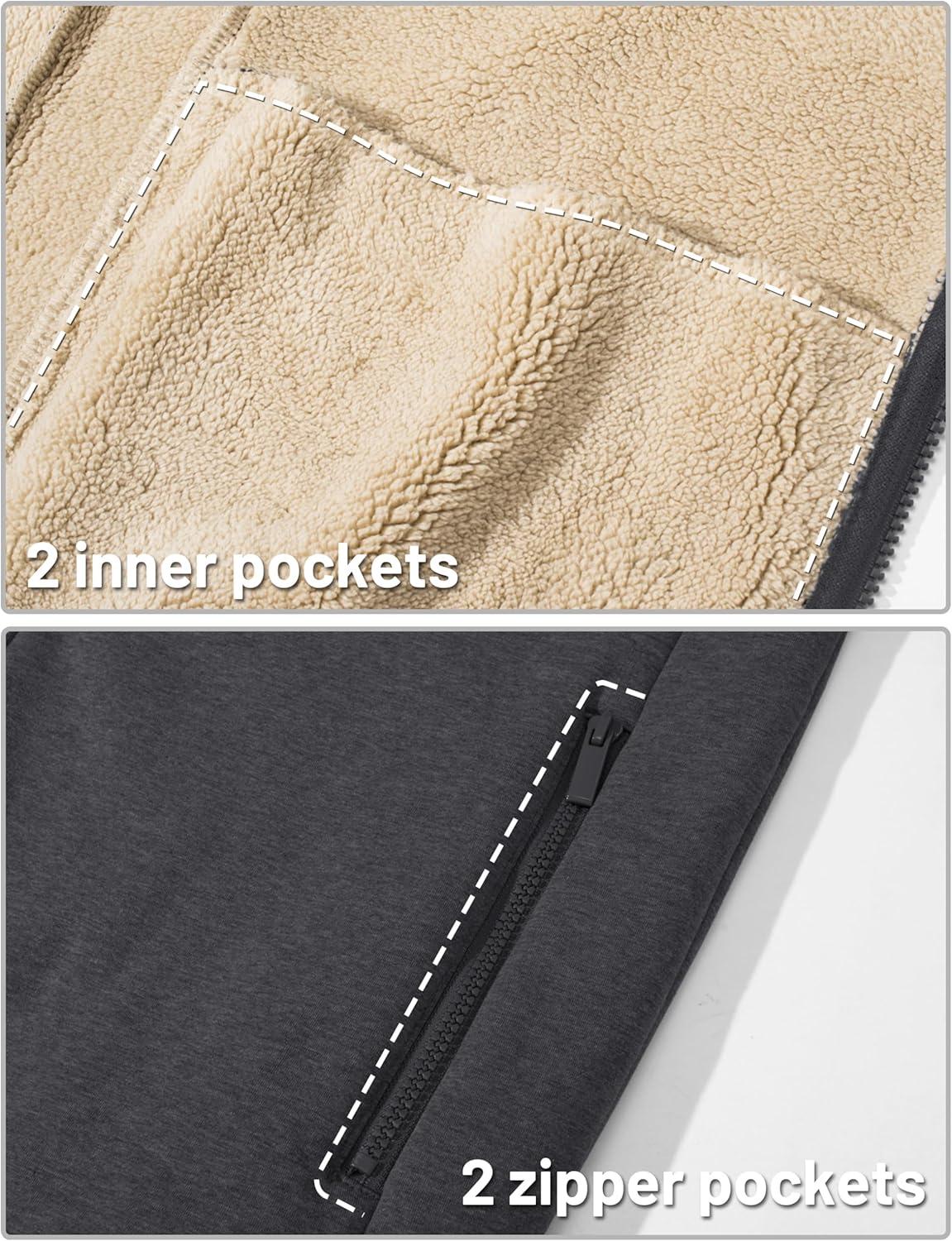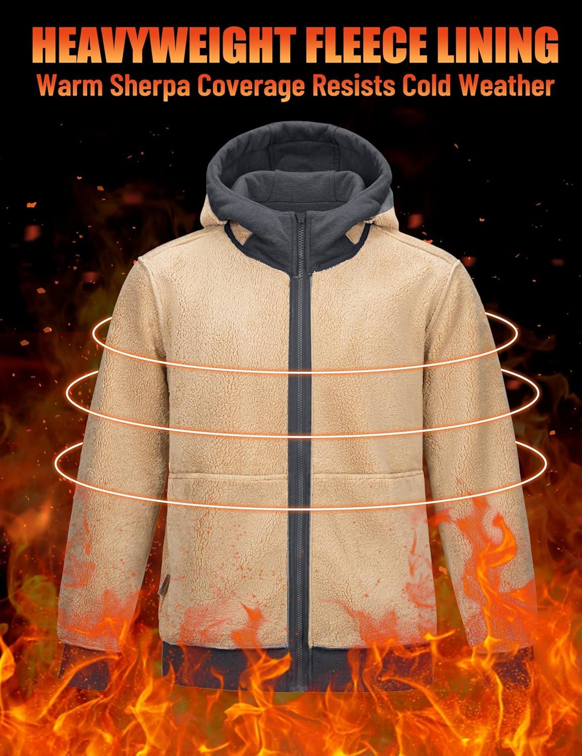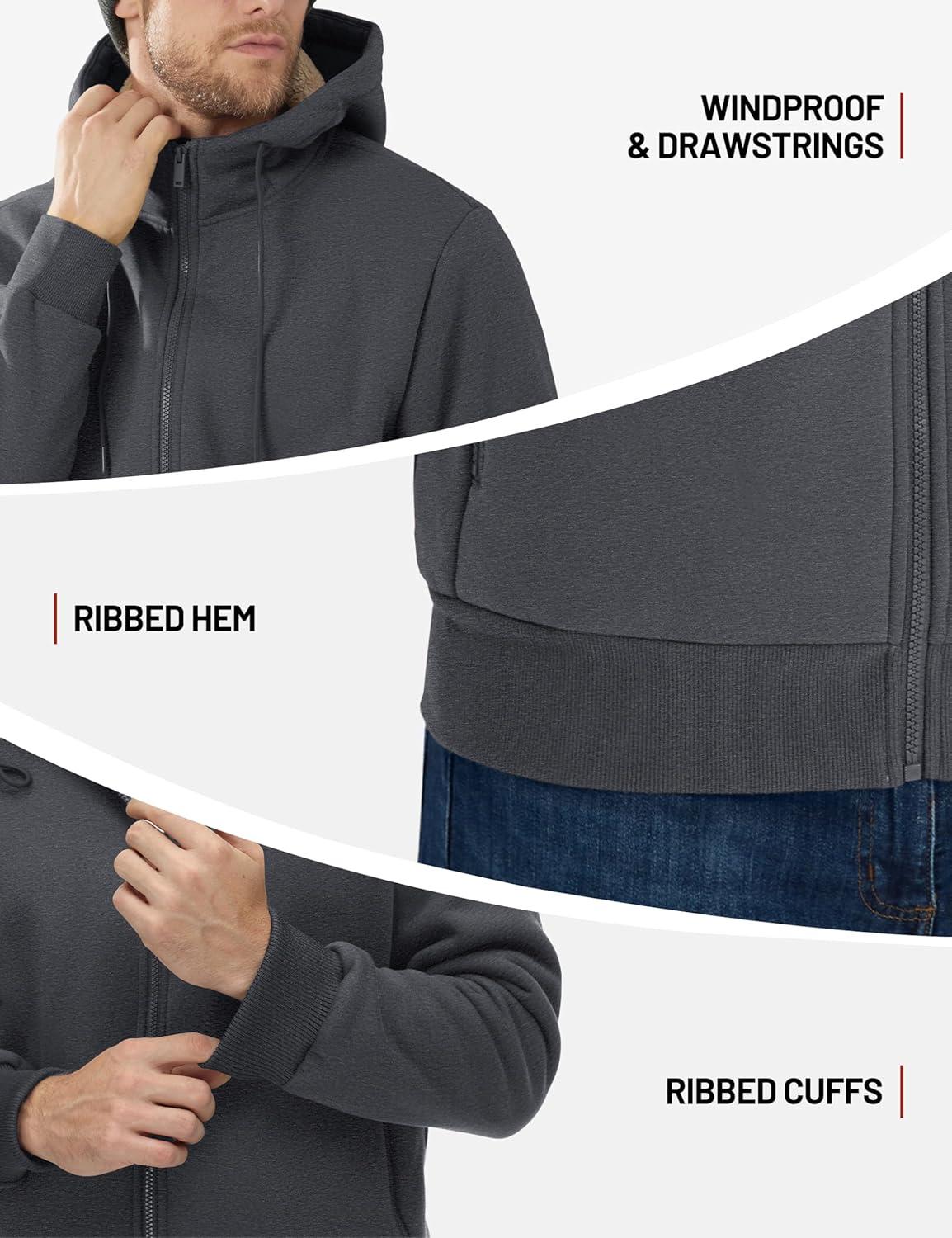 TACVASEN Men’s Zip Up Sherpa Lined Hoodies Thick Fleece Heavyweight Jacket Windproof Thermal Zipper Sweatshirt(Dark Grey)