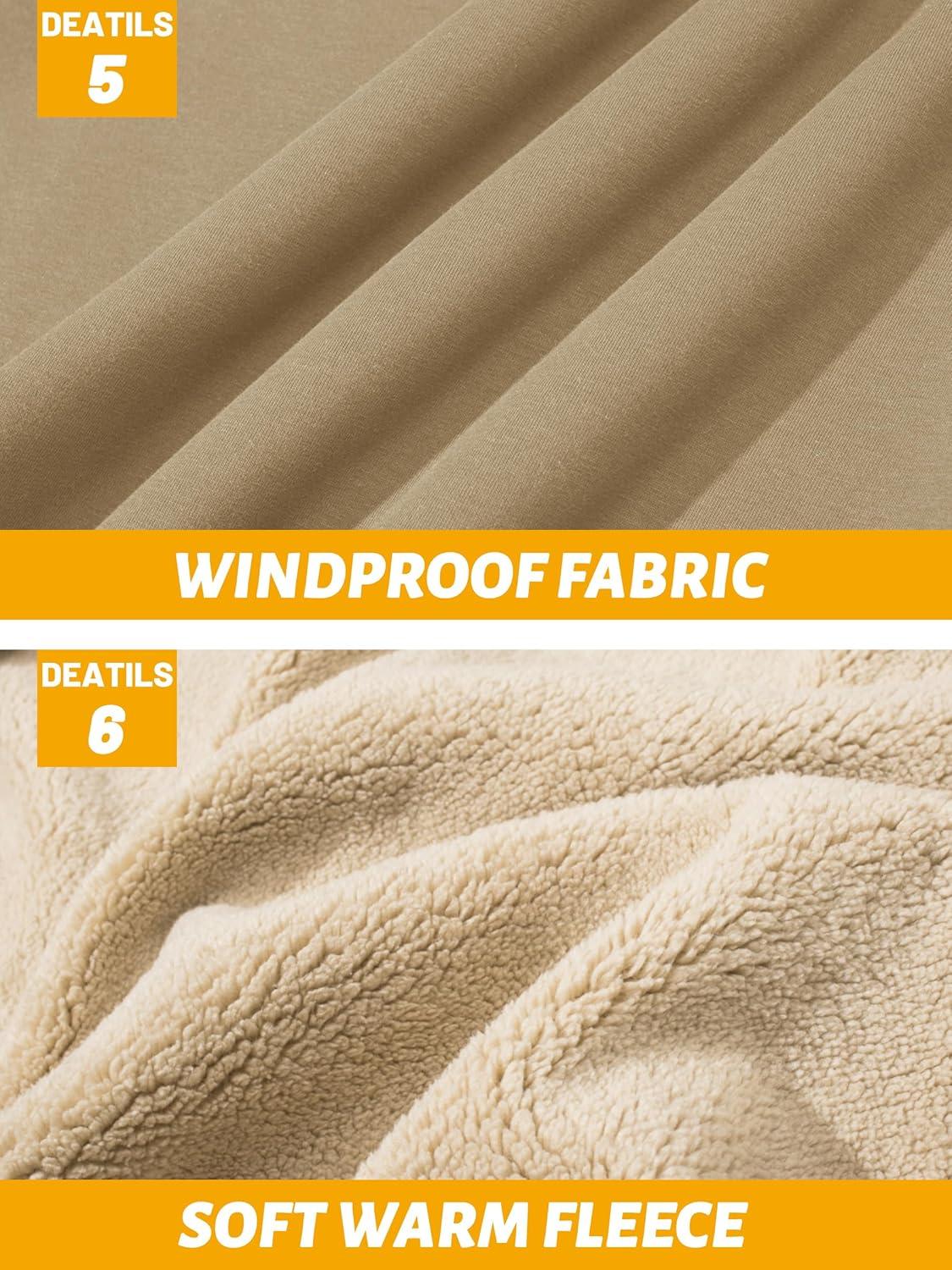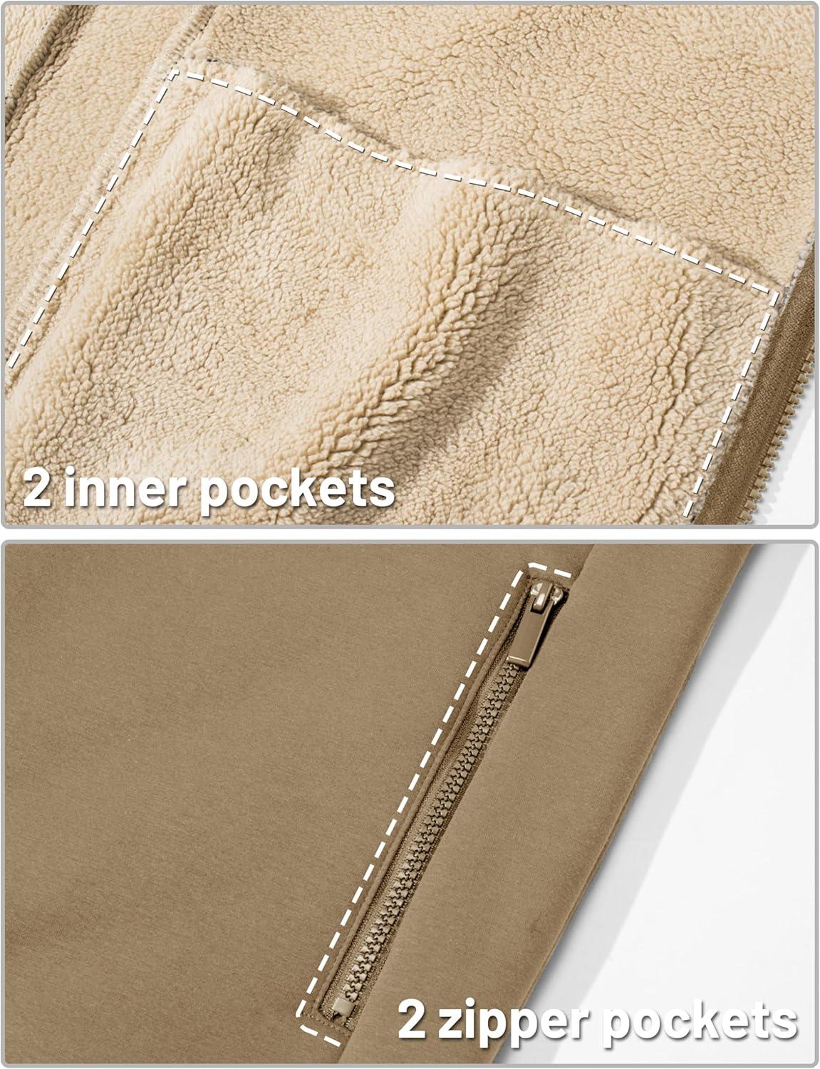 TACVASEN Men’s Zip Up Sherpa Lined Hoodies Thick Fleece Heavyweight Jacket Windproof Thermal Zipper Sweatshirt(Khaki)