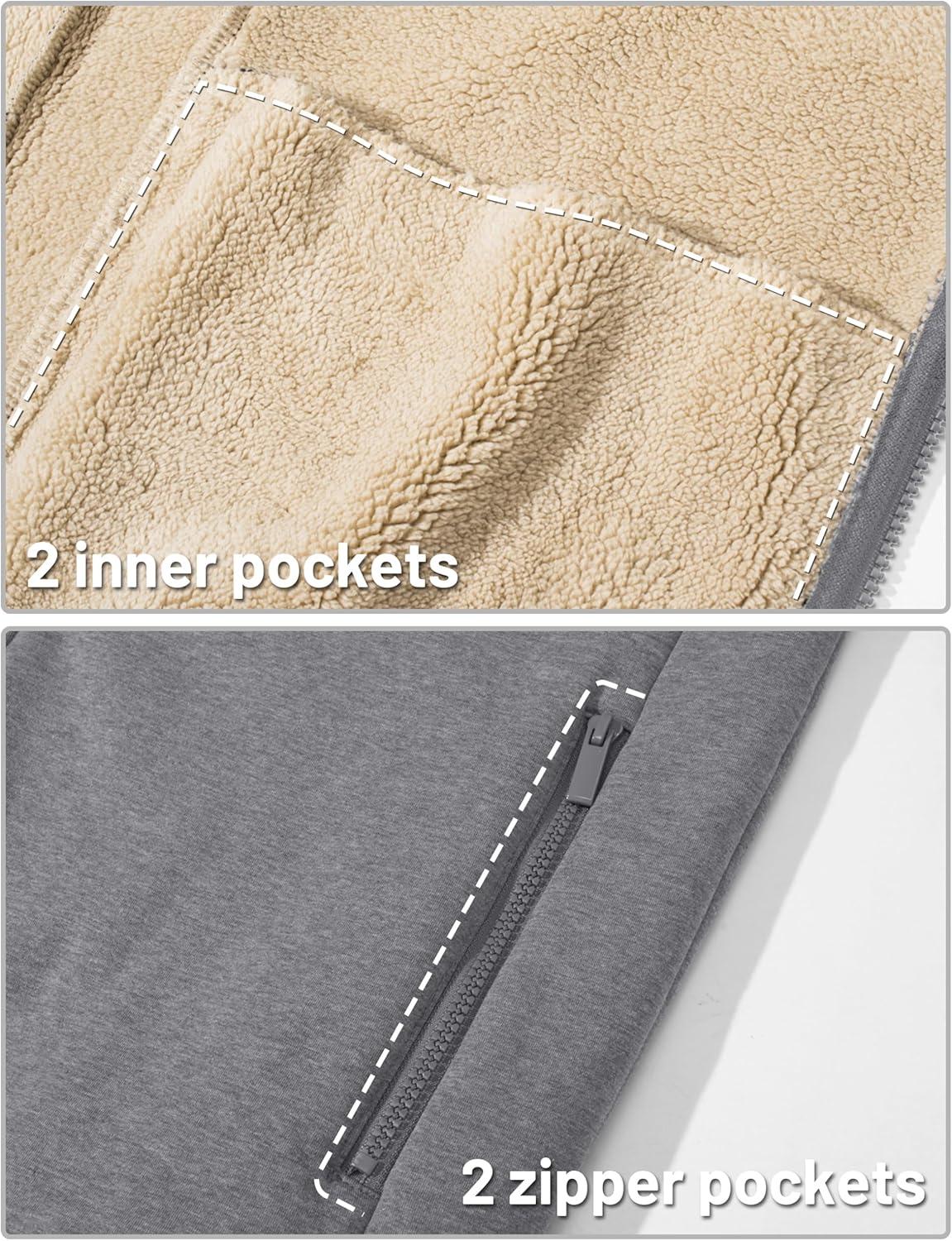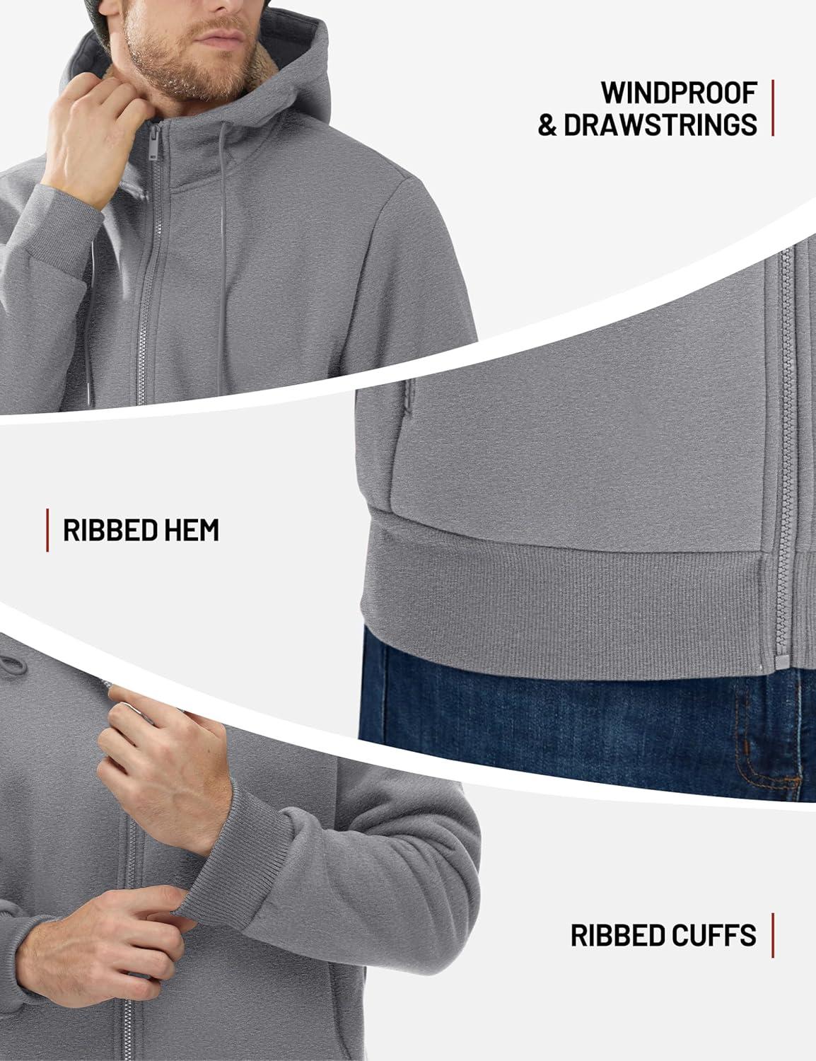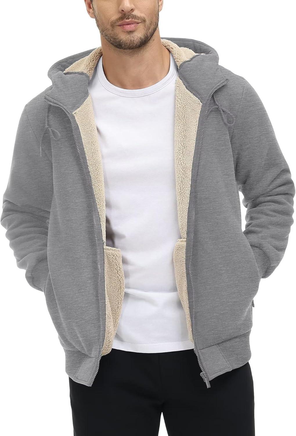 TACVASEN Men’s Zip Up Sherpa Lined Hoodies Thick Fleece Heavyweight Jacket Windproof Thermal Zipper Sweatshirt(Light Grey)