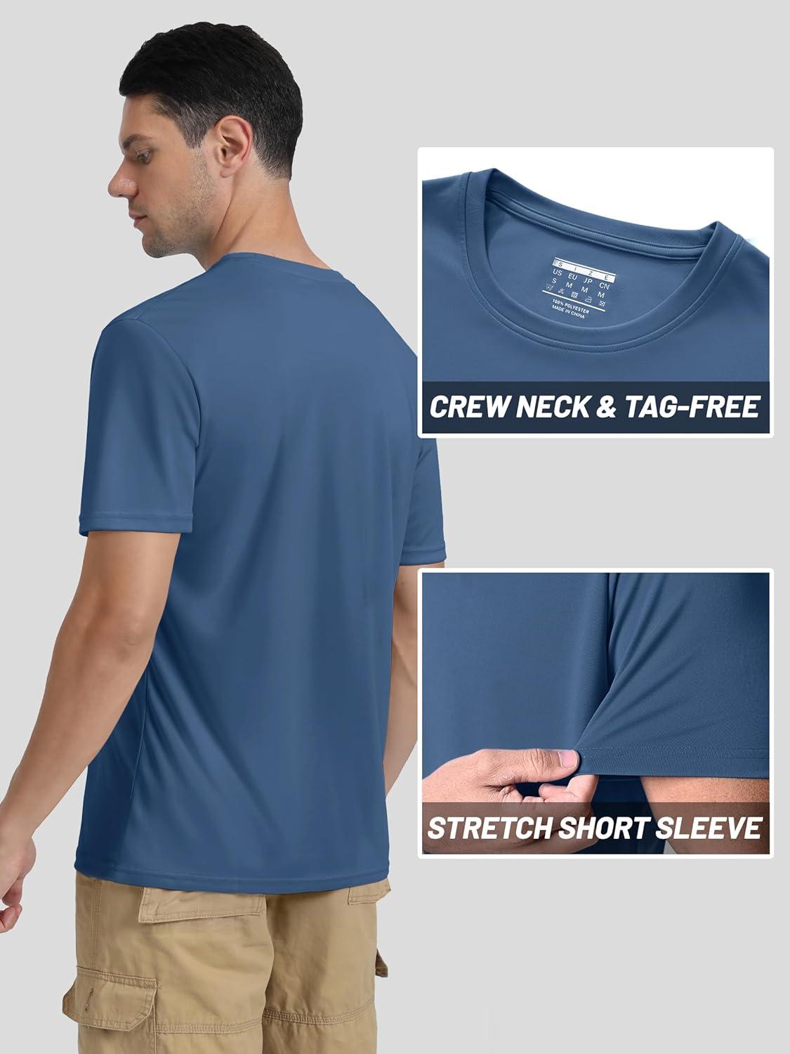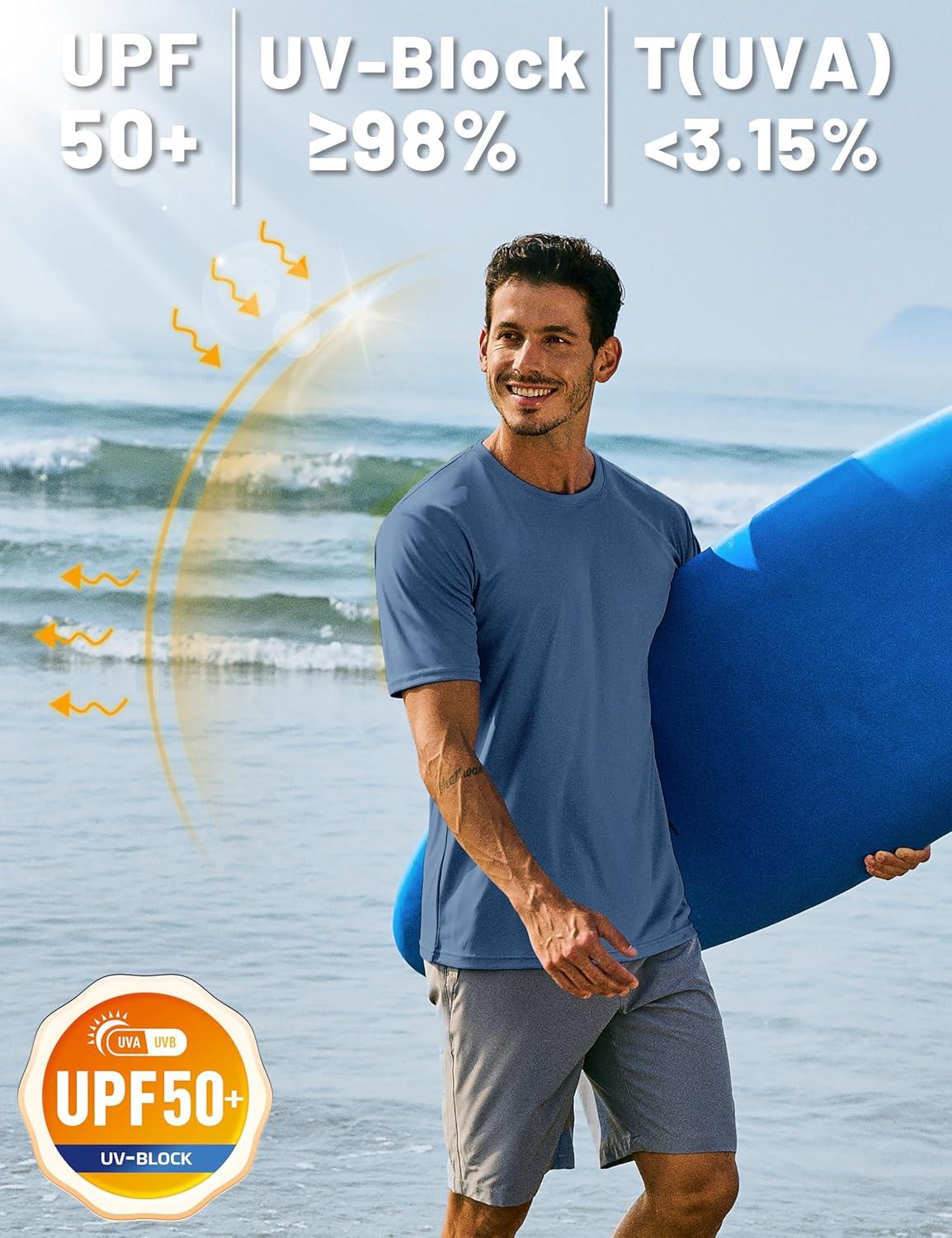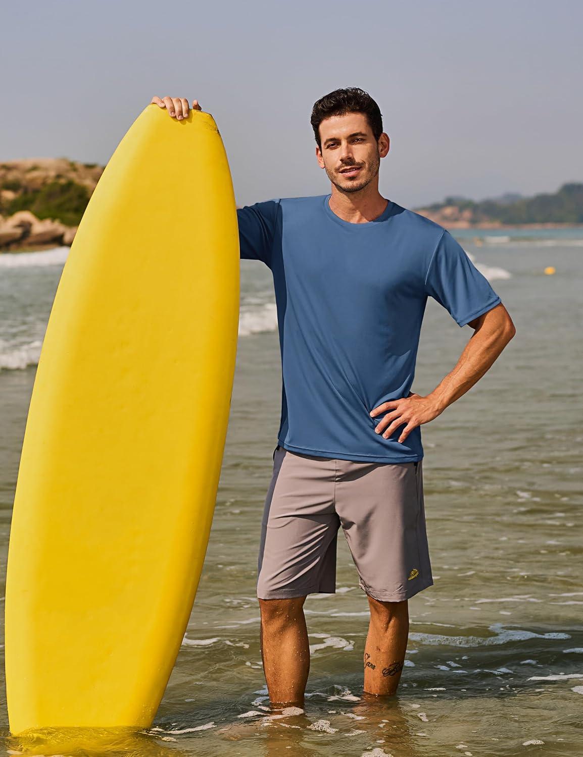 TACVASEN Swim Shirts for Men Rash Guard SPF Short Sleeve Sun T-Shirt UPF 50 Quick Dry Lightweight Fishing Water Shirt(#04blue Grey)