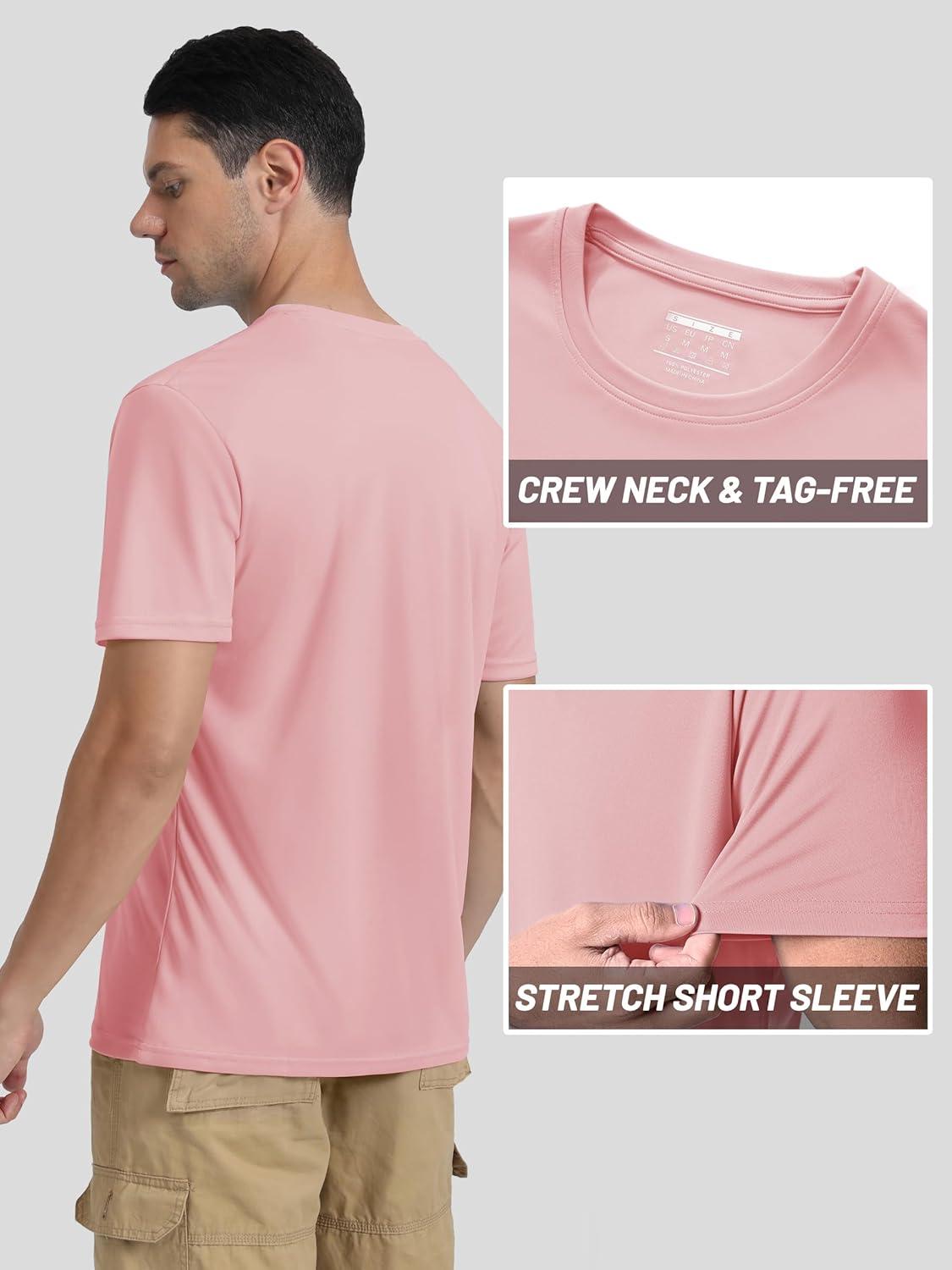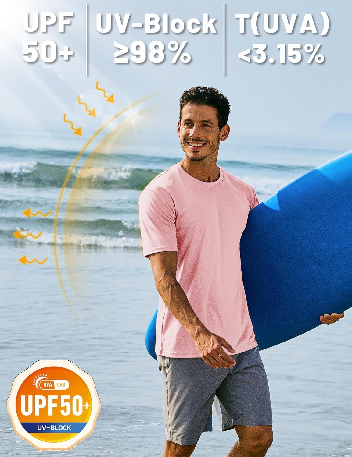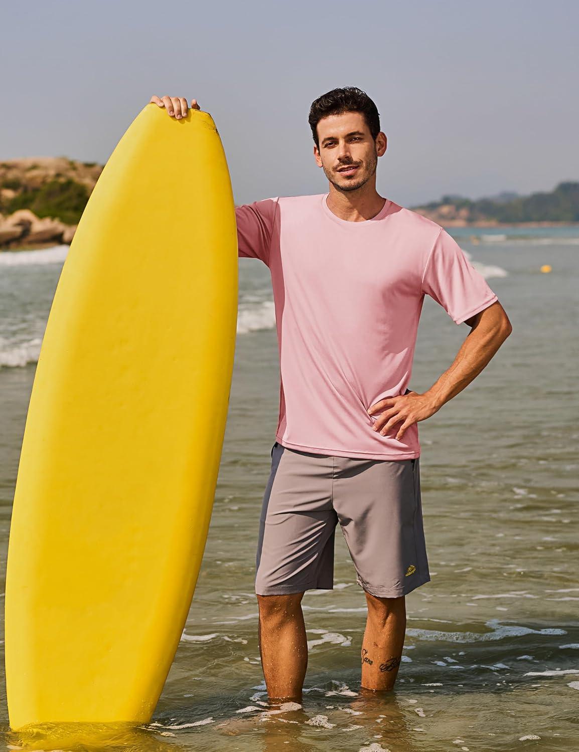 TACVASEN Swim Shirts for Men Rash Guard SPF Short Sleeve Sun T-Shirt UPF 50 Quick Dry Lightweight Fishing Water Shirt(#10grey Pink)