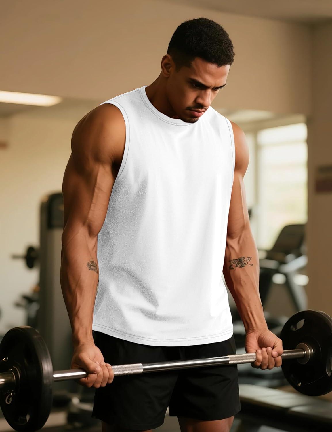 TACVASEN Tank Top for Men Moisture Wicking Cotton Sleeveless Shirts Muscle Gym Workout Causal Summer Tank Tops(#02 White)