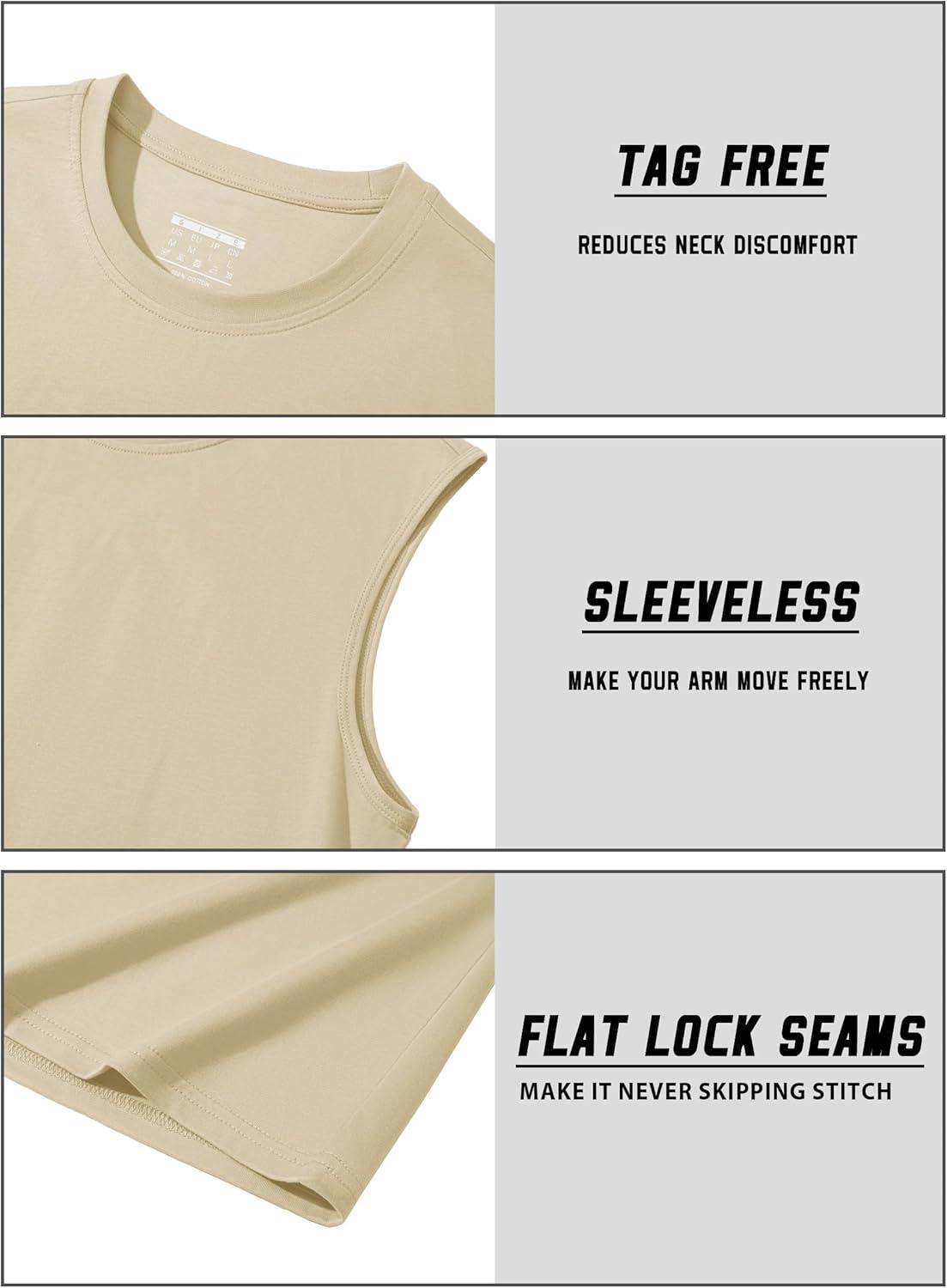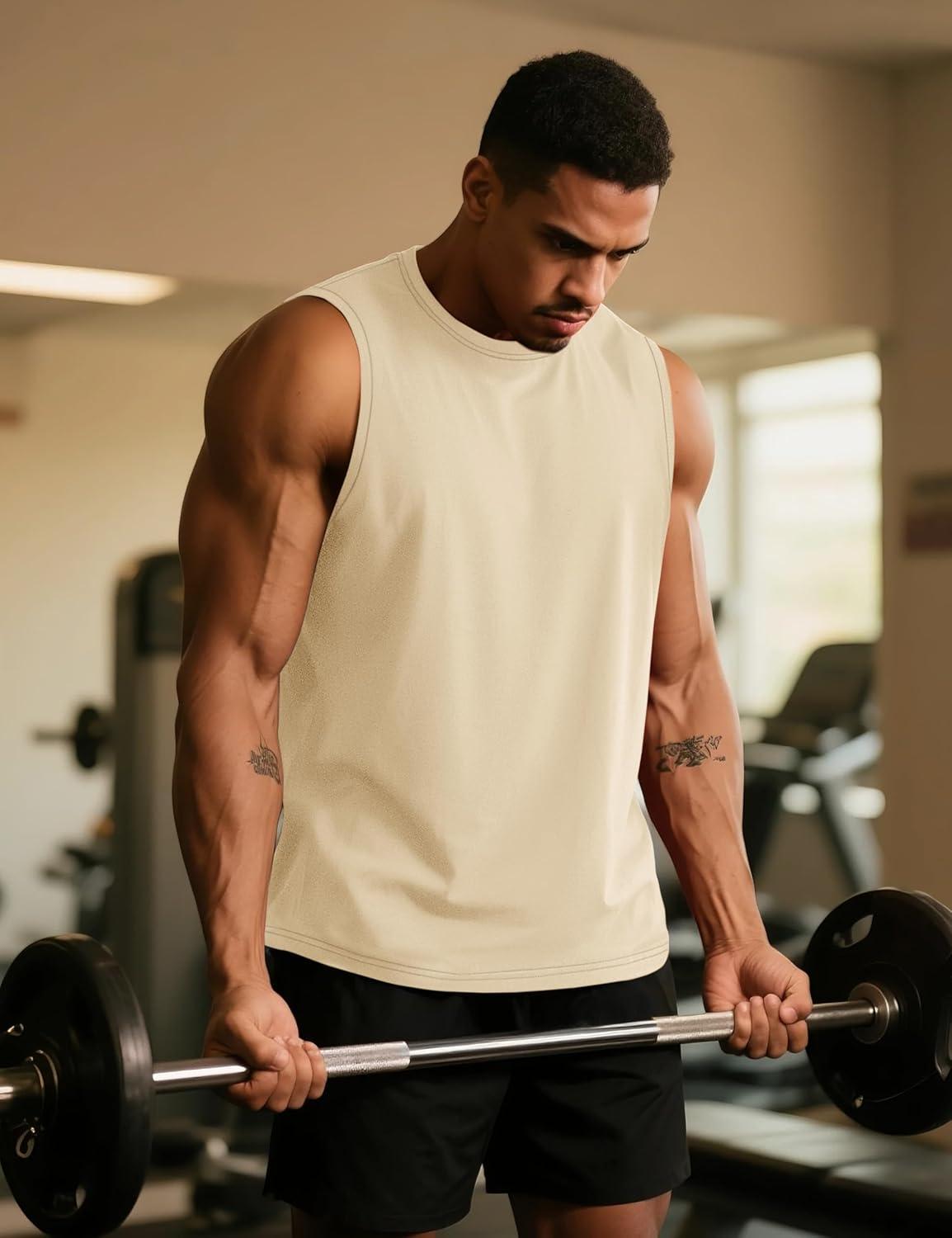 TACVASEN Tank Top for Men Moisture Wicking Cotton Sleeveless Shirts Muscle Gym Workout Causal Summer Tank Tops(#08 Khaki)