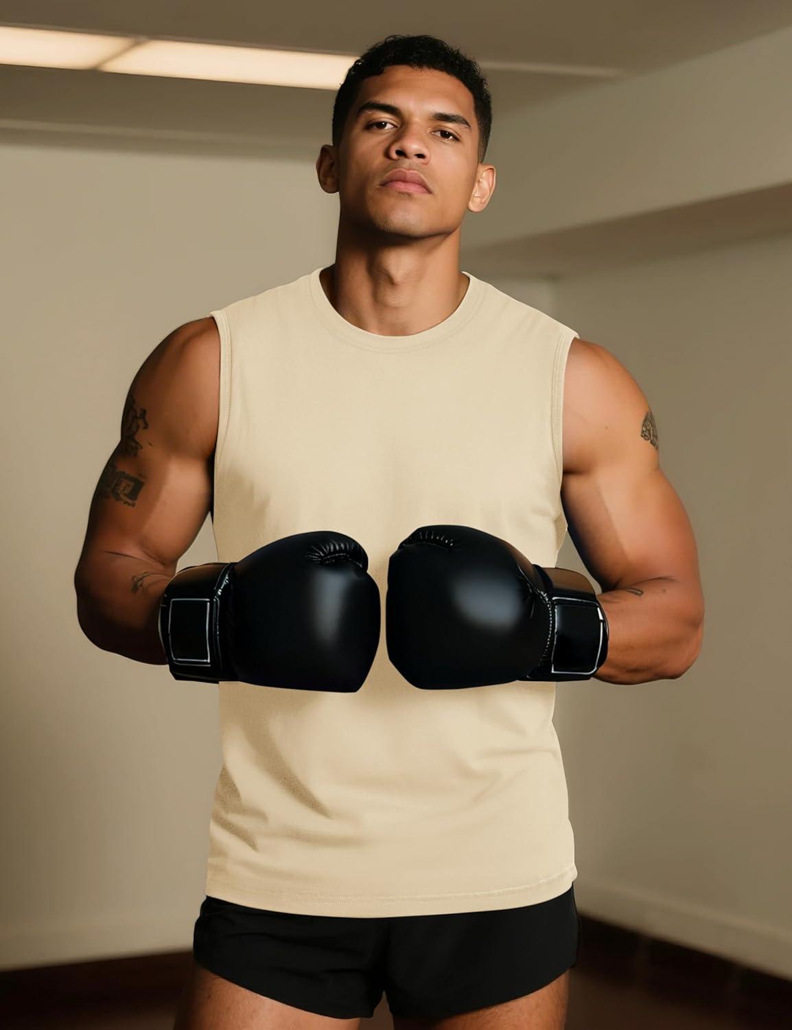 TACVASEN Tank Top for Men Moisture Wicking Cotton Sleeveless Shirts Muscle Gym Workout Causal Summer Tank Tops(#09 Light Apricot)