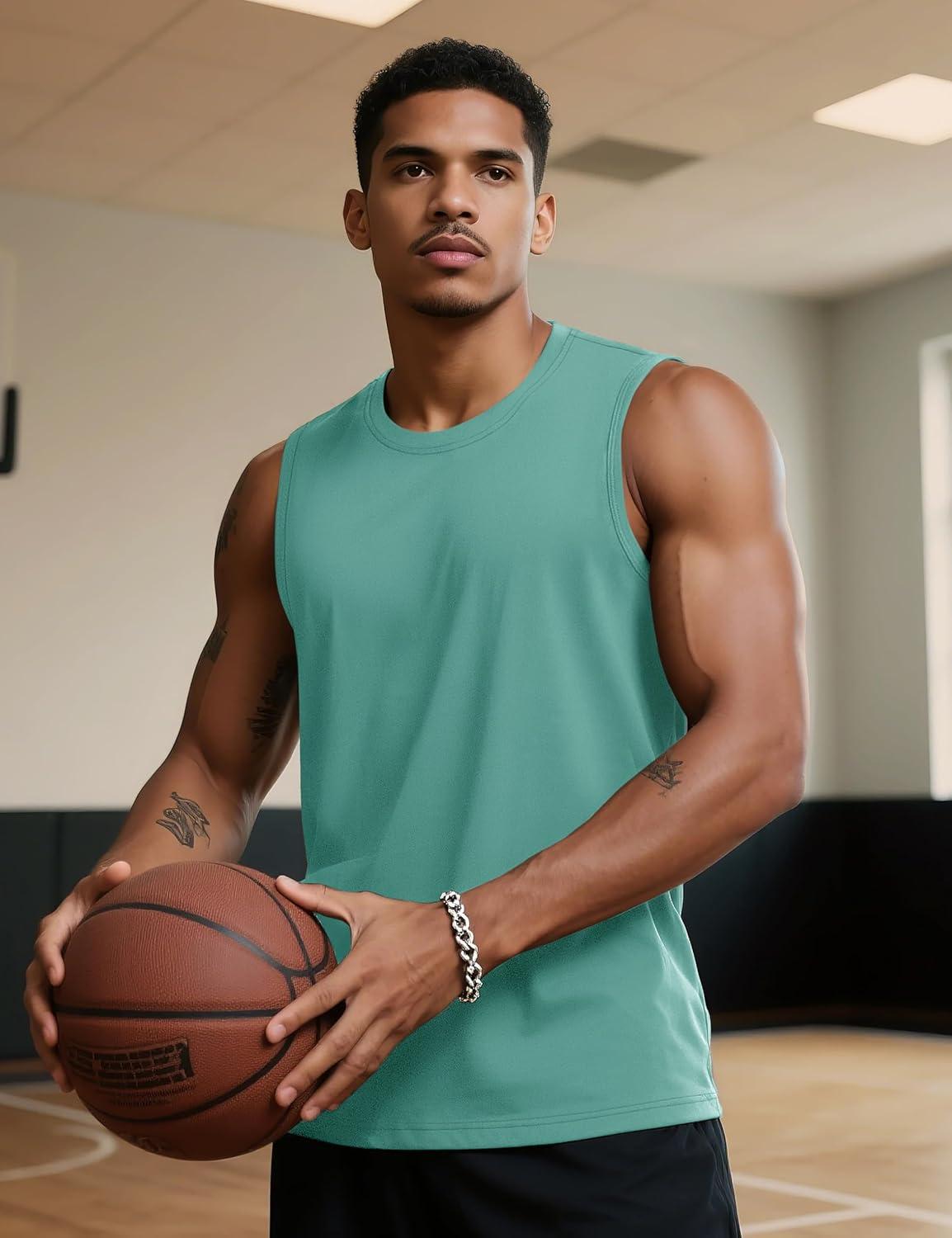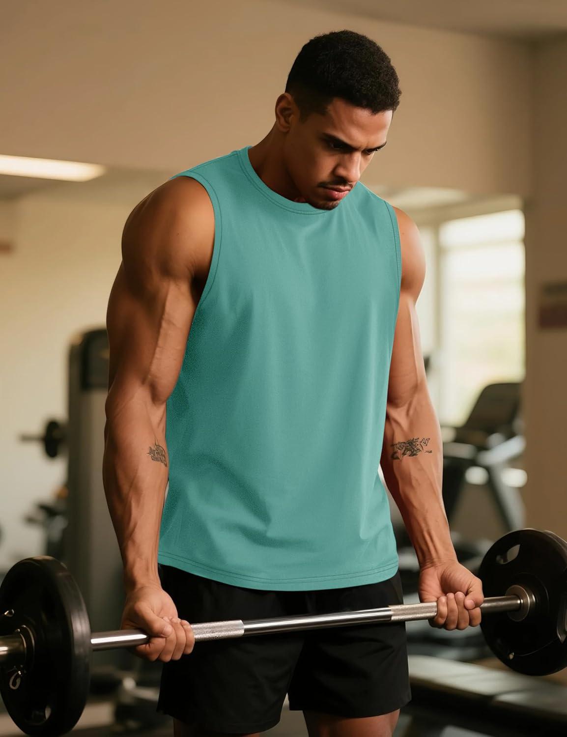 TACVASEN Tank Top for Men Moisture Wicking Cotton Sleeveless Shirts Muscle Gym Workout Causal Summer Tank Tops(#16 Grey Green)