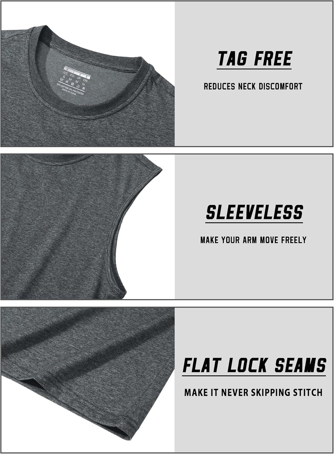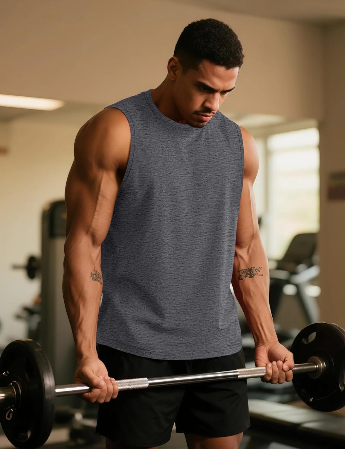 TACVASEN Tank Top for Men Moisture Wicking Cotton Sleeveless Shirts Muscle Gym Workout Causal Summer Tank Tops(#18 Dark Grey)