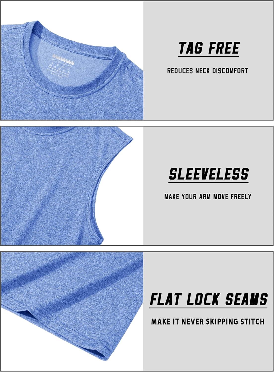 TACVASEN Men’s Workout Tank Tops Sleeveless UPF 50+ Summer Sun Shirts Quick Dry for Running Swim Gym Beach(Azure)