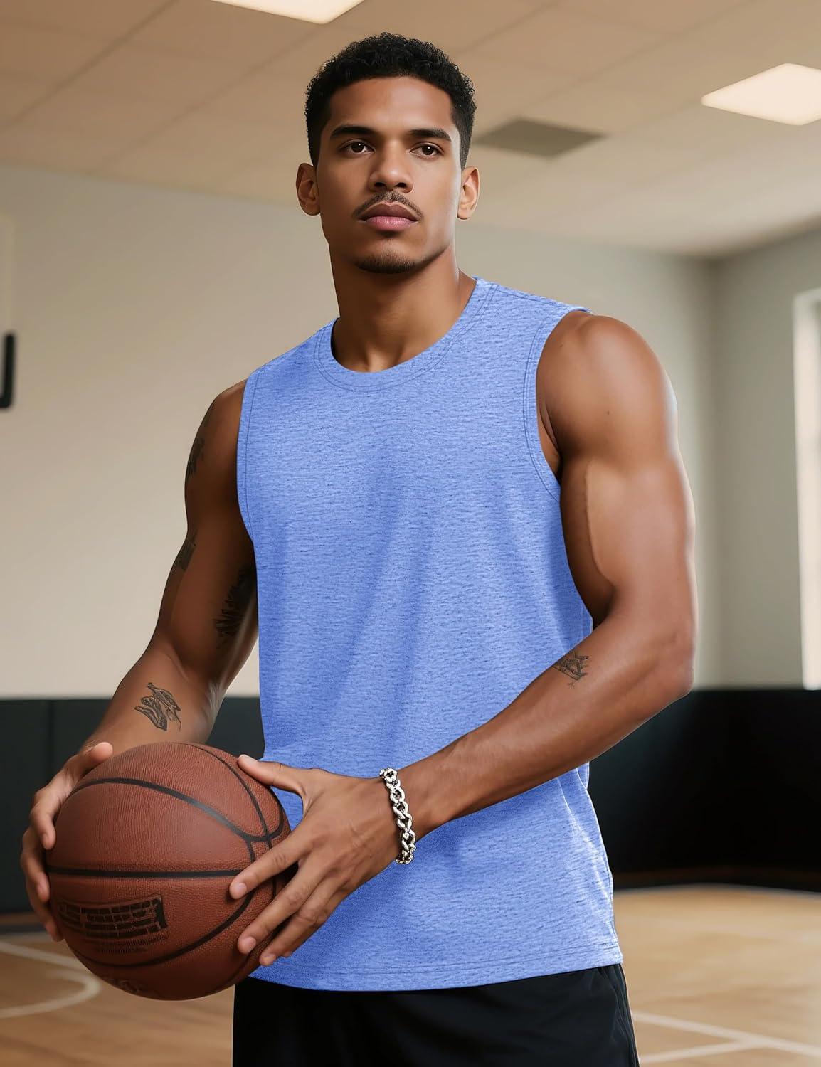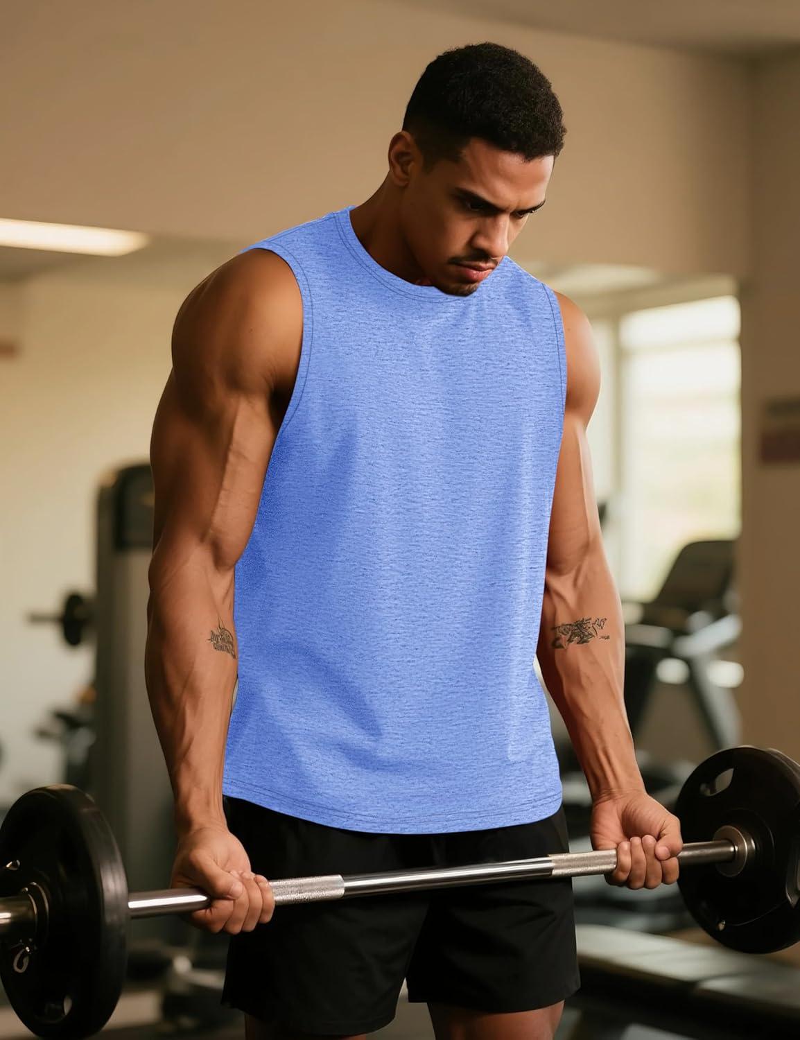 TACVASEN Tank Top for Men Moisture Wicking Cotton Sleeveless Shirts Muscle Gym Workout Causal Summer Tank Tops(#21 Light Blue)