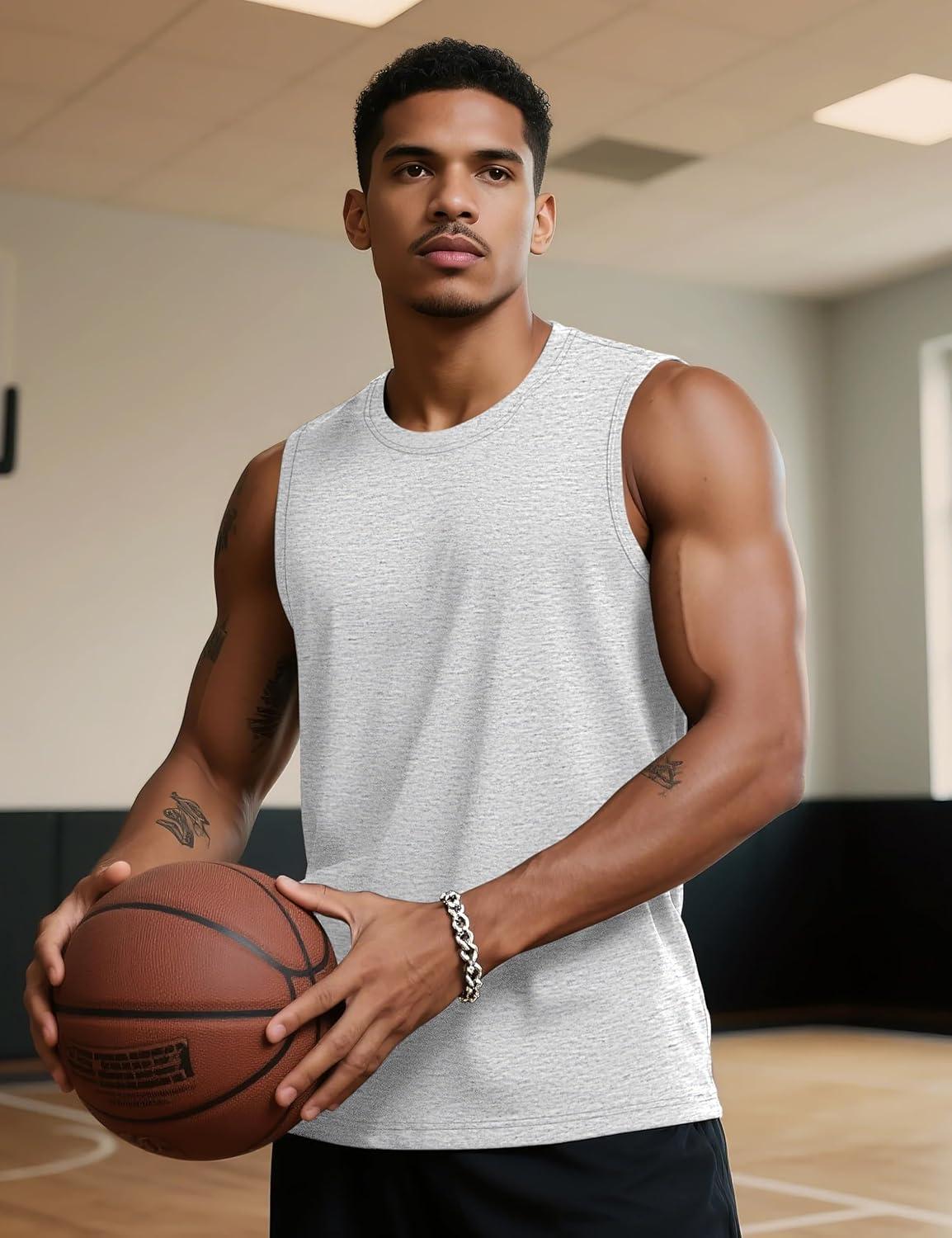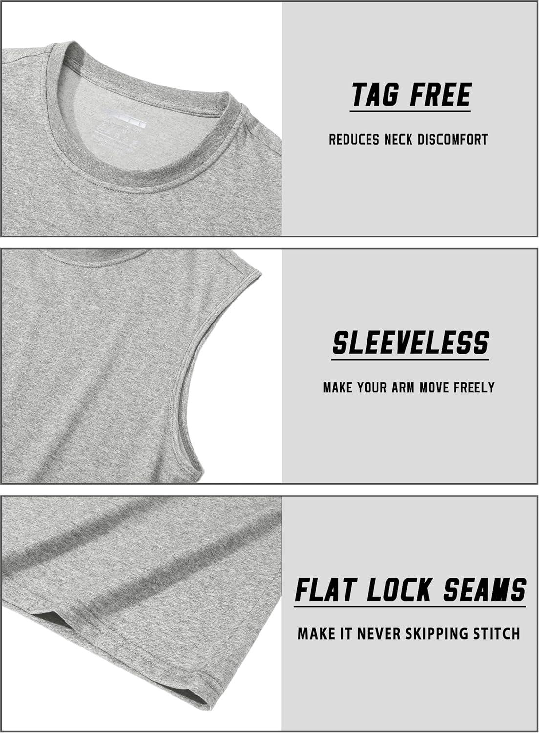 TACVASEN Tank Top for Men Moisture Wicking Cotton Sleeveless Shirts Muscle Gym Workout Causal Summer Tank Tops(#22 Grey Blue)
