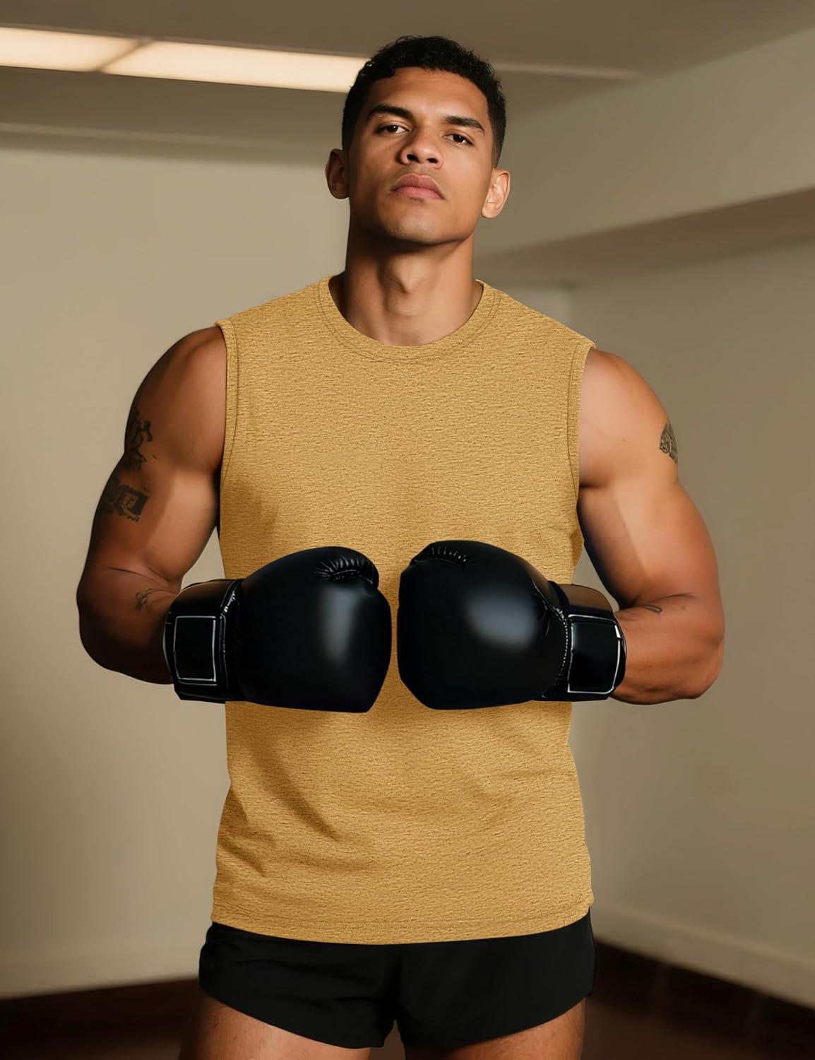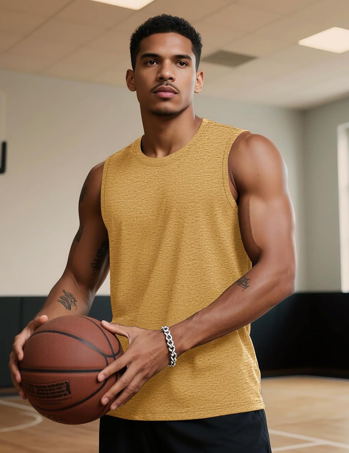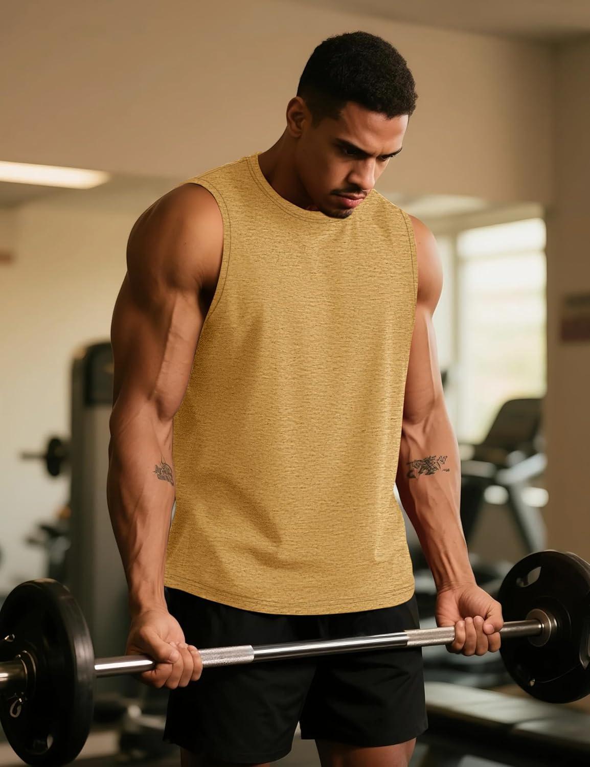 TACVASEN Tank Top for Men Moisture Wicking Cotton Sleeveless Shirts Muscle Gym Workout Causal Summer Tank Tops(#24 Earthy Yellow)