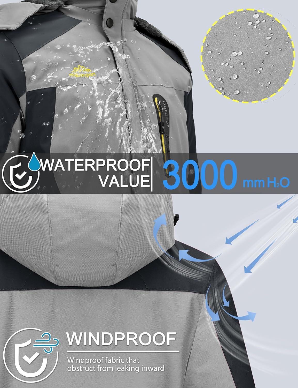 TACVASEN Winter Mens Snow Jacket Men Ski Coats Snowboard Waterproof(Gray)