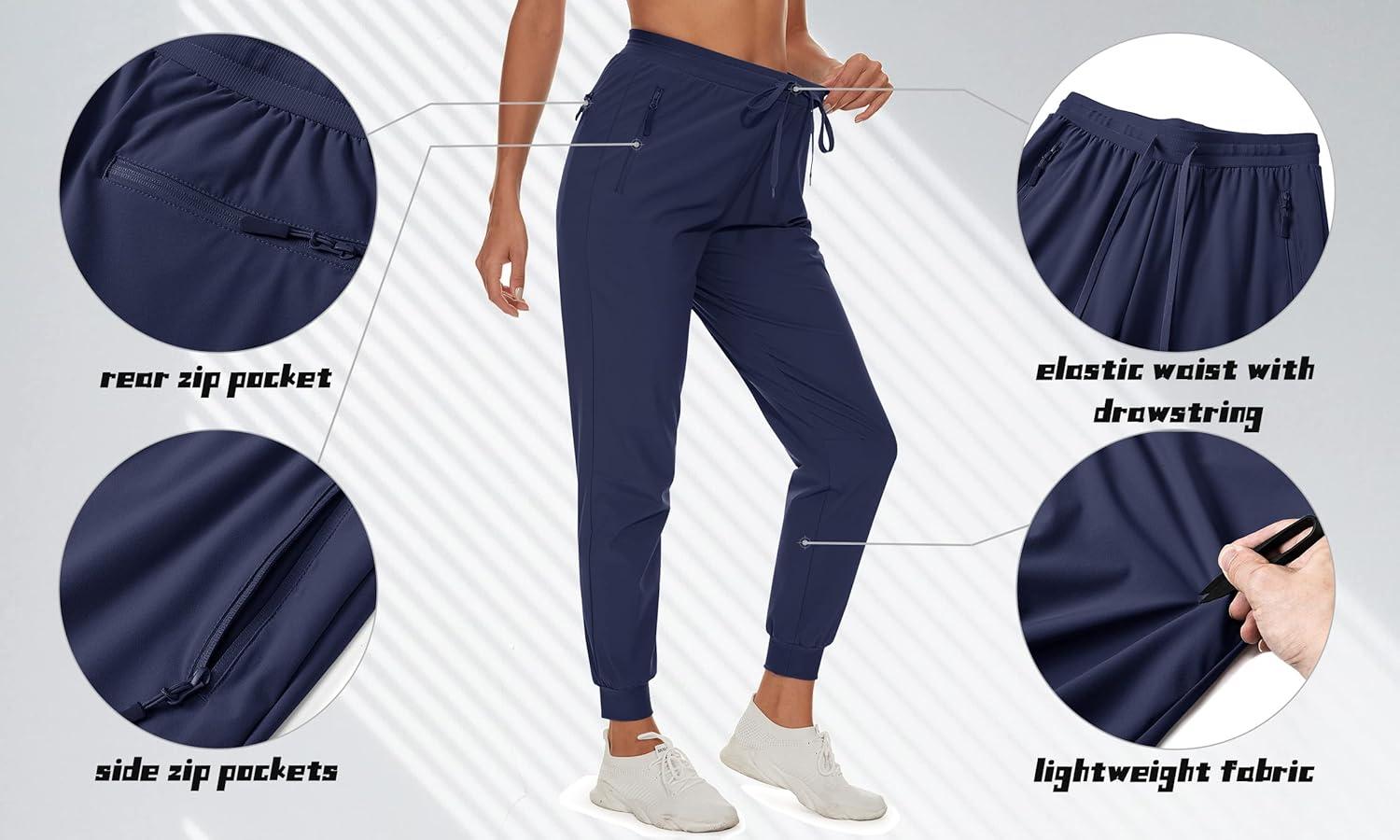 TACVASEN Women Quick Dry Pants Athletic Workout Joggers Lightweight Training Cycling Pants Sports Running Sweatpants Navy