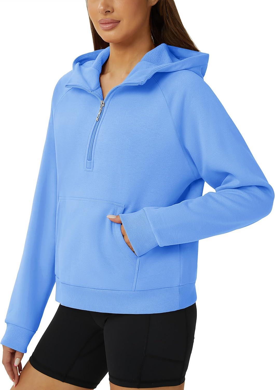 TACVASEN Women Winter Sweatshirt Long Sleeve Half Zip Pullover Sweatshirt Casual Fleece Hoodie(Light Blue)