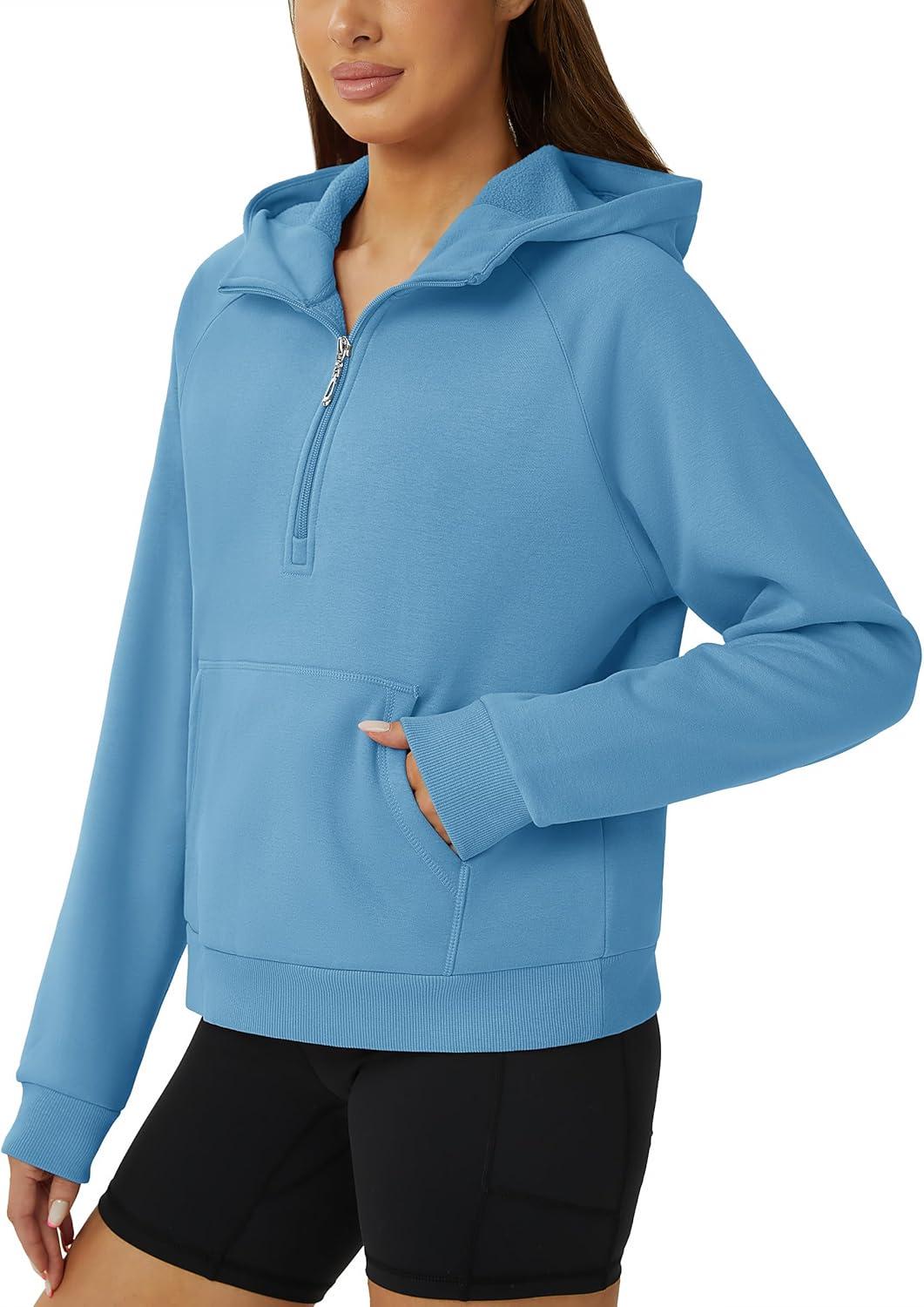 TACVASEN Women Winter Sweatshirt Long Sleeve Half Zip Pullover Sweatshirt Casual Fleece Hoodie(Misty Blue)