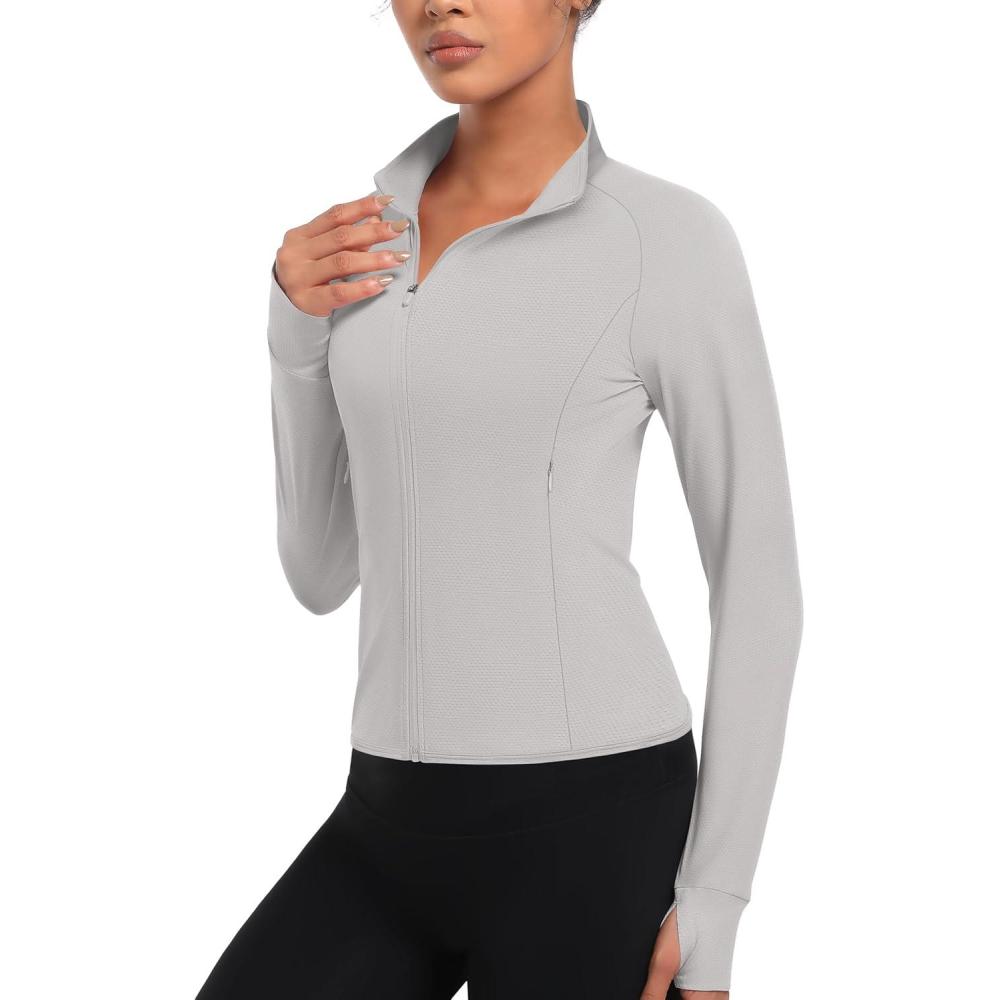 TACVASEN Women’s Athletic Zip Up Jacket Long Sleeve Workout Tops for Women UV Protection Golf Outfits(Lightgrey)