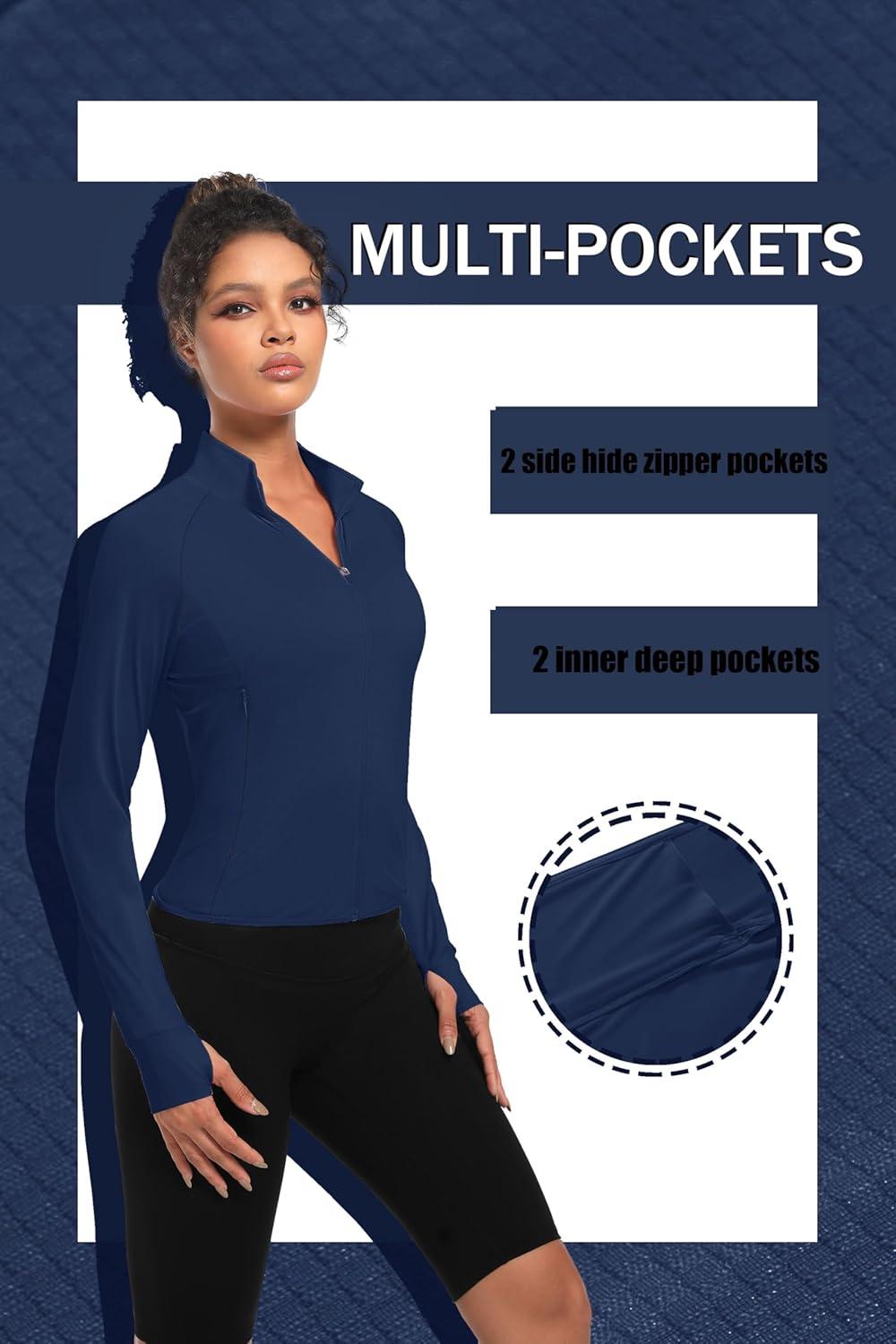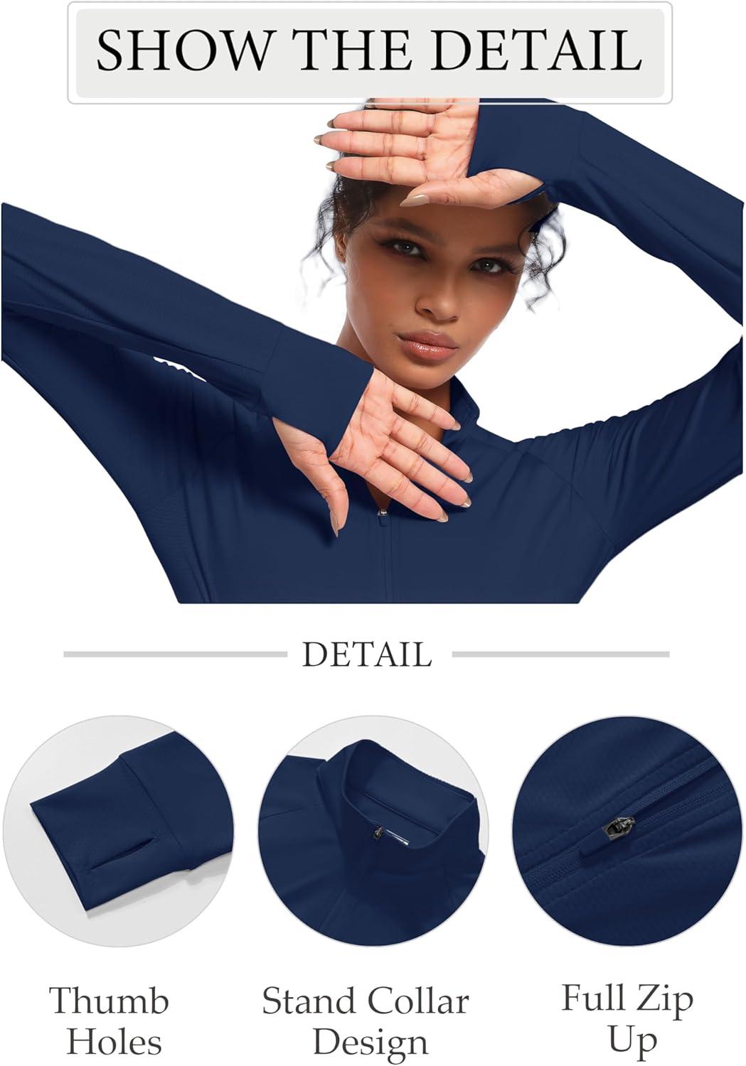 Women's Athletic Zip Up Jacket Long Sleeve Workout Tops for Women UV Protection Golf Outfits