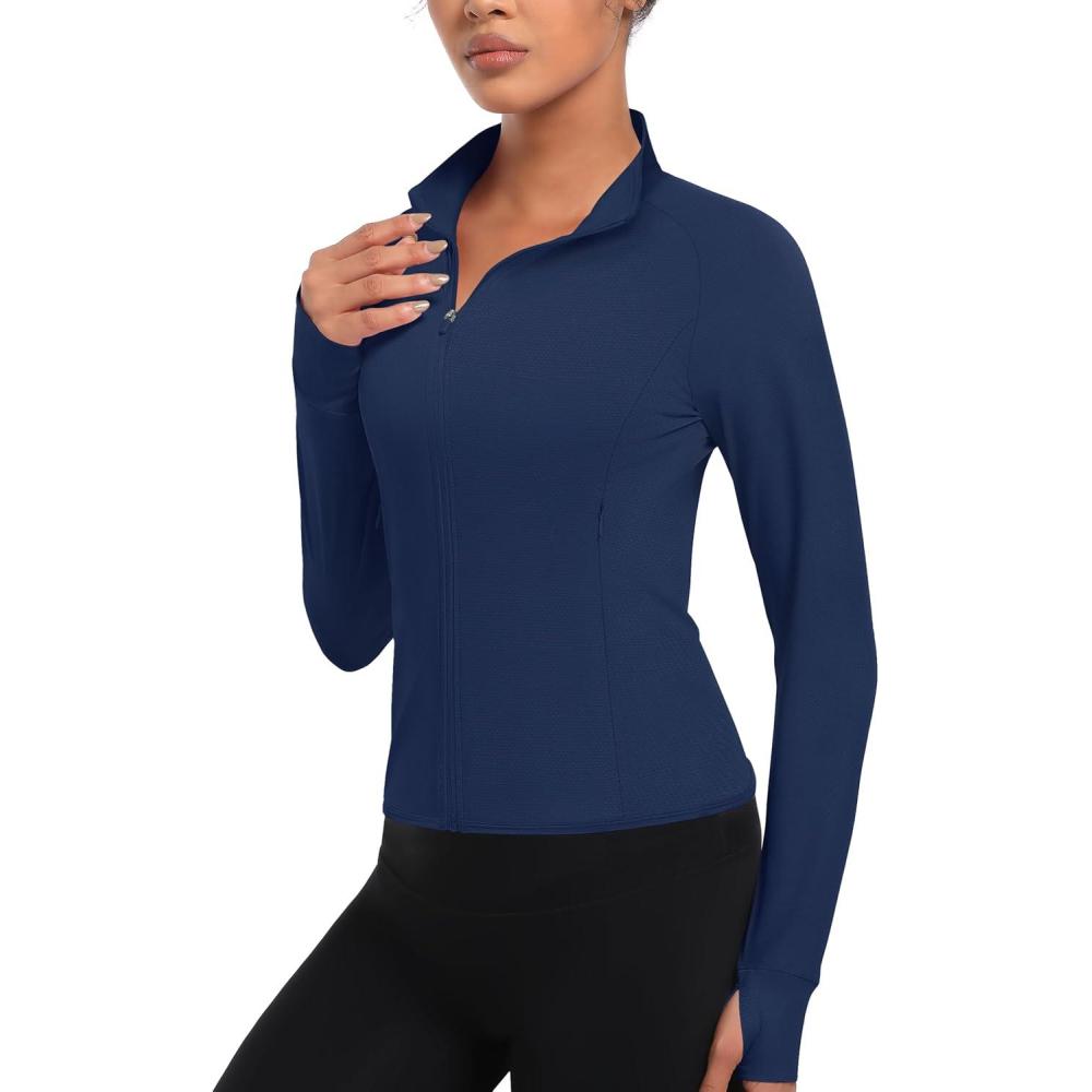 TACVASEN Women’s Athletic Zip Up Jacket Long Sleeve Workout Tops for Women UV Protection Golf Outfits(Navy)