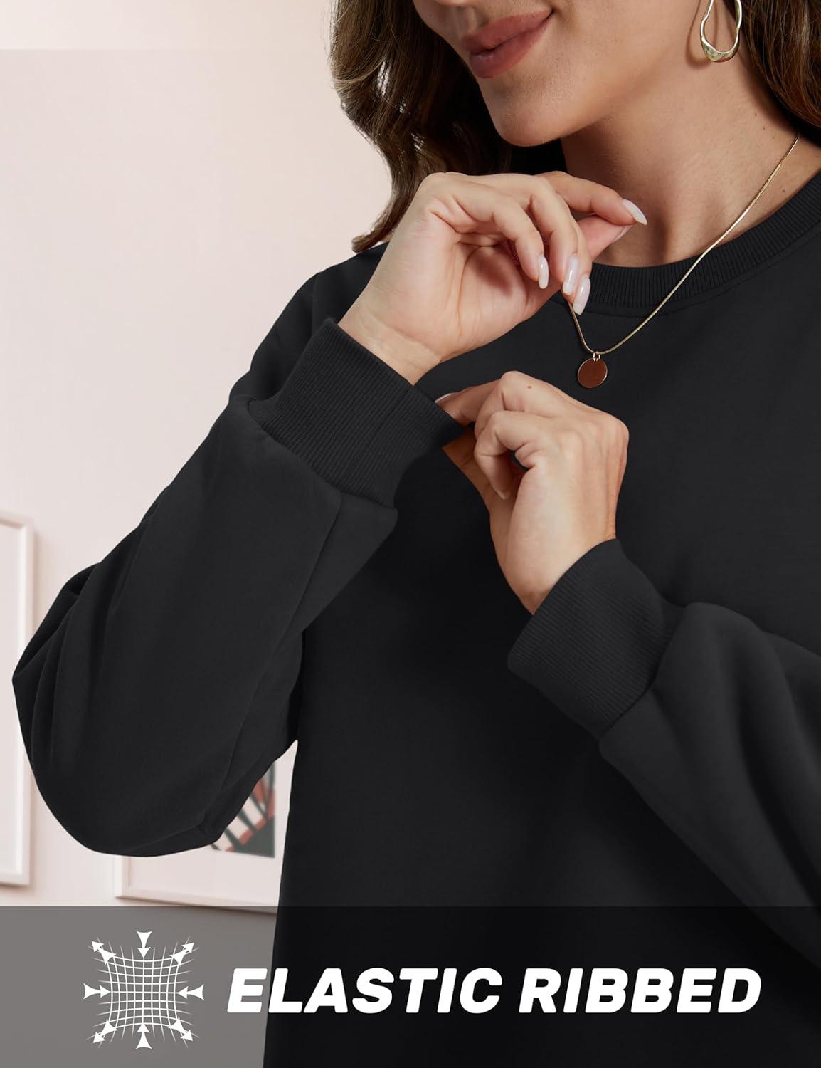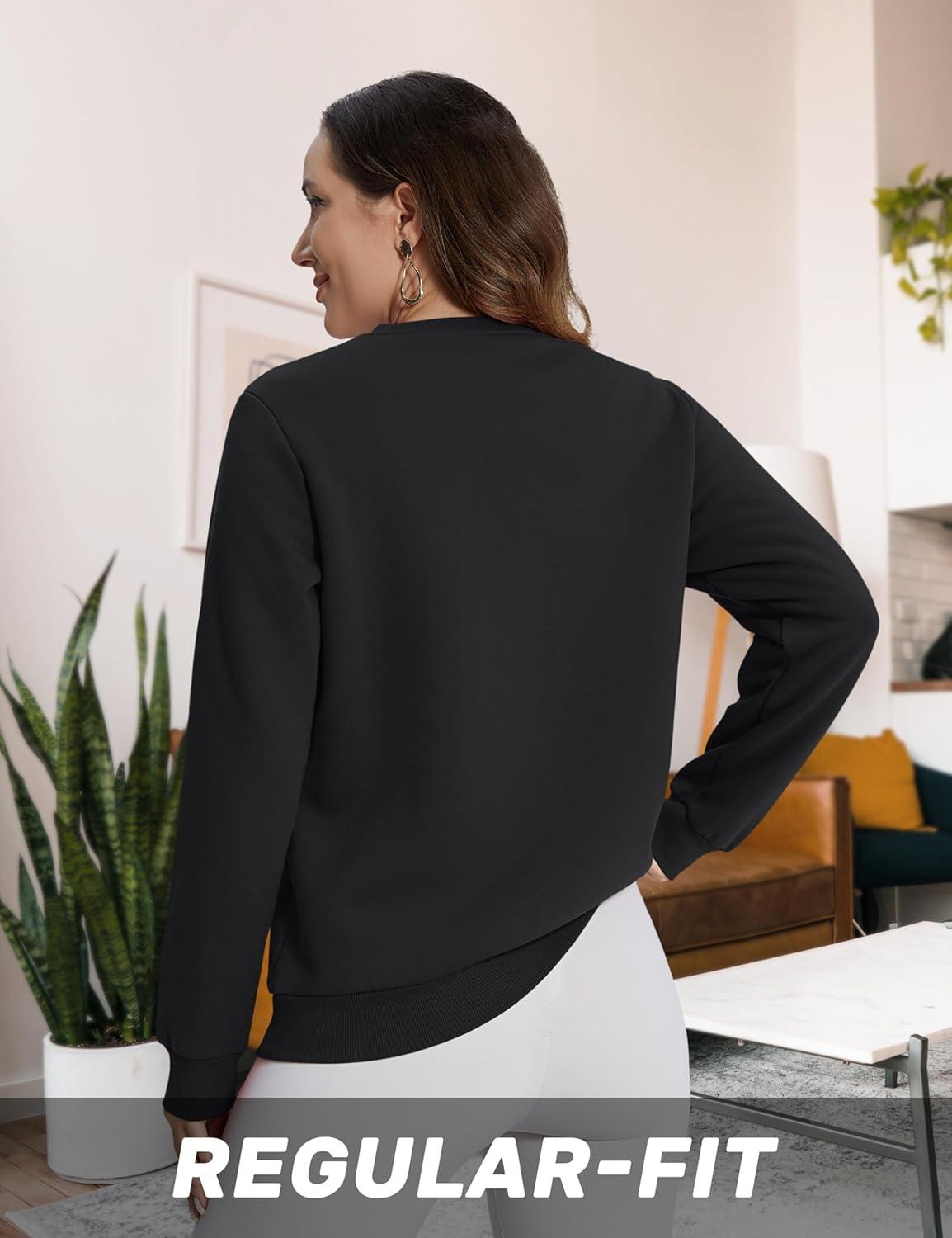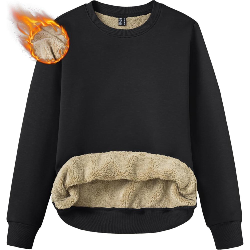 TACVASEN Women’s Crewneck Sweatshirt Fleece Lined Sherpa Pullover Winter Shirt Warm Sweaters Long Sleeve Tops(Black)