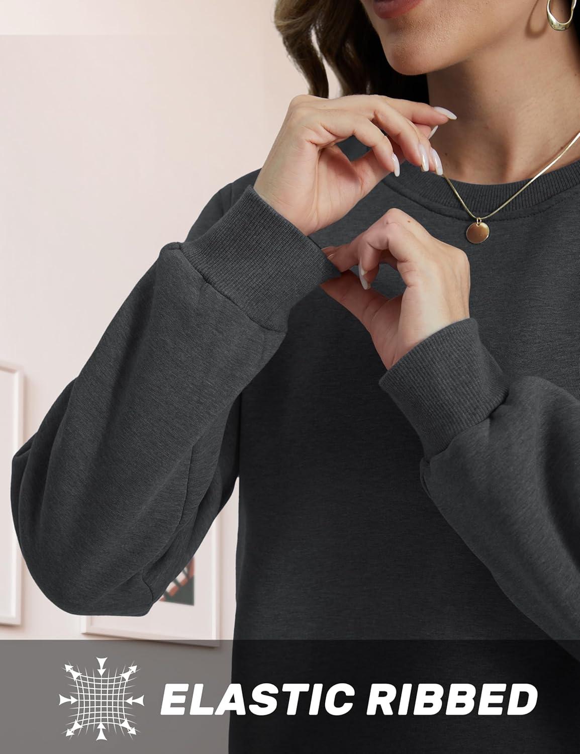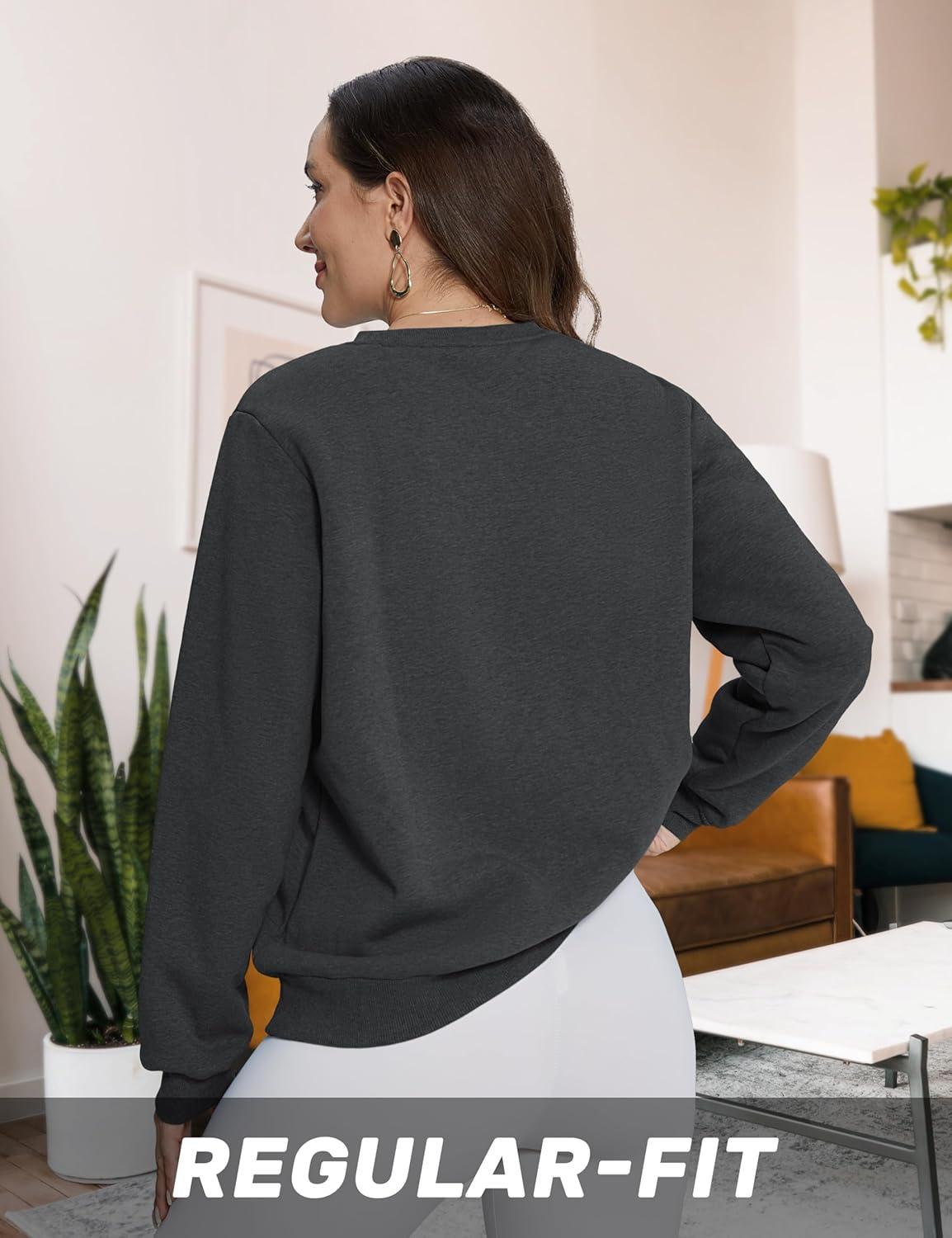 TACVASEN Women’s Crewneck Sweatshirt Fleece Lined Sherpa Pullover Winter Shirt Warm Sweaters Long Sleeve Tops(Deep Grey)