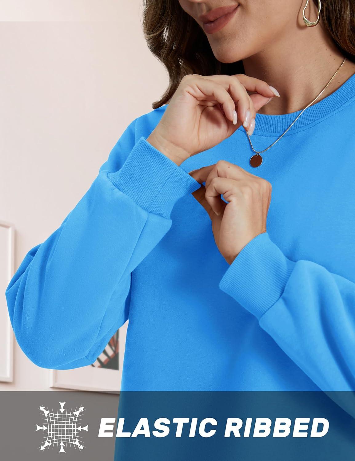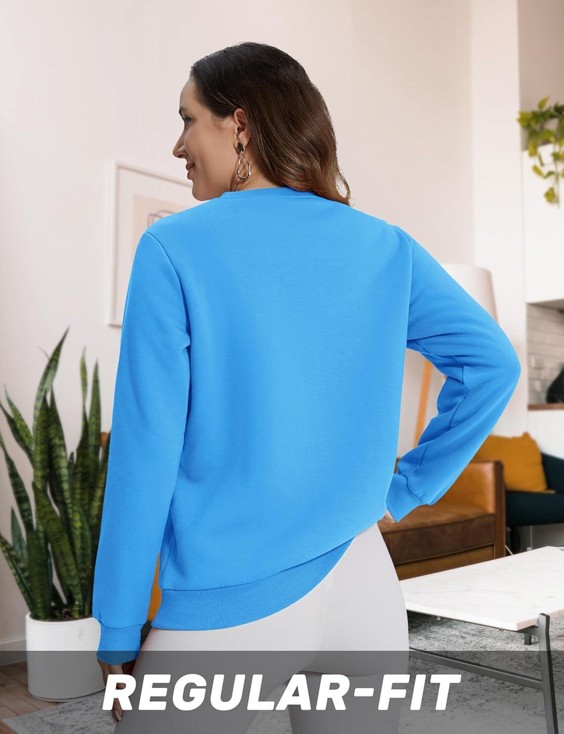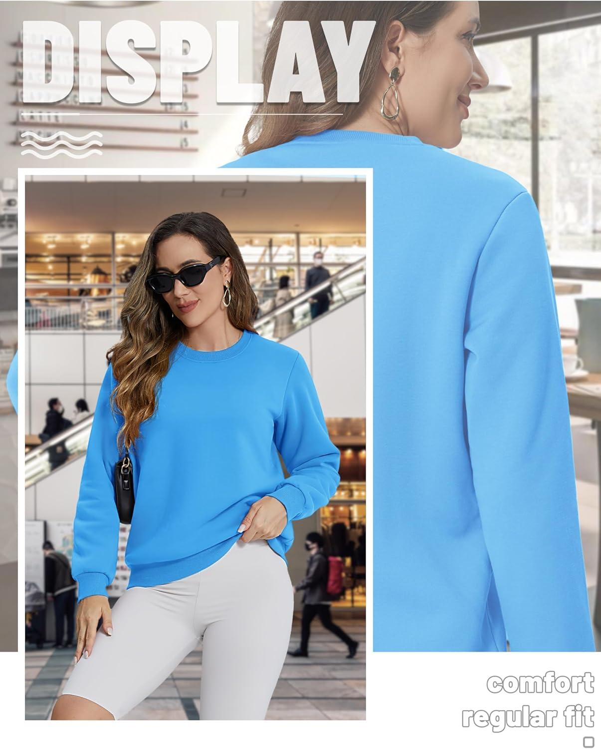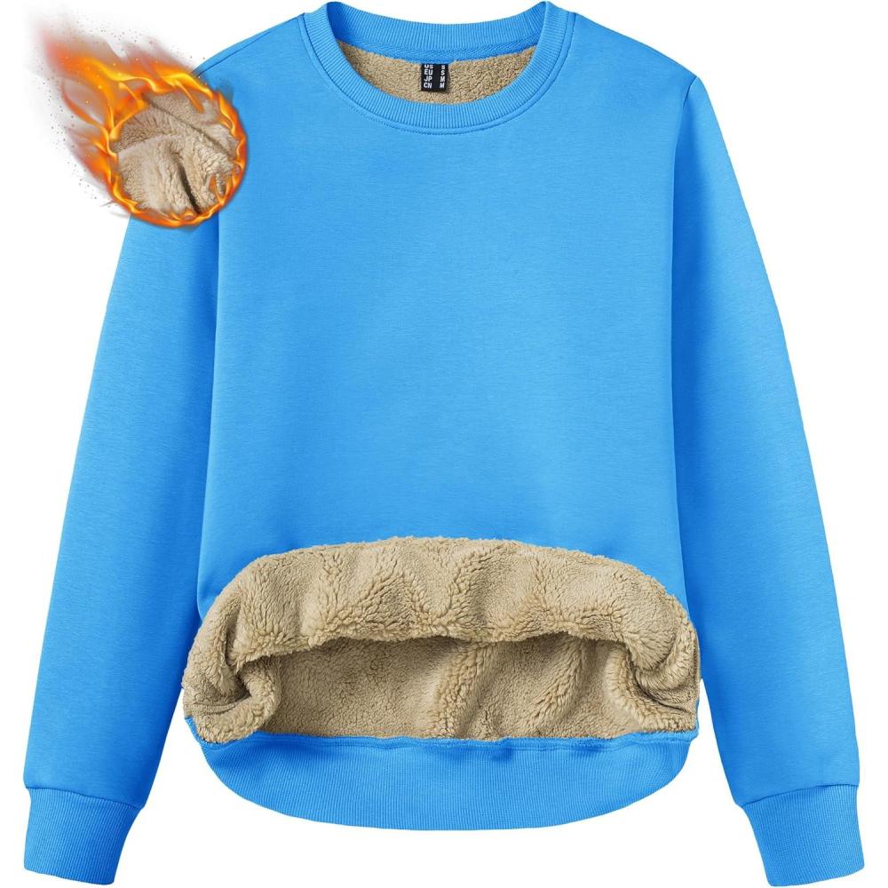 TACVASEN Women’s Crewneck Sweatshirt Fleece Lined Sherpa Pullover Winter Shirt Warm Sweaters Long Sleeve Tops(Ice Blue)