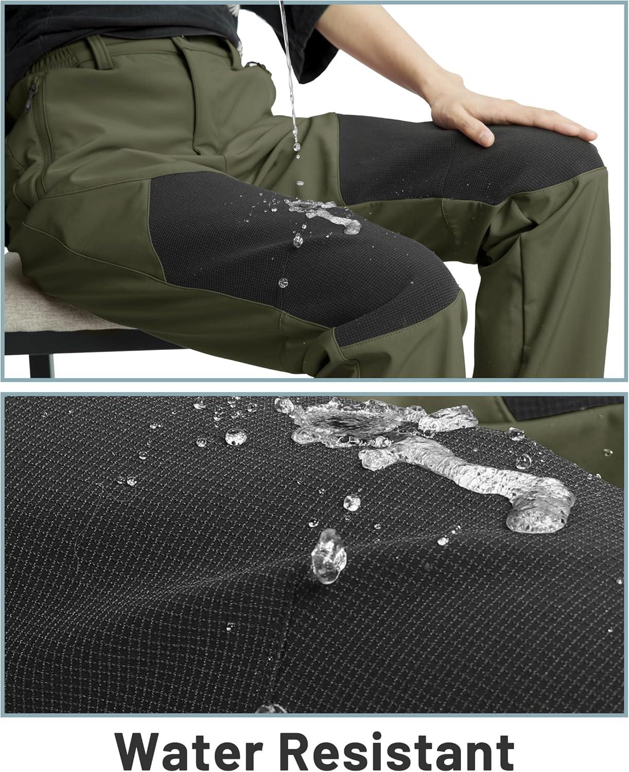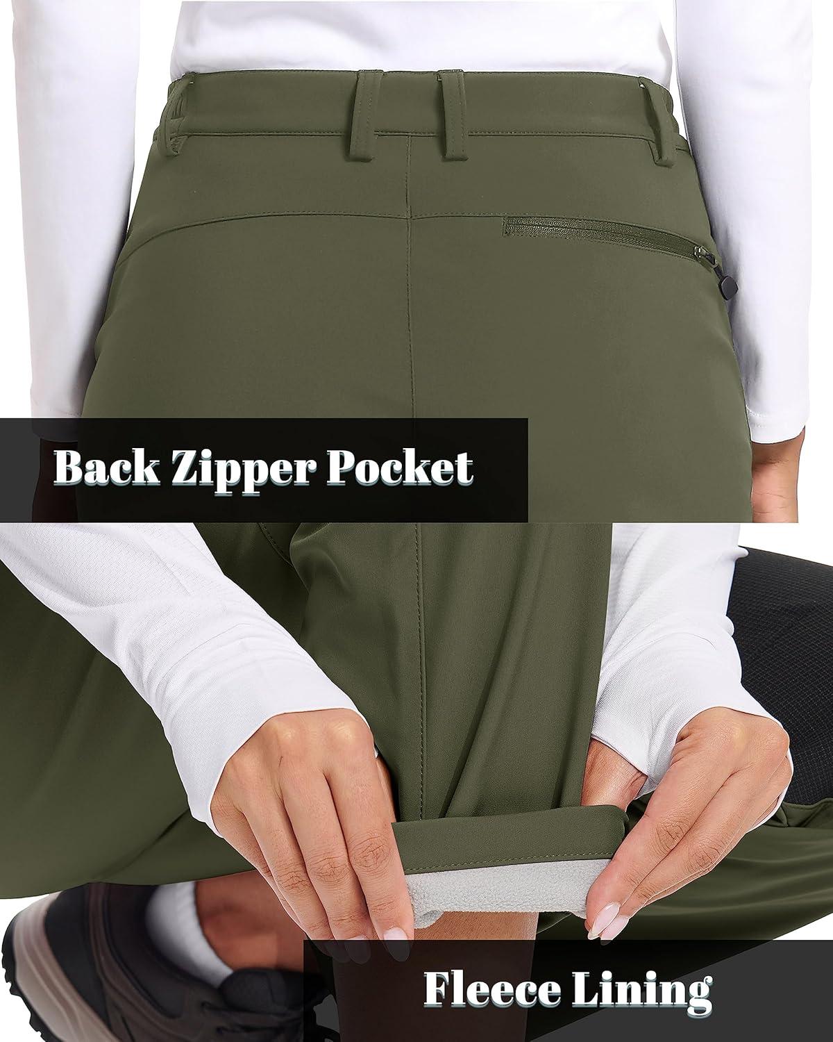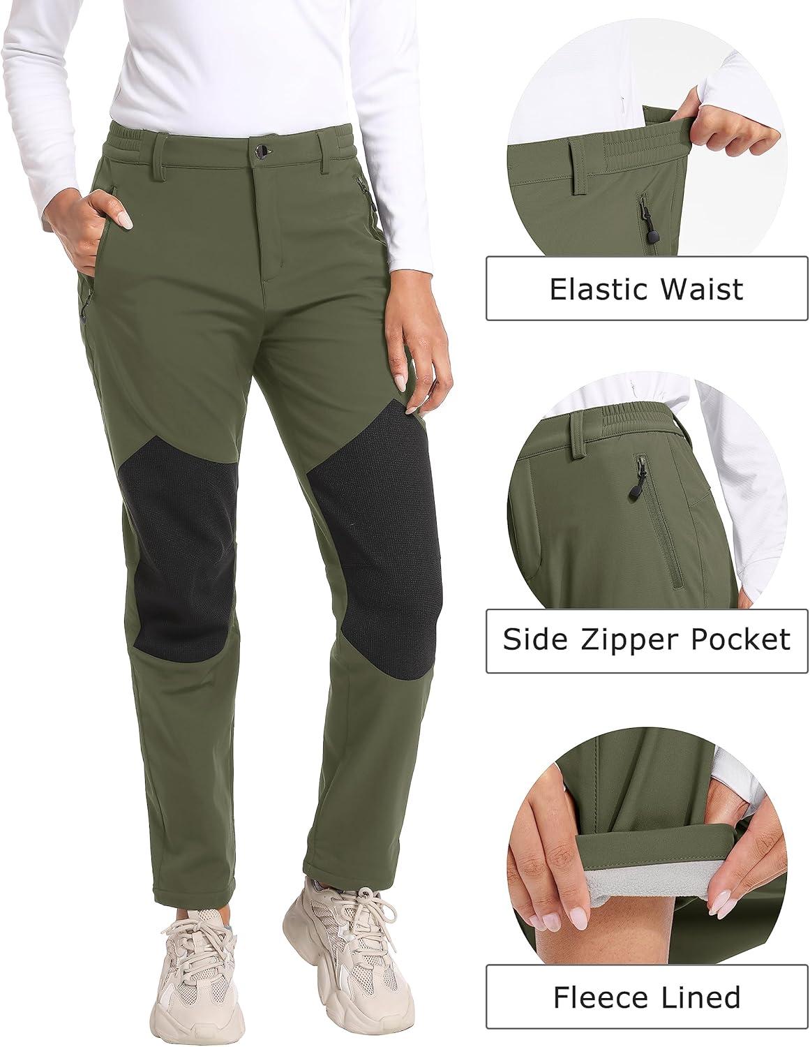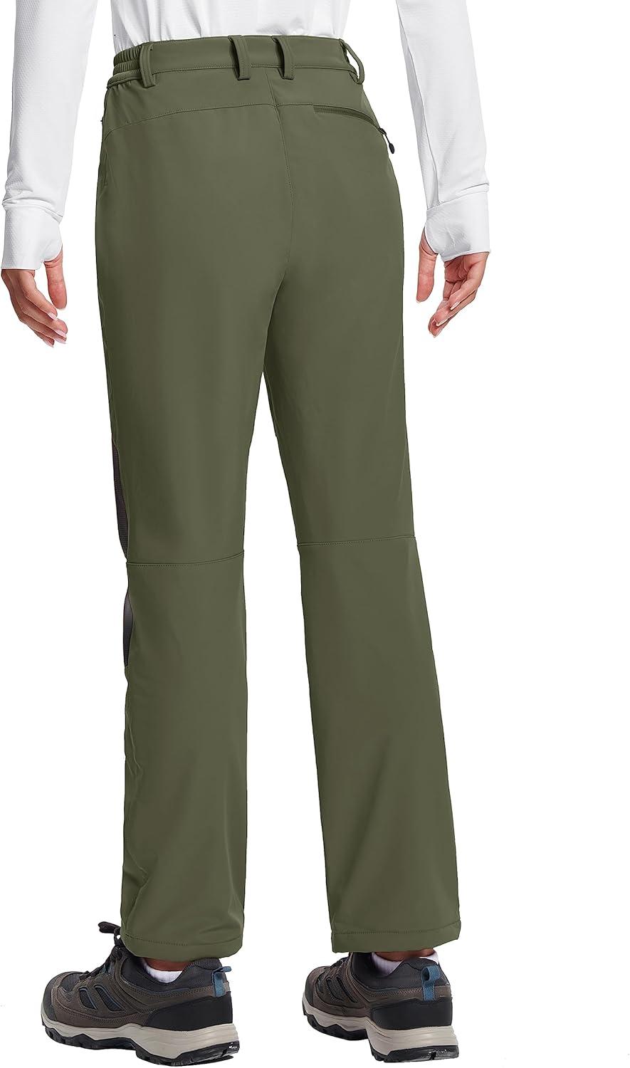 TACVASEN Women’s Fleece Lined Hiking Pants Warm Windproof Softshell Outdoor Winter Snow Ski Pants with Zipper Pockets(Army Green)