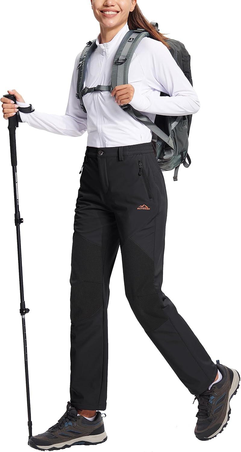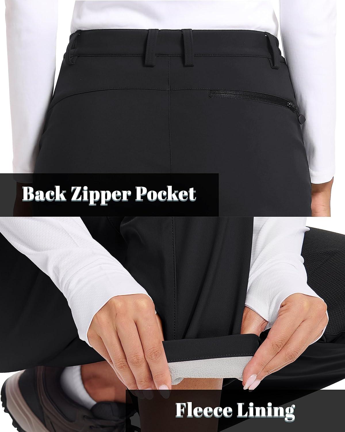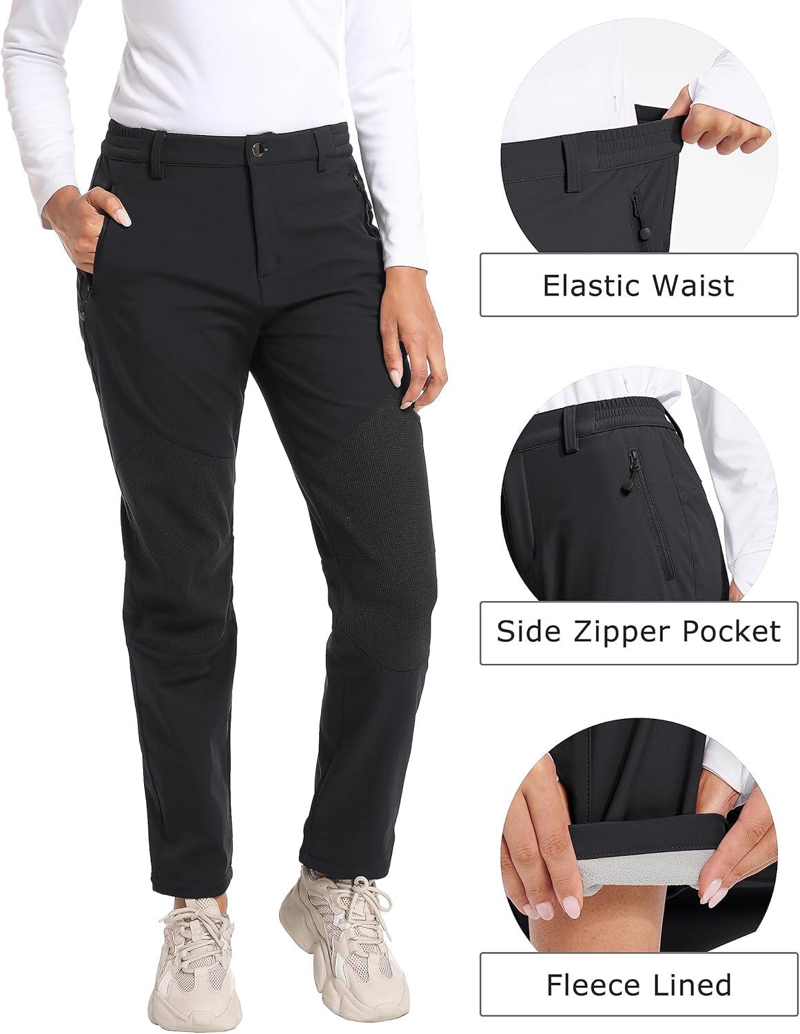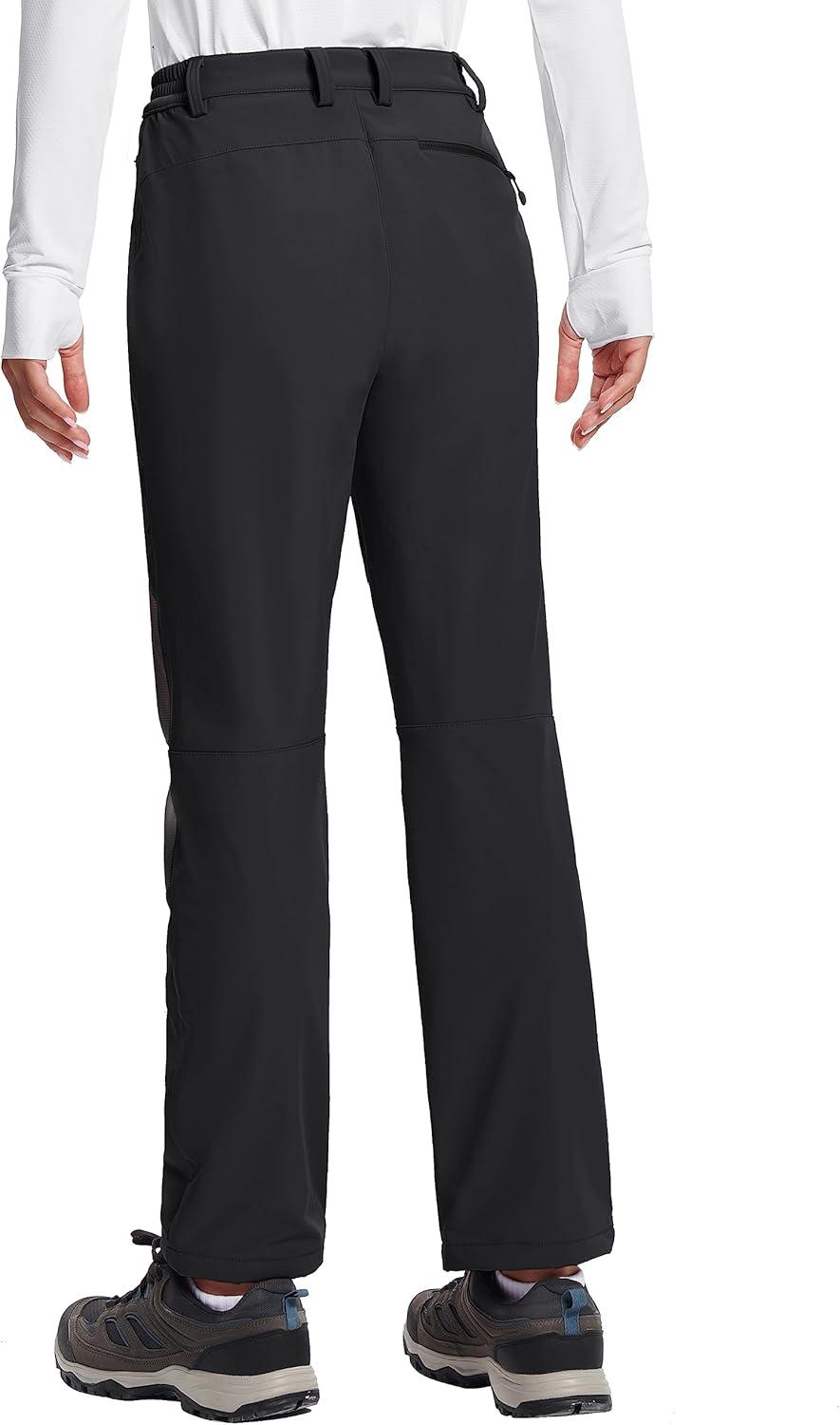 TACVASEN Women’s Fleece Lined Hiking Pants Warm Windproof Softshell Outdoor Winter Snow Ski Pants with Zipper Pockets(Black)