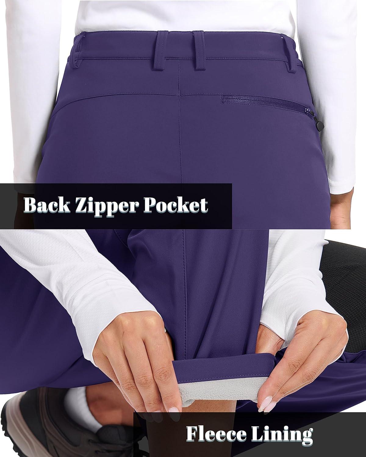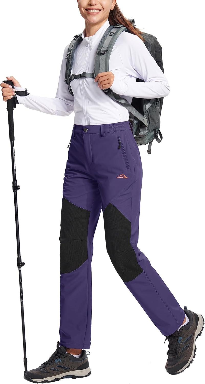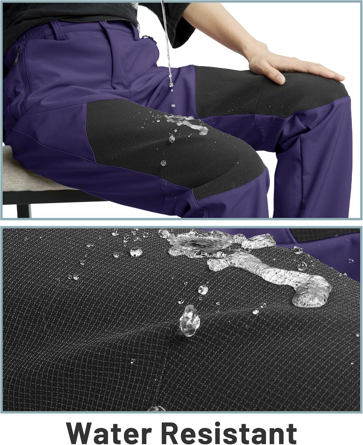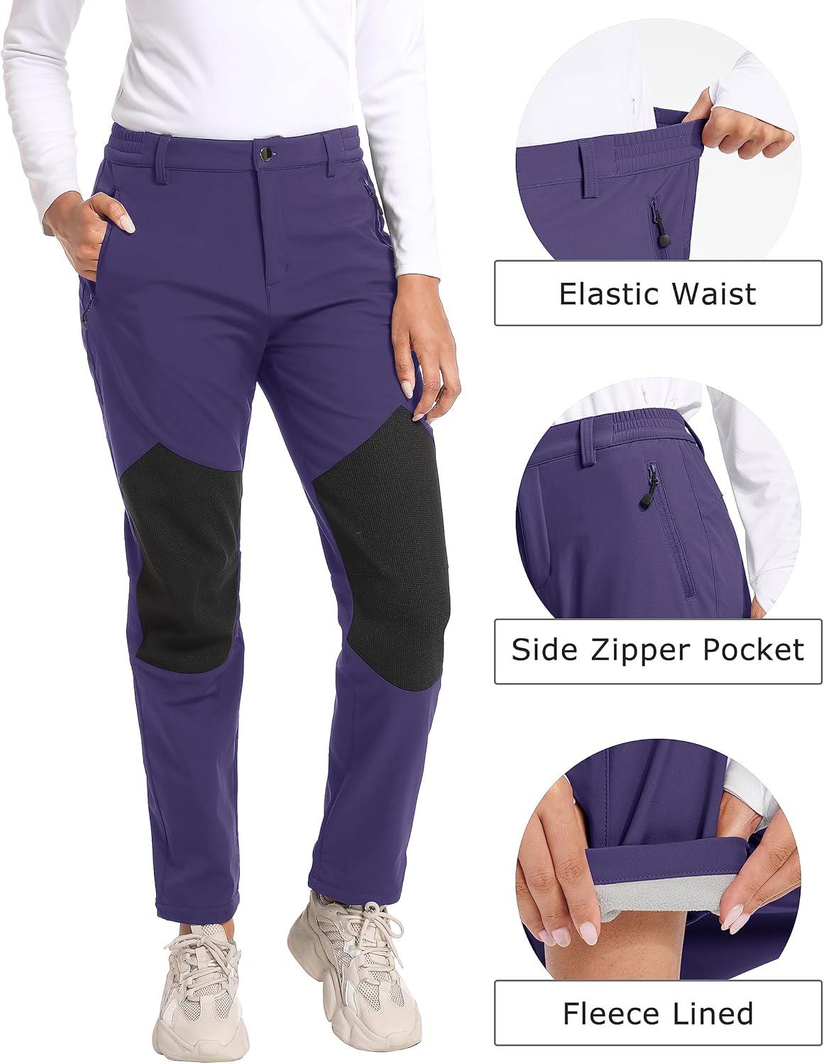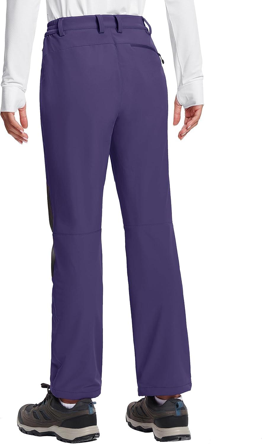 TACVASEN Women’s Fleece Lined Hiking Pants Warm Windproof Softshell Outdoor Winter Snow Ski Pants with Zipper Pockets(Dark Purple)