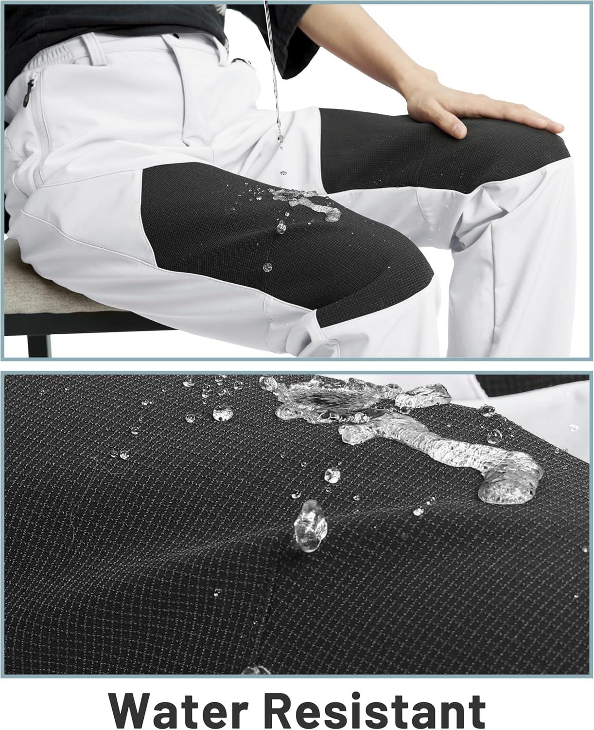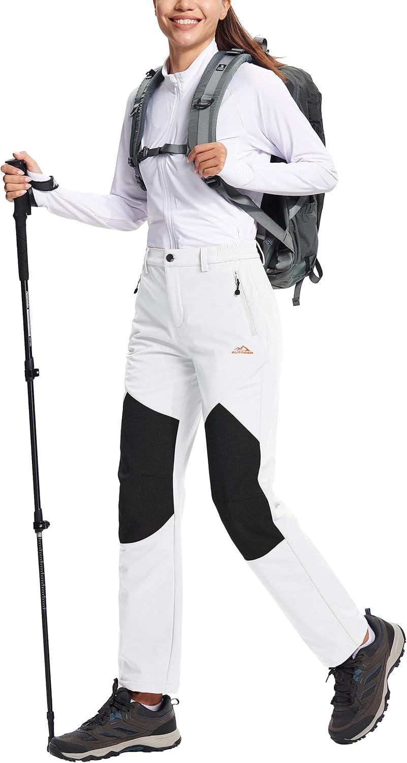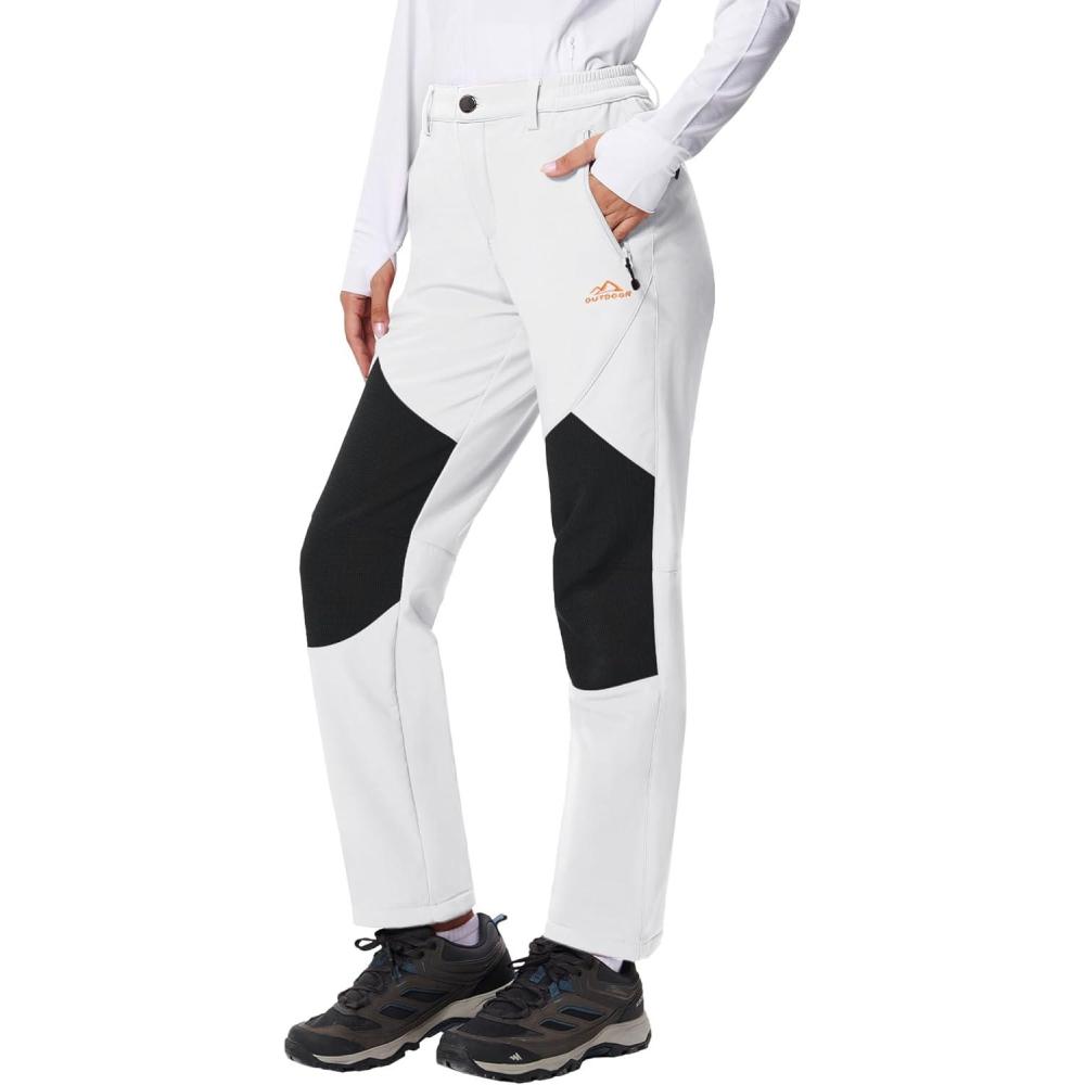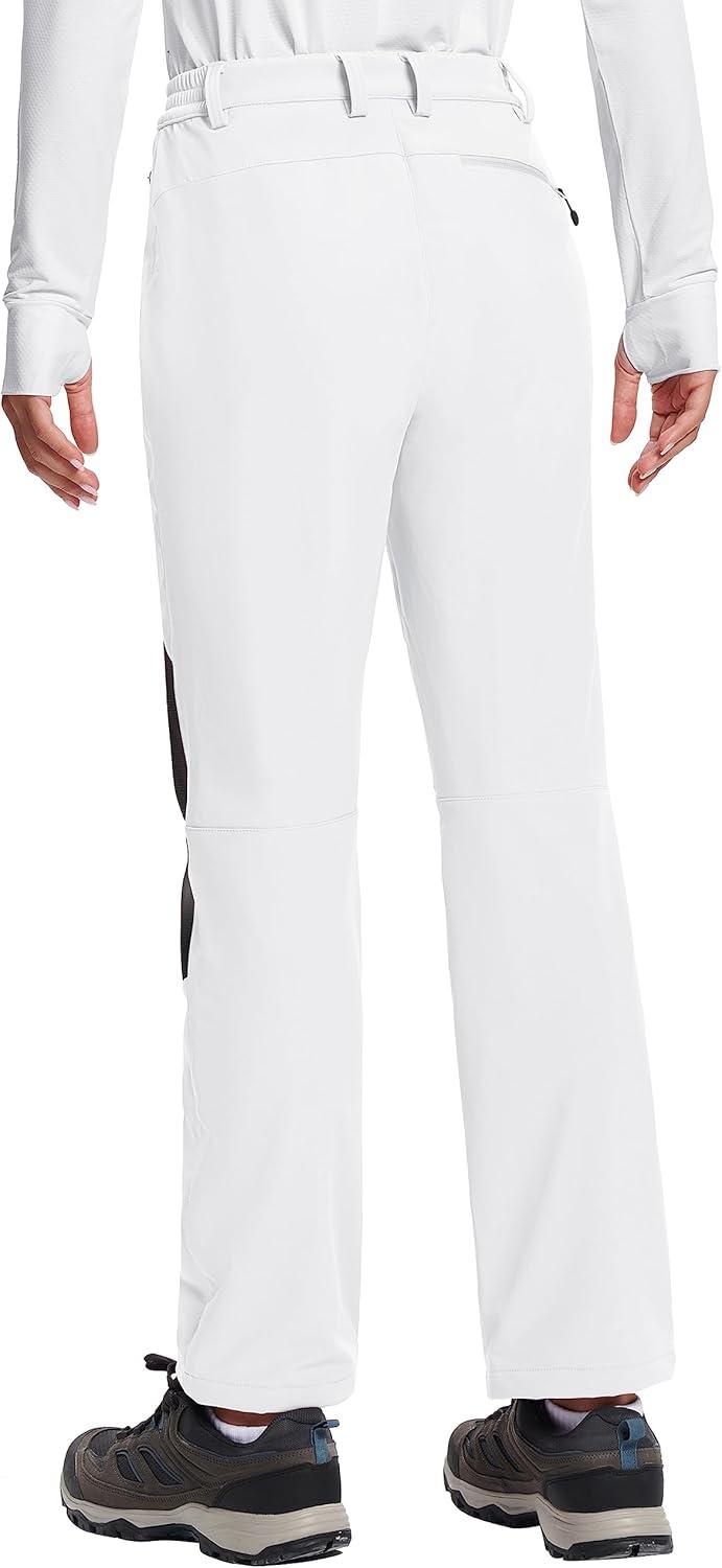 TACVASEN Women’s Fleece Lined Hiking Pants Warm Windproof Softshell Outdoor Winter Snow Ski Pants with Zipper Pockets(White)