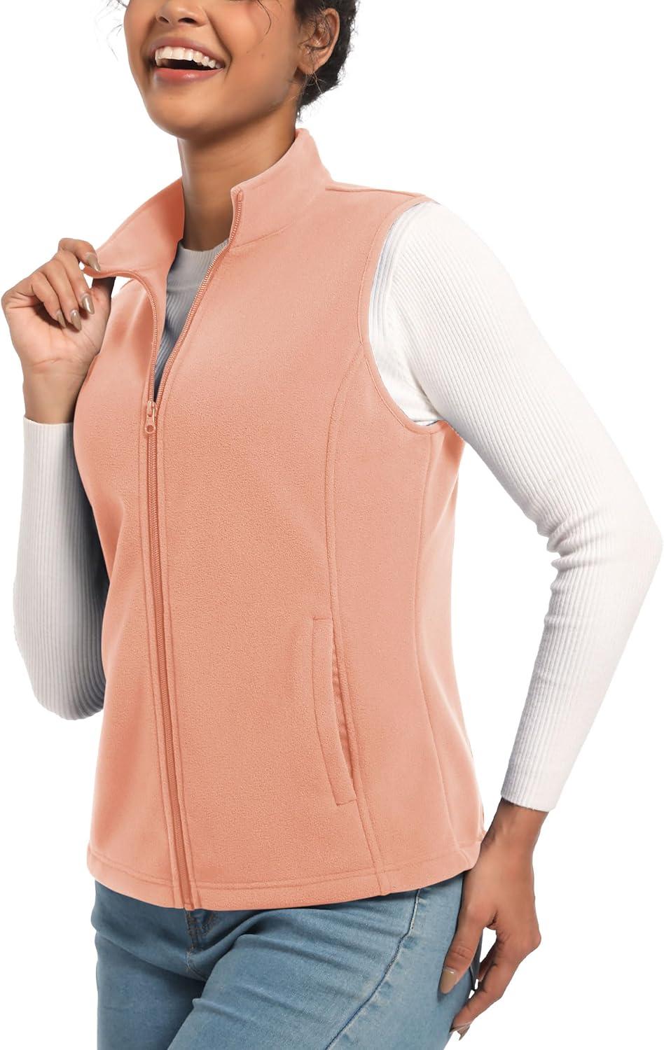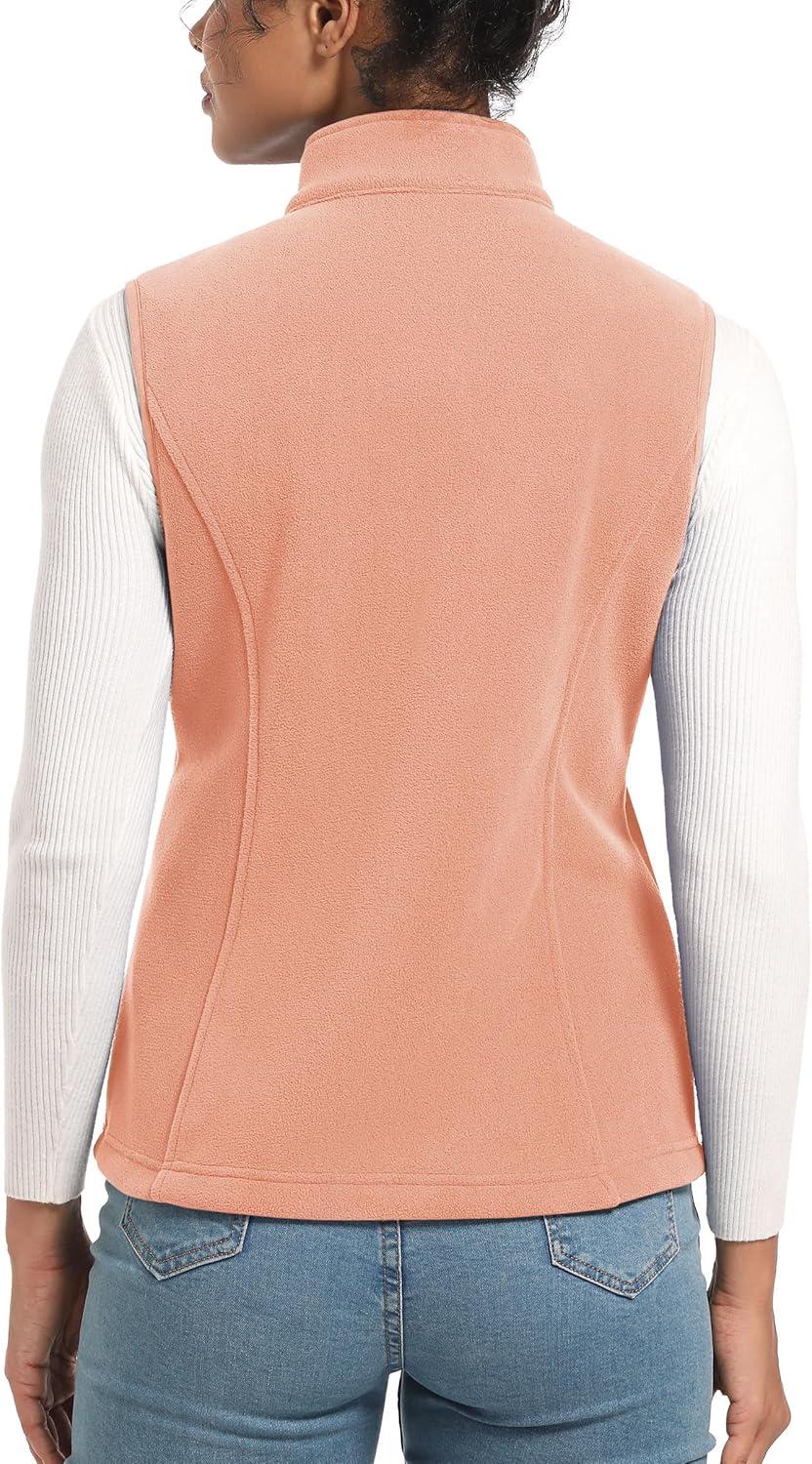 TACVASEN Women’s Fleece Vest Lightweight Warm Vests Outerwear Sleeveless Zip Jacket Fall Winter Soft Vest with Pockets(Apricot)