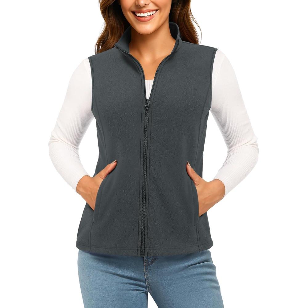 TACVASEN Women’s Fleece Vest Lightweight Warm Vests Outerwear Sleeveless Zip Jacket Fall Winter Soft Vest with Pockets(Darkgrey)