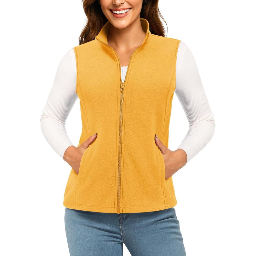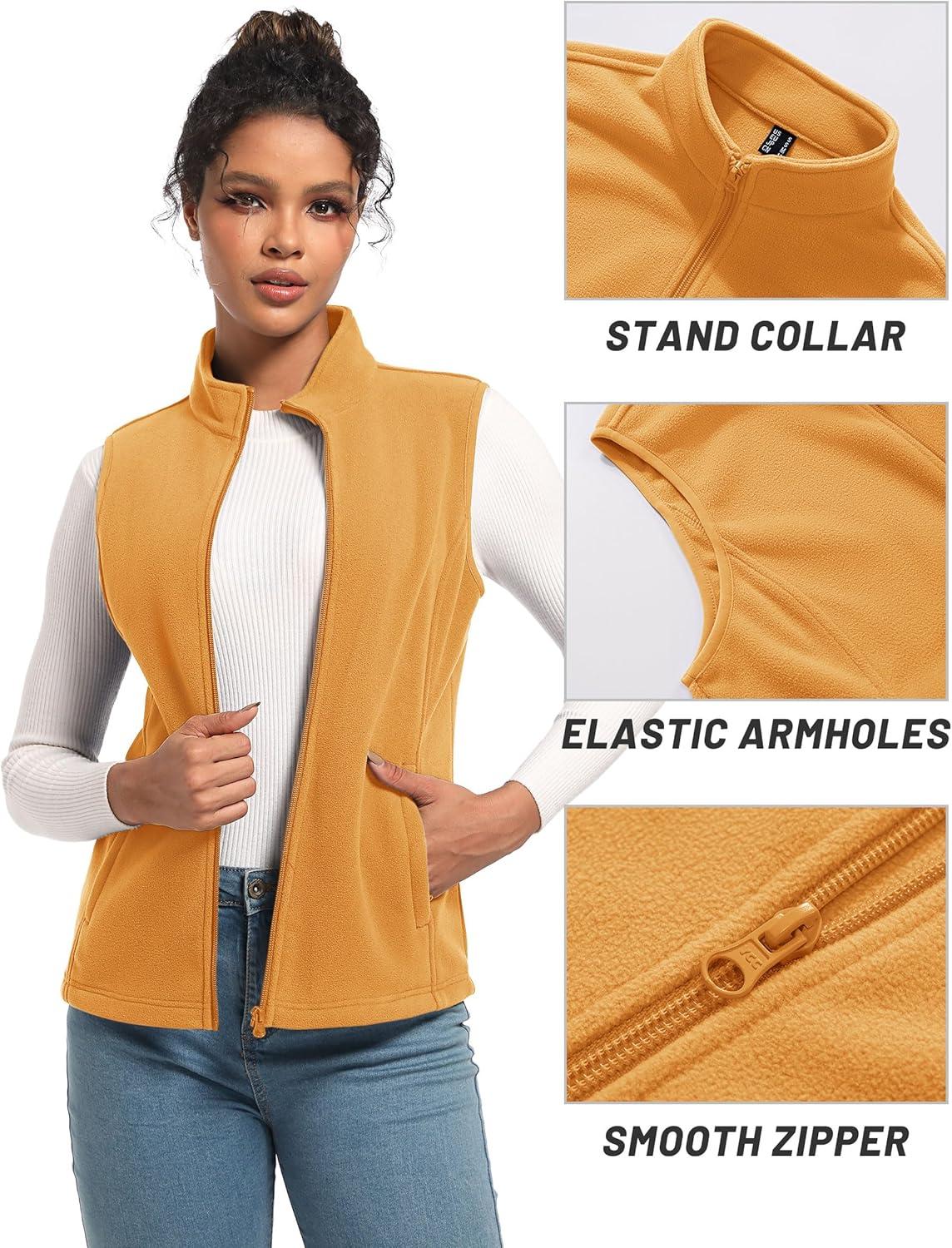 TACVASEN Women’s Fleece Vest Lightweight Warm Vests Outerwear Sleeveless Zip Jacket Fall Winter Soft Vest with Pockets(Ginger)