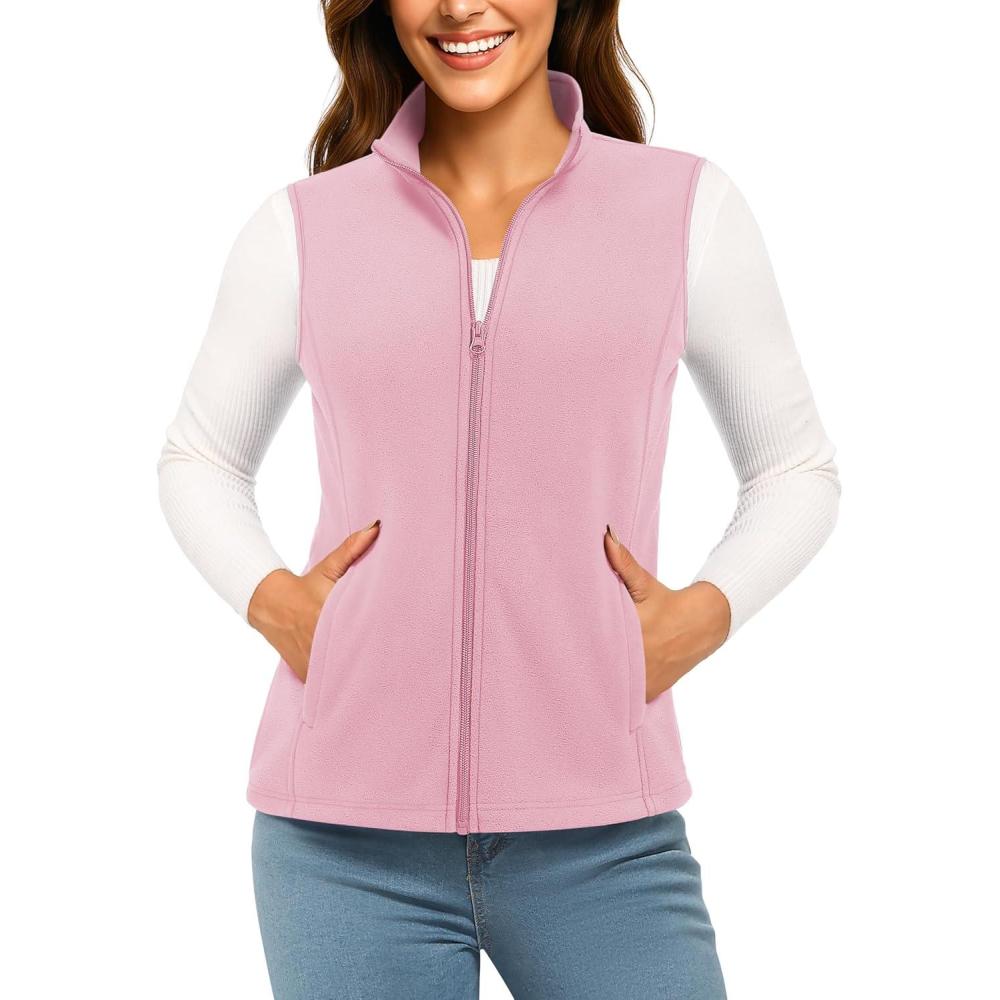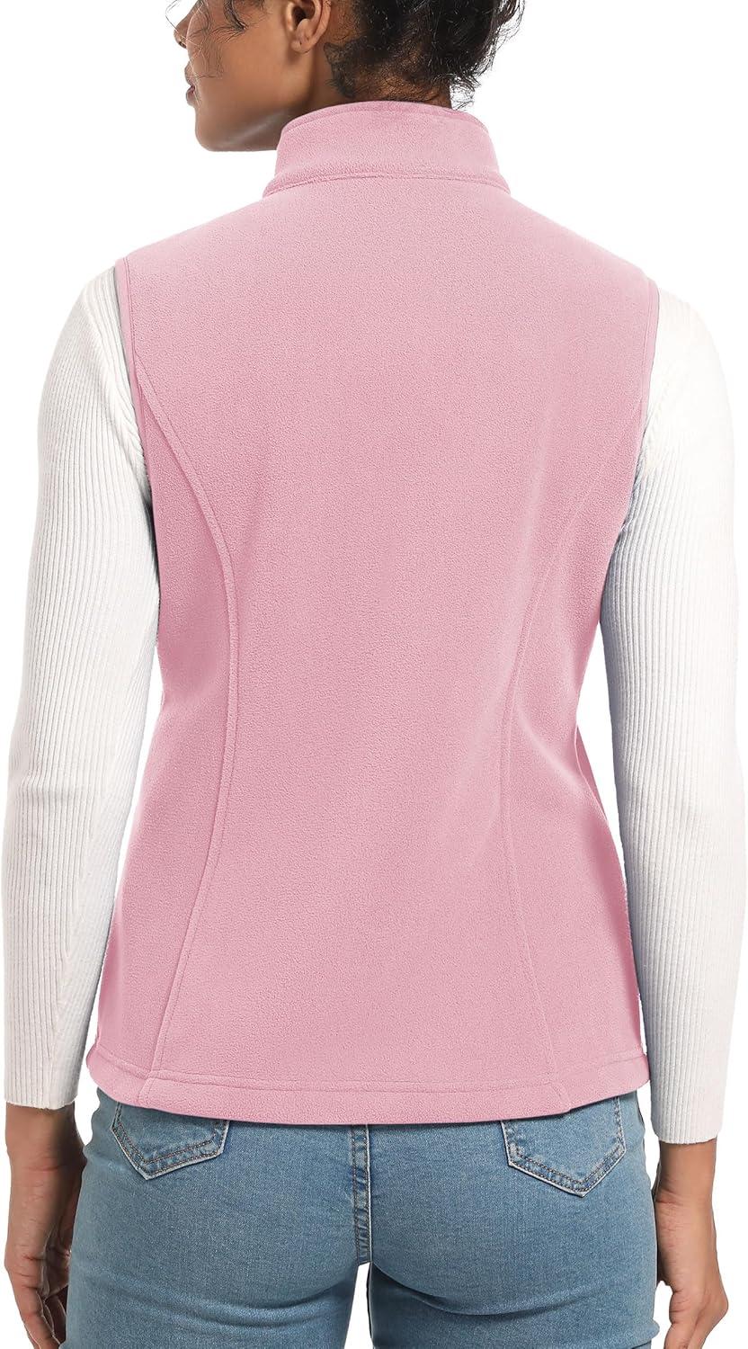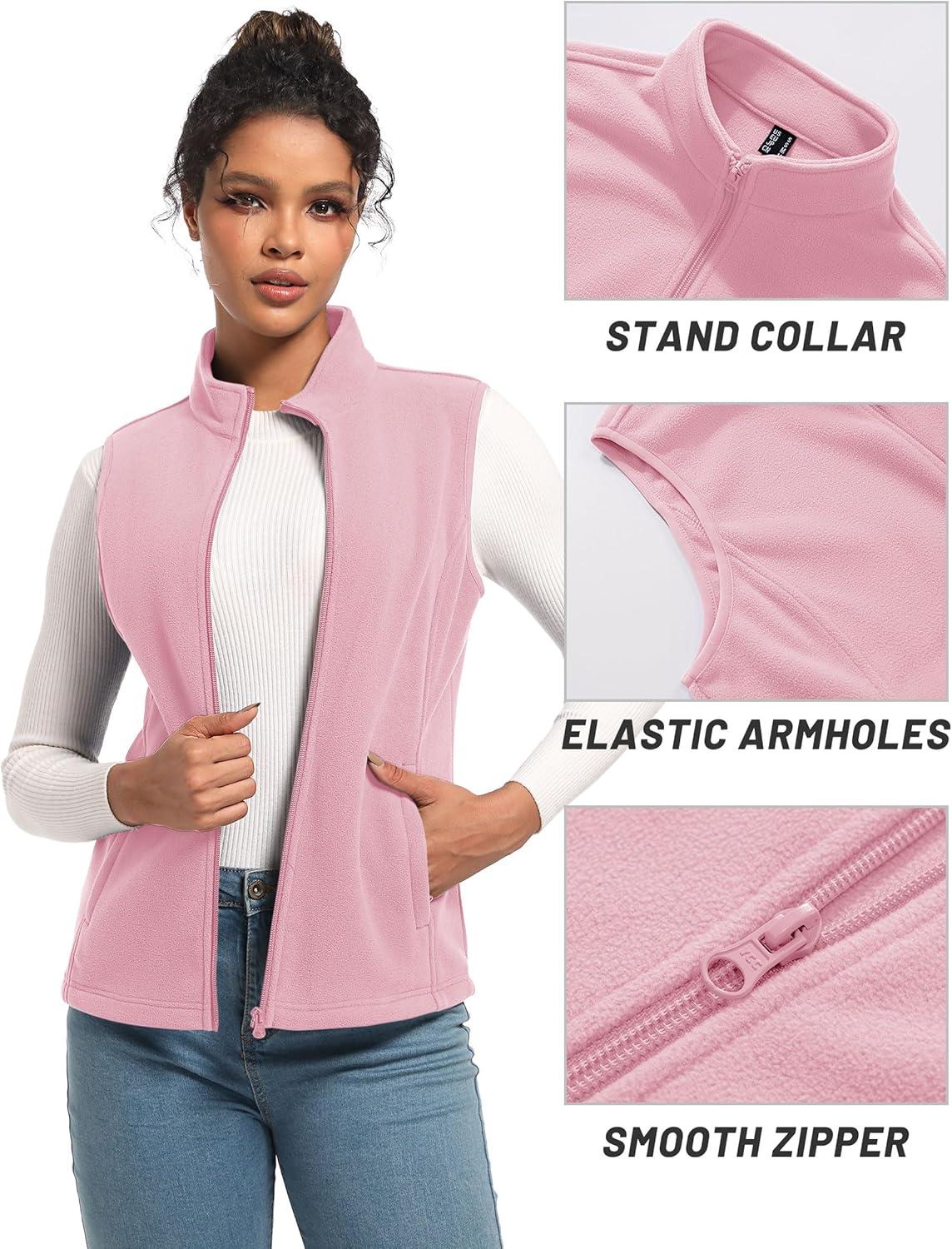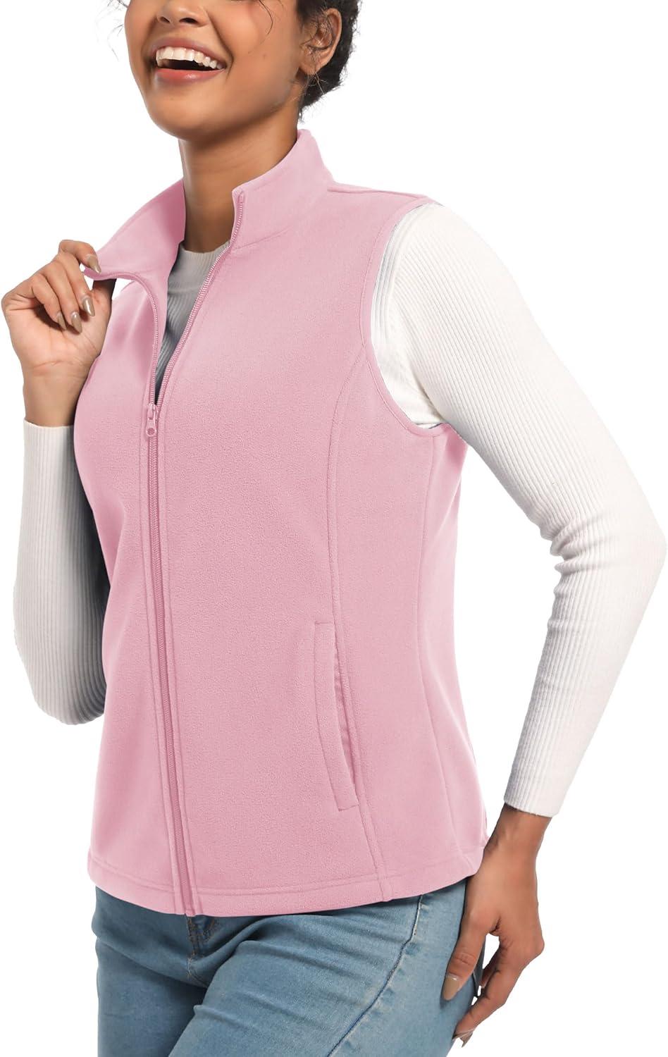 TACVASEN Women’s Fleece Vest Lightweight Warm Vests Outerwear Sleeveless Zip Jacket Fall Winter Soft Vest with Pockets(Pink)
