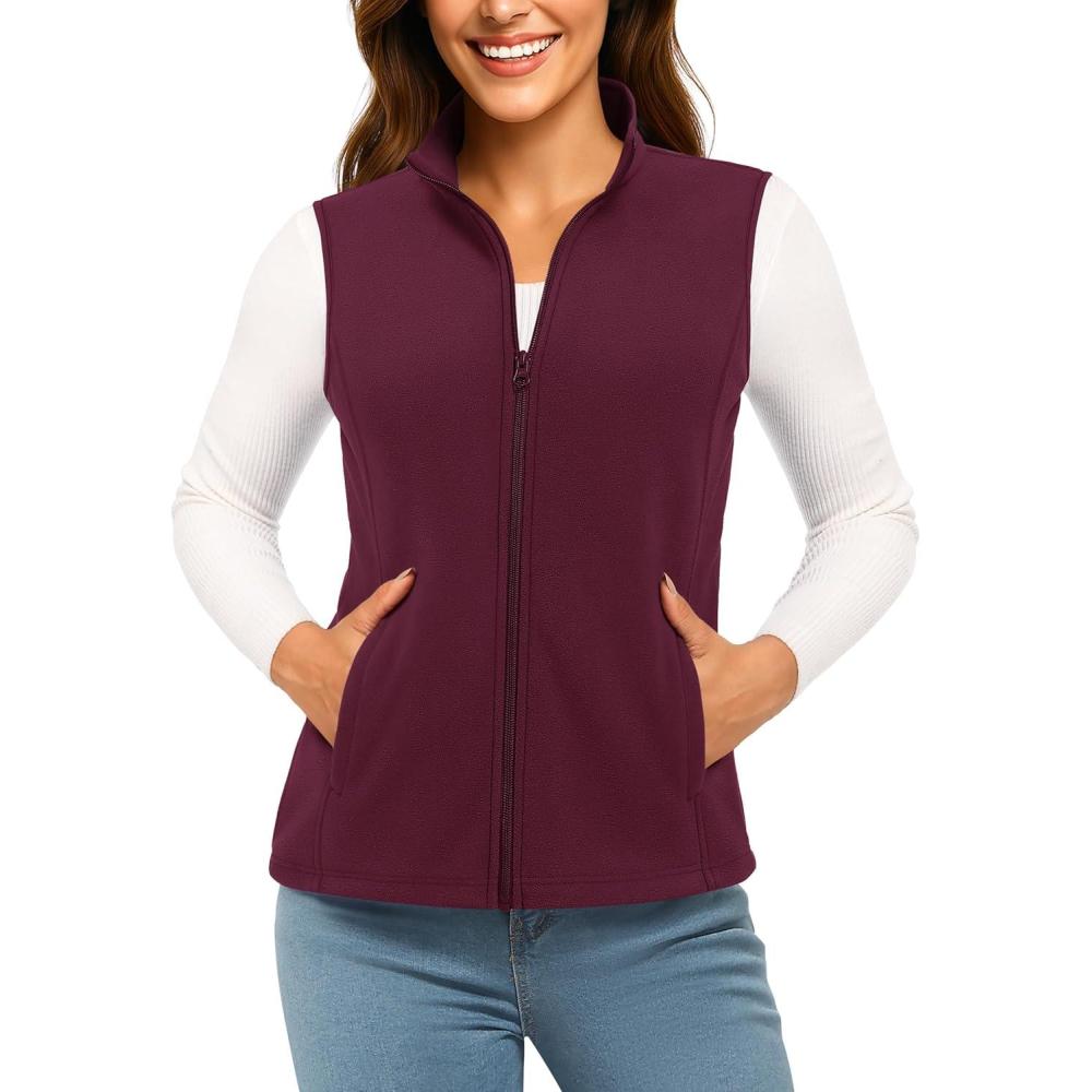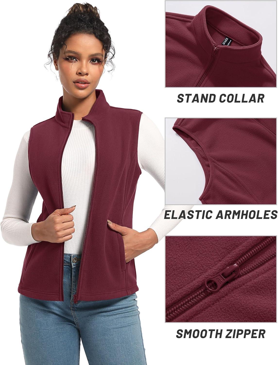 TACVASEN Women’s Fleece Vest Lightweight Warm Vests Outerwear Sleeveless Zip Jacket Fall Winter Soft Vest with Pockets(Winered)