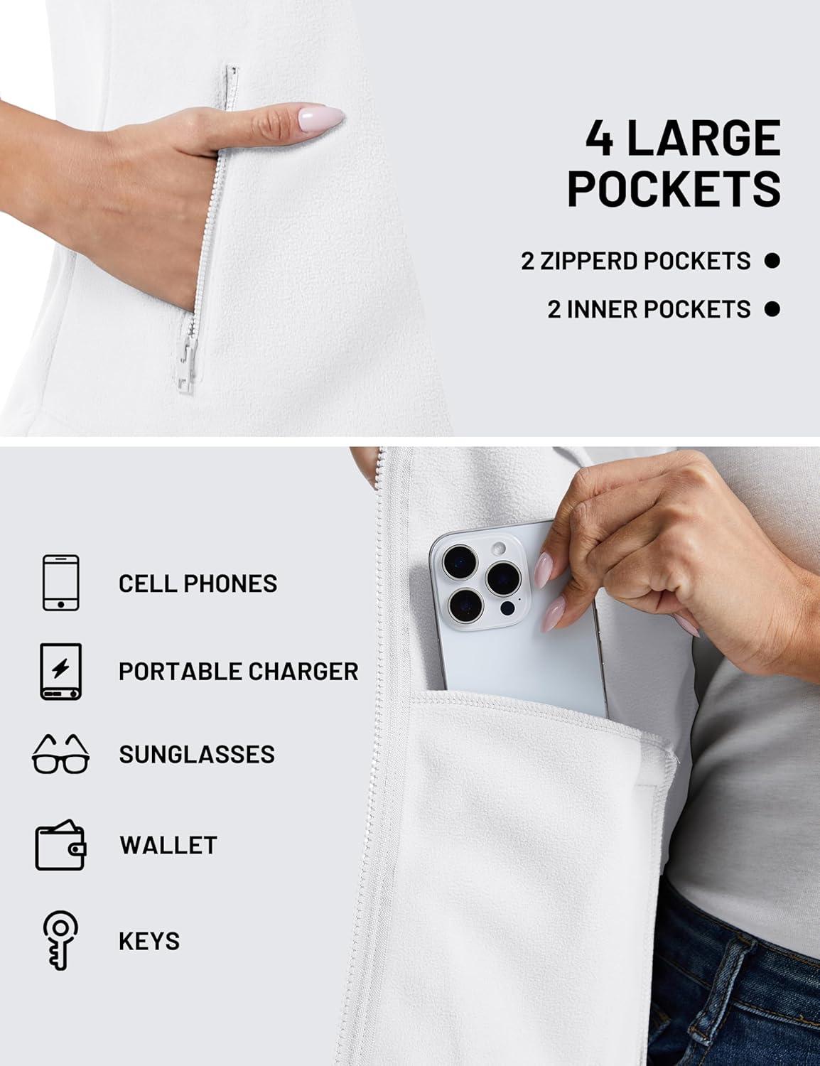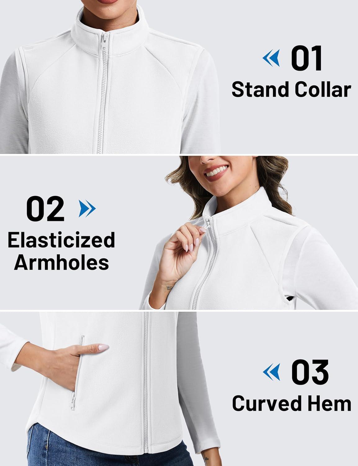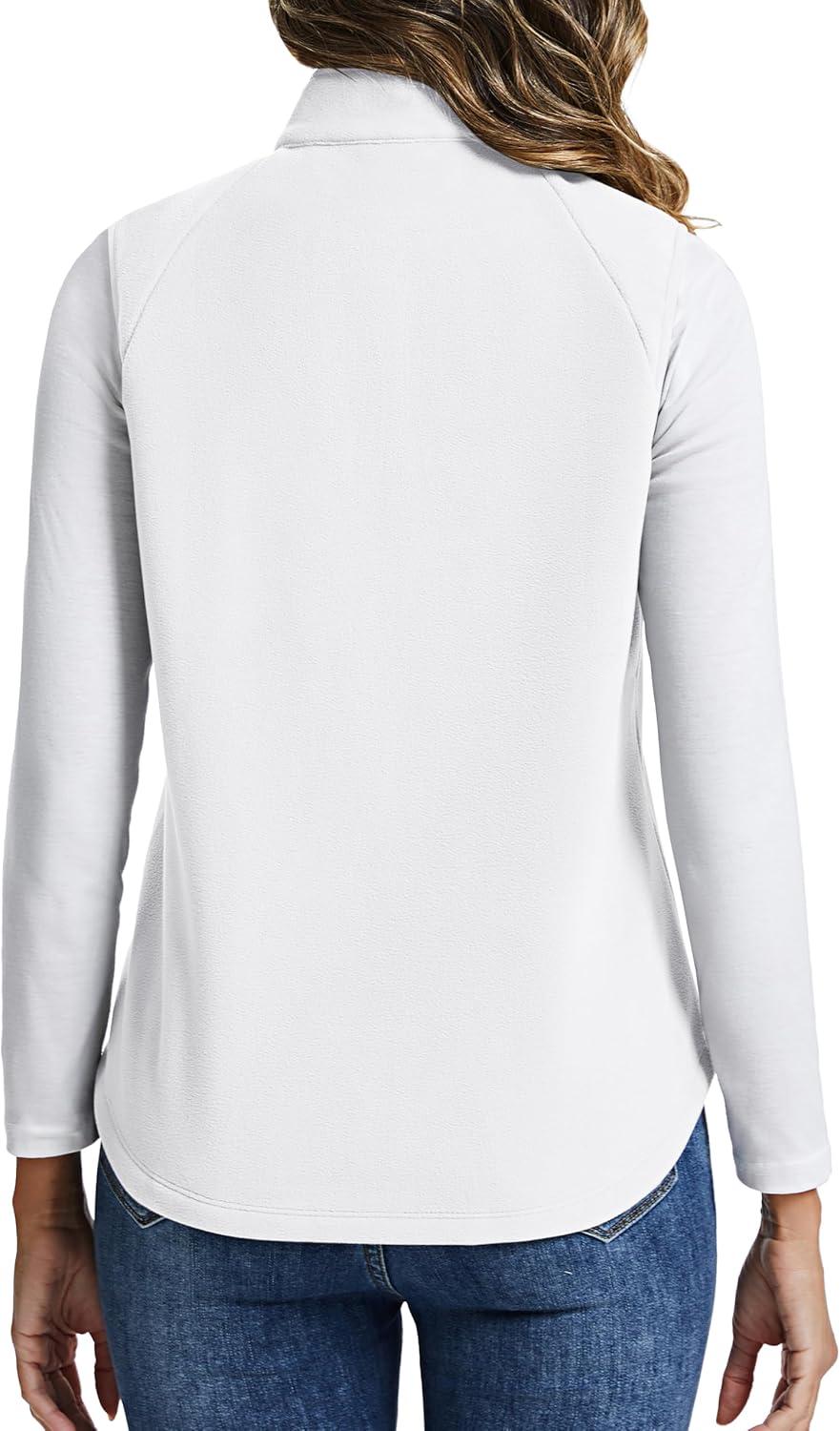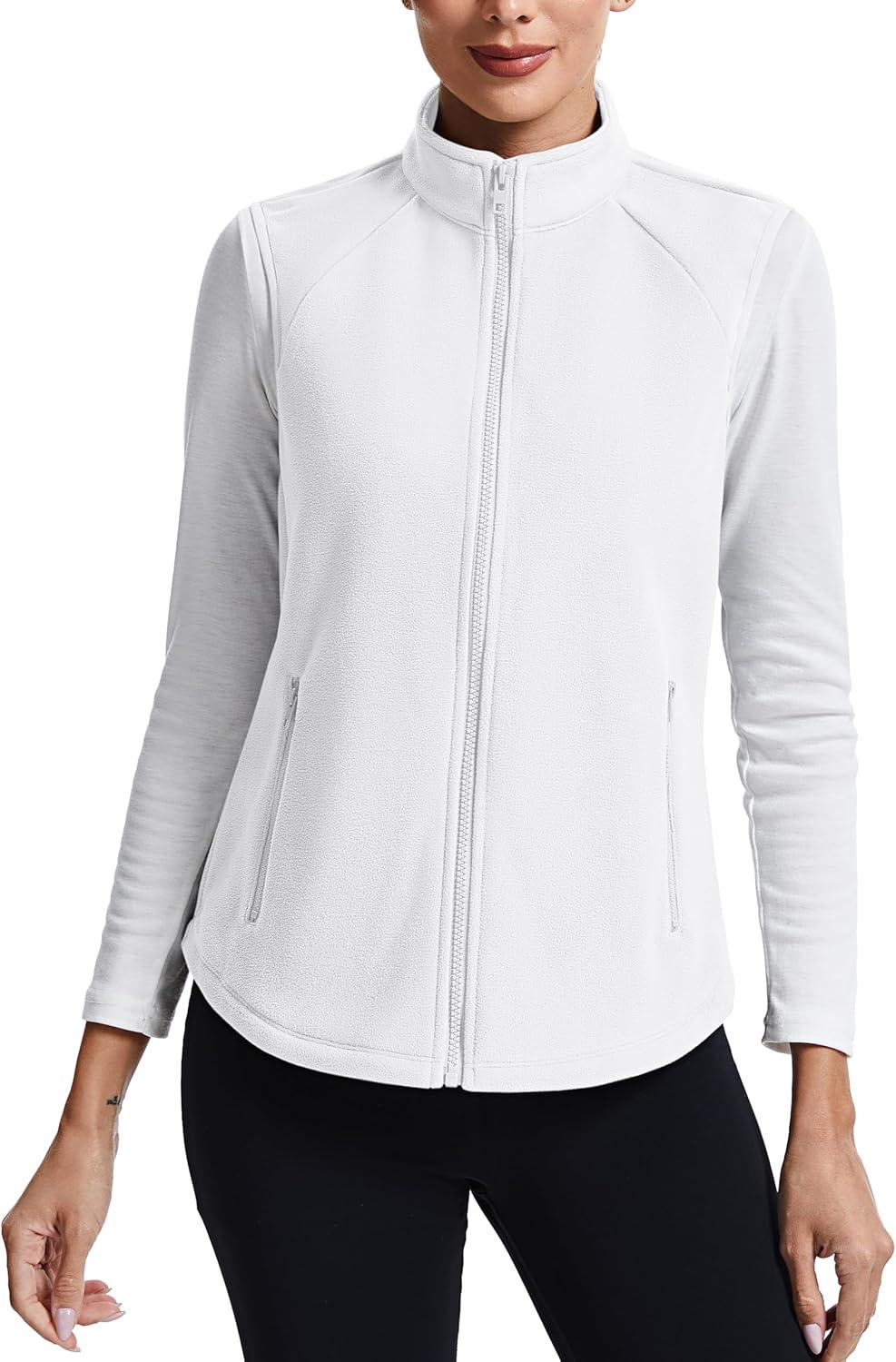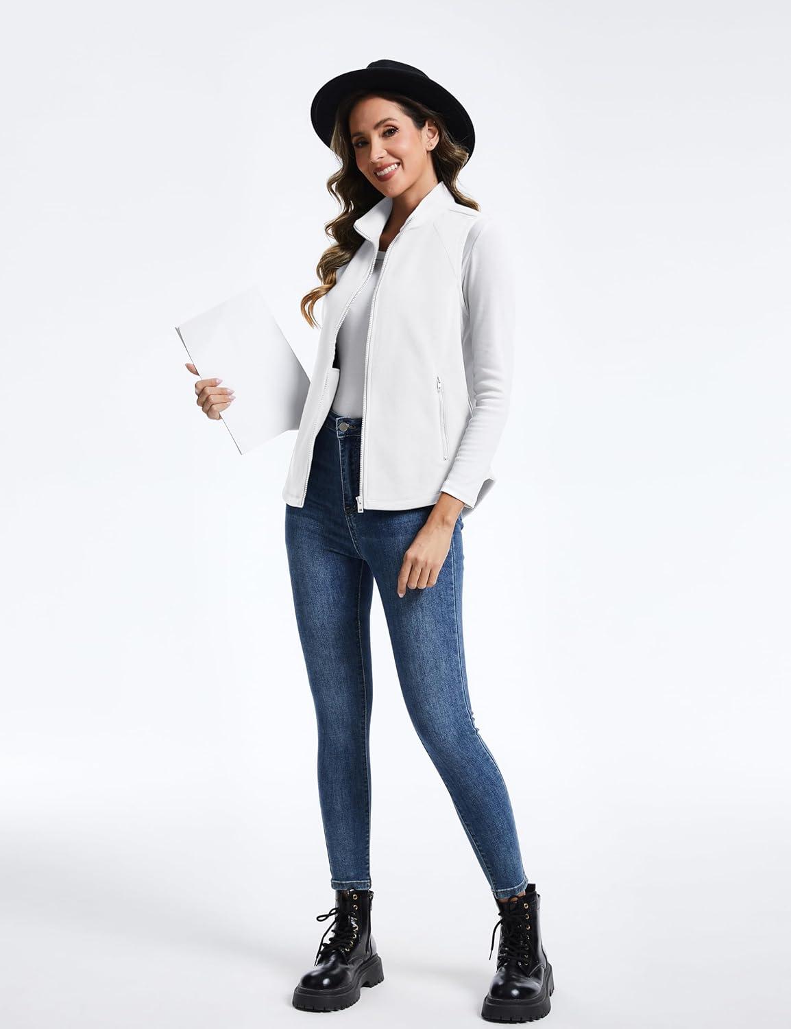 TACVASEN Women’s Fleece Vest Outerwear Lightweight Sleeveless Zip up Jacket with Pockets Warm Polar Soft Fall Winter(White)