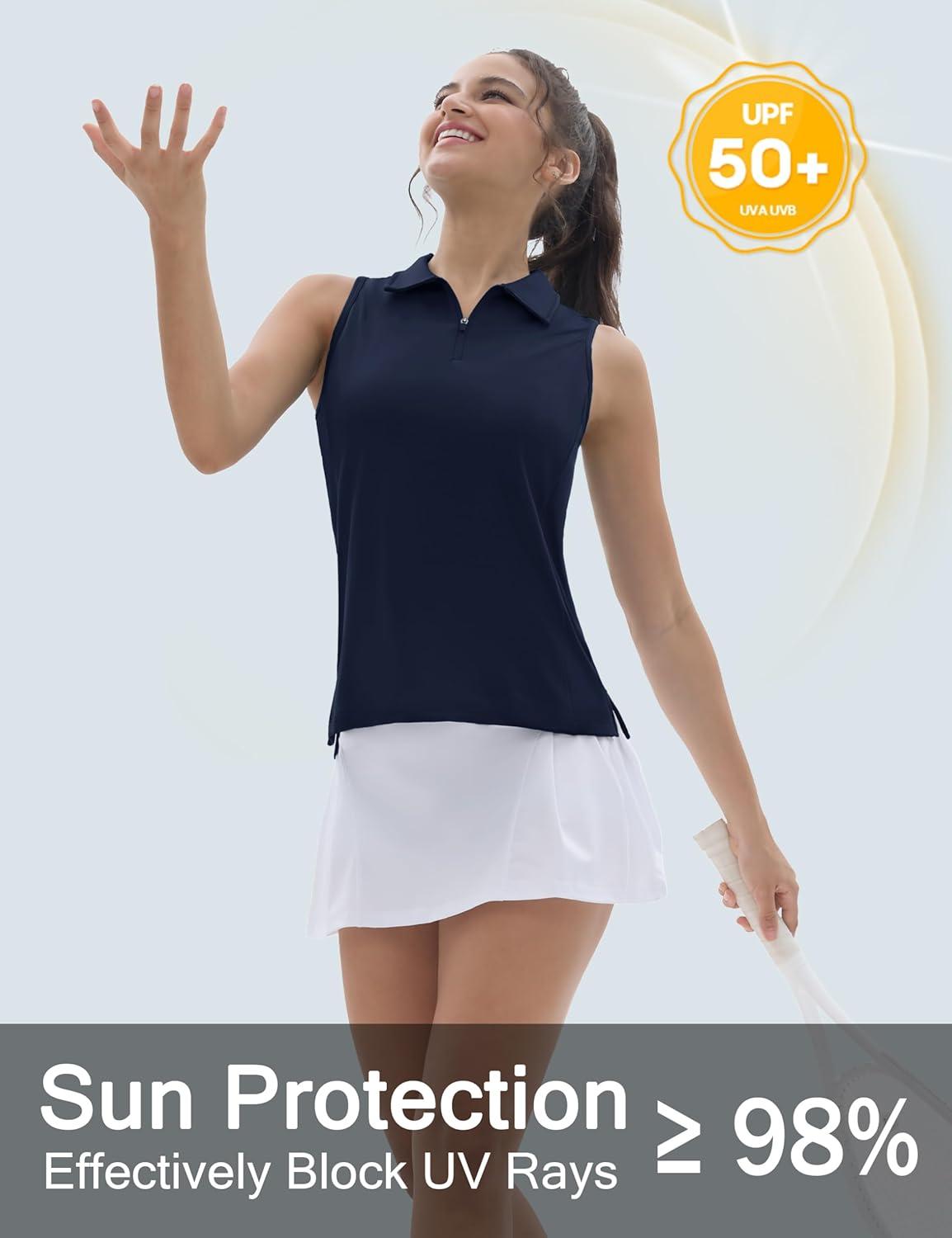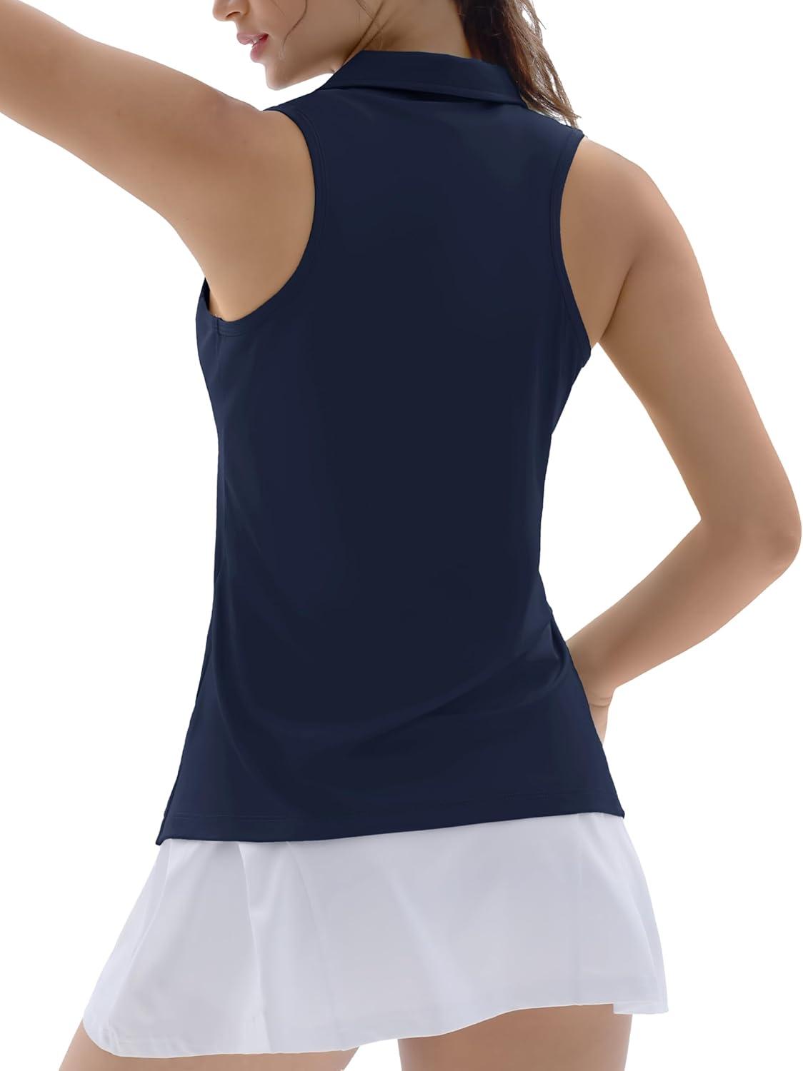 TACVASEN Womens Golf Shirts Sleeveless Racerback Polo Shirt UPF 50+ Zip Up Moisture Wicking Workout Tennis Athletic Tank Tops(Navy)