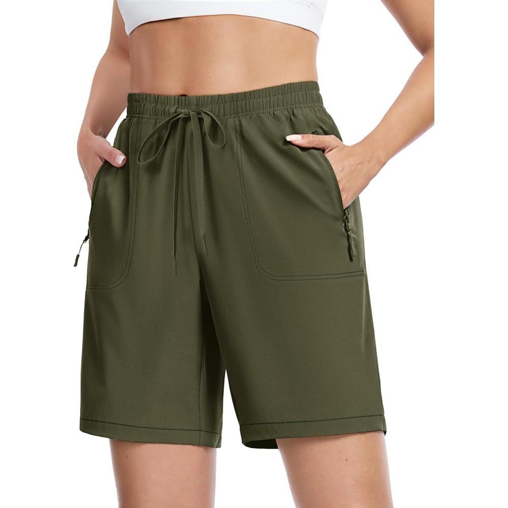 TACVASEN Women’s Hiking Shorts 8″ Quick Dry Lightweight Water Resistant Athletic Shorts with Pockets Outdoor Golf Active(Army Green)