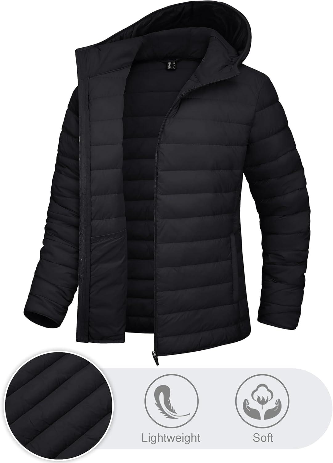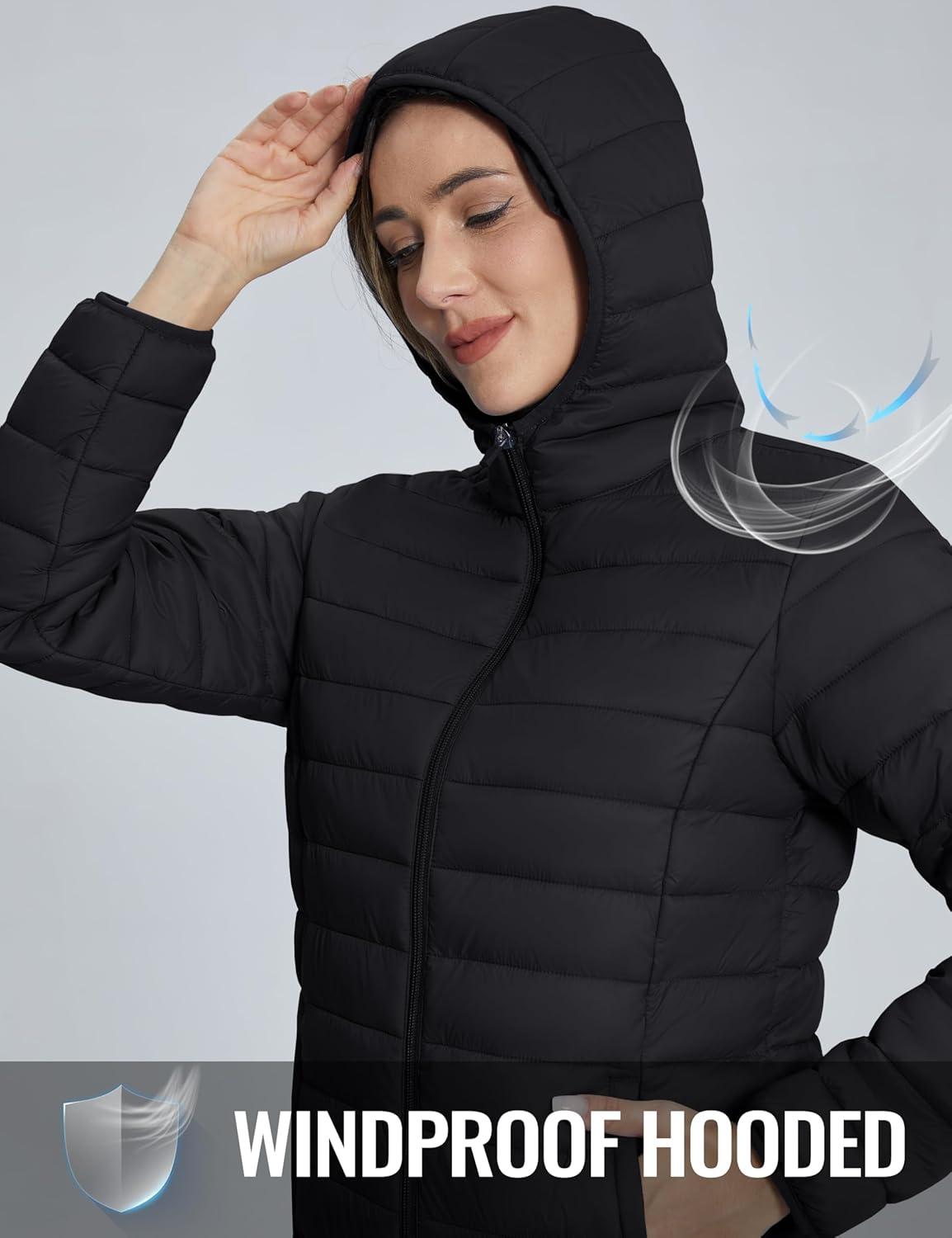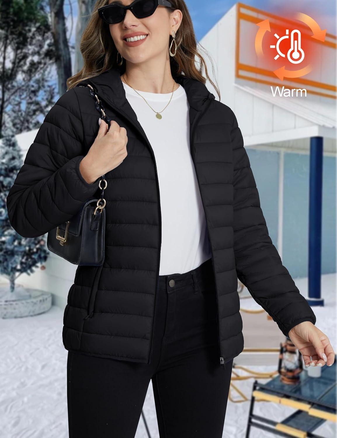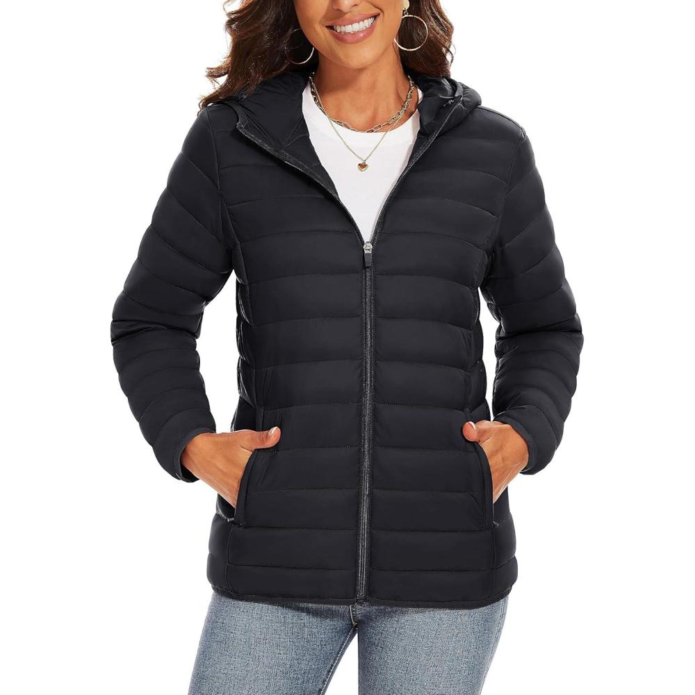 TACVASEN Women’s Lightweight Puffer Jacket with Hood Pockets Quilted Padded Full-zip Water-Resistant Winter Coat(Black)