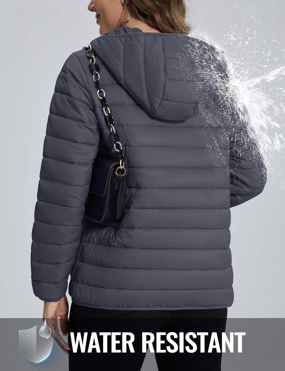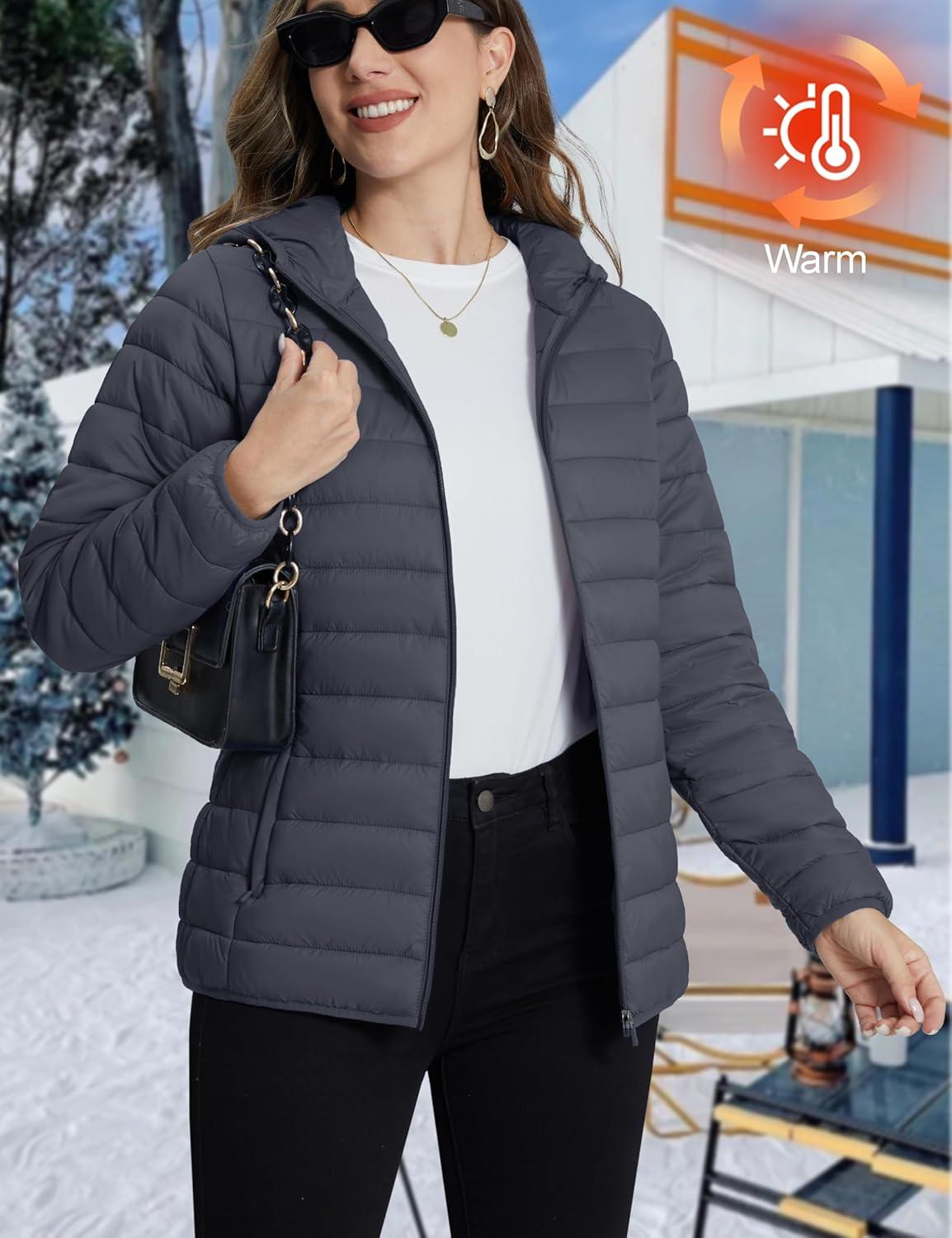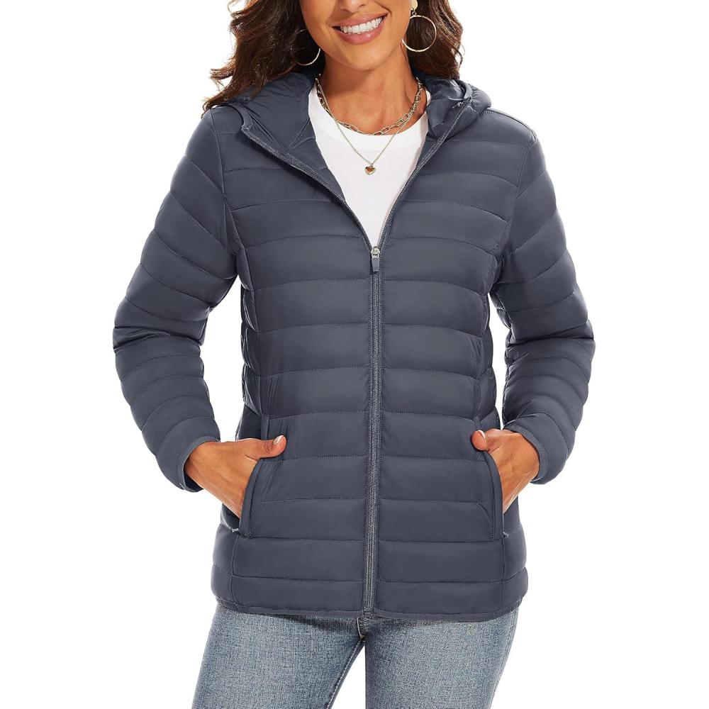 TACVASEN Women’s Lightweight Puffer Jacket with Hood Pockets Quilted Padded Full-zip Water-Resistant Winter Coat(Dark Grey)