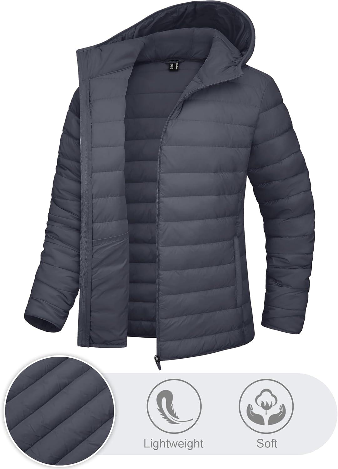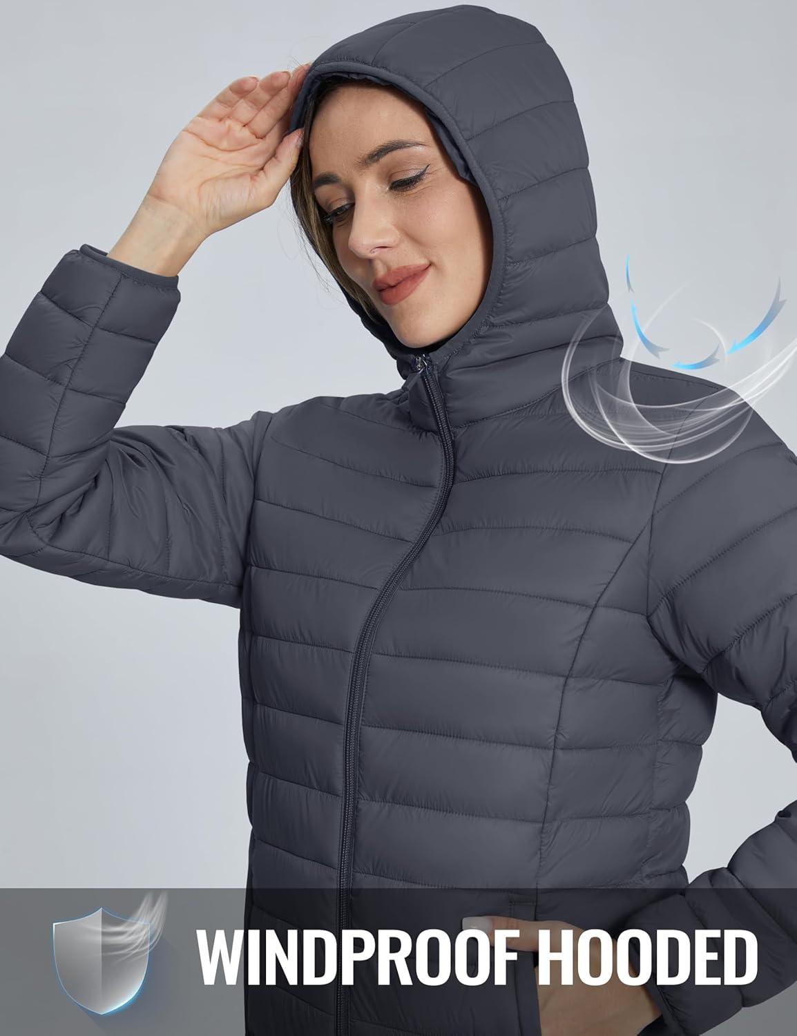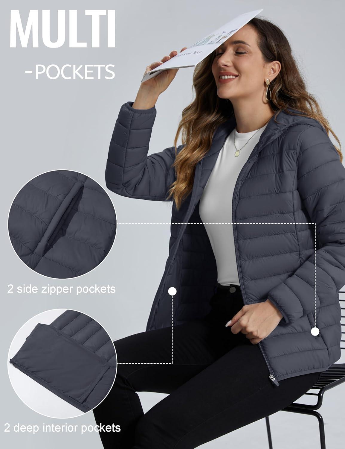 TACVASEN Women’s Lightweight Puffer Jacket with Hood Pockets Quilted Padded Full-zip Water-Resistant Winter Coat(Dark Grey)