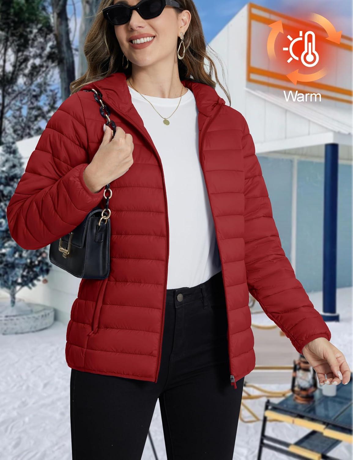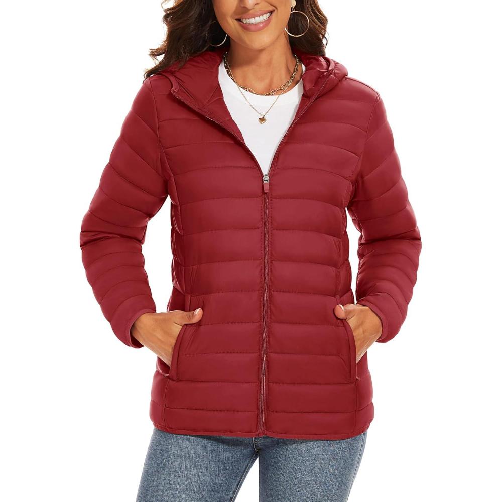 TACVASEN Women’s Lightweight Puffer Jacket with Hood Pockets Quilted Padded Full-zip Water-Resistant Winter Coat(Ginger)