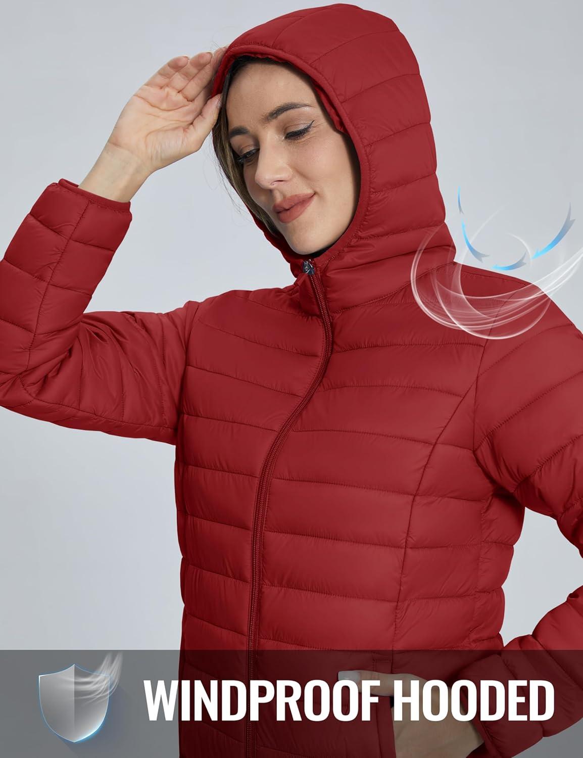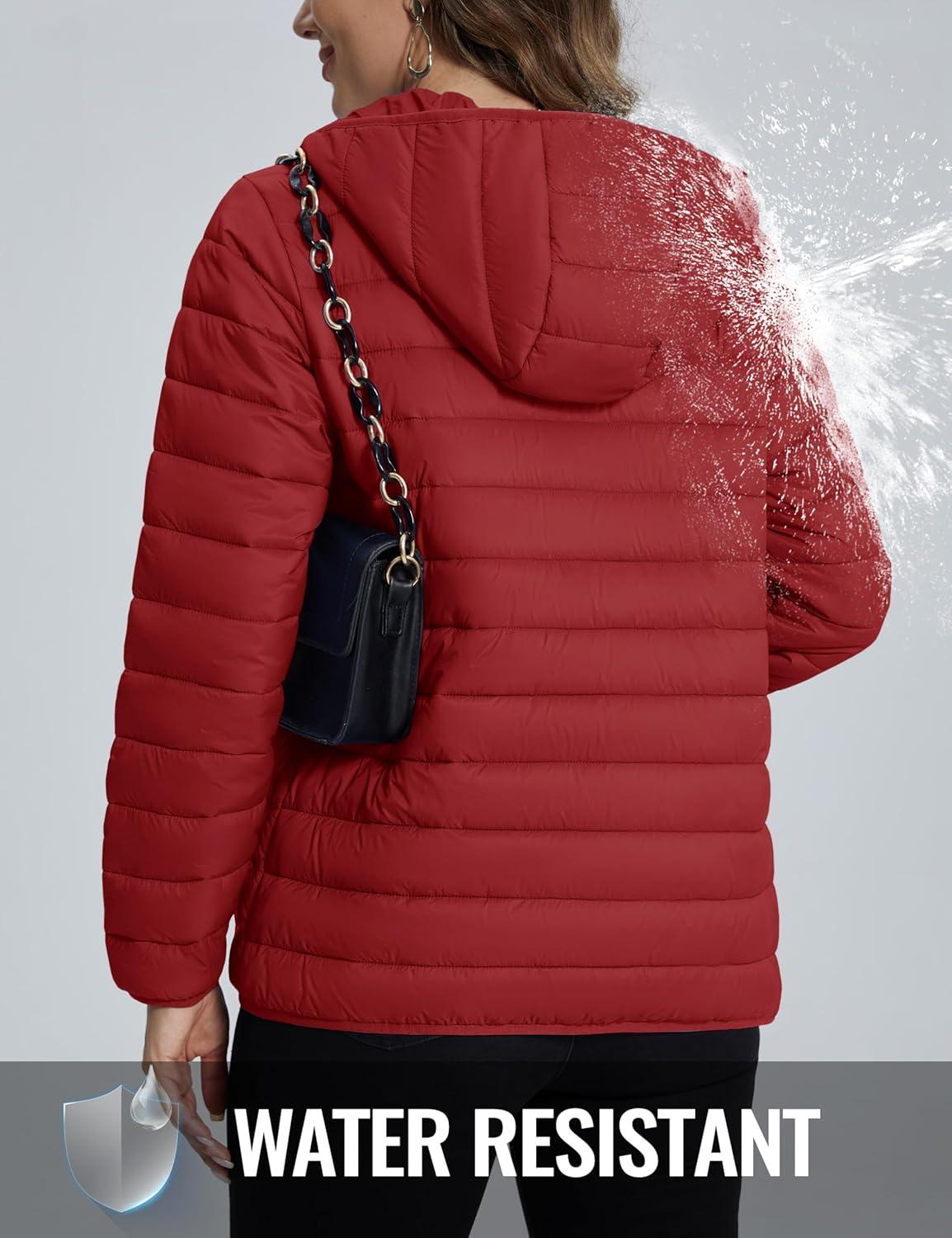 TACVASEN Women’s Lightweight Puffer Jacket with Hood Pockets Quilted Padded Full-zip Water-Resistant Winter Coat(Dark Orange)