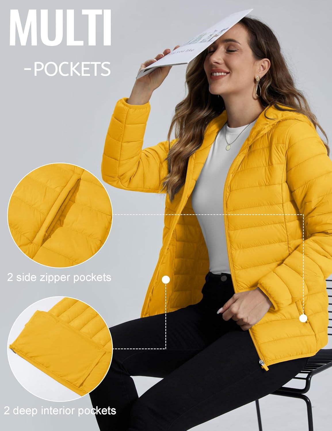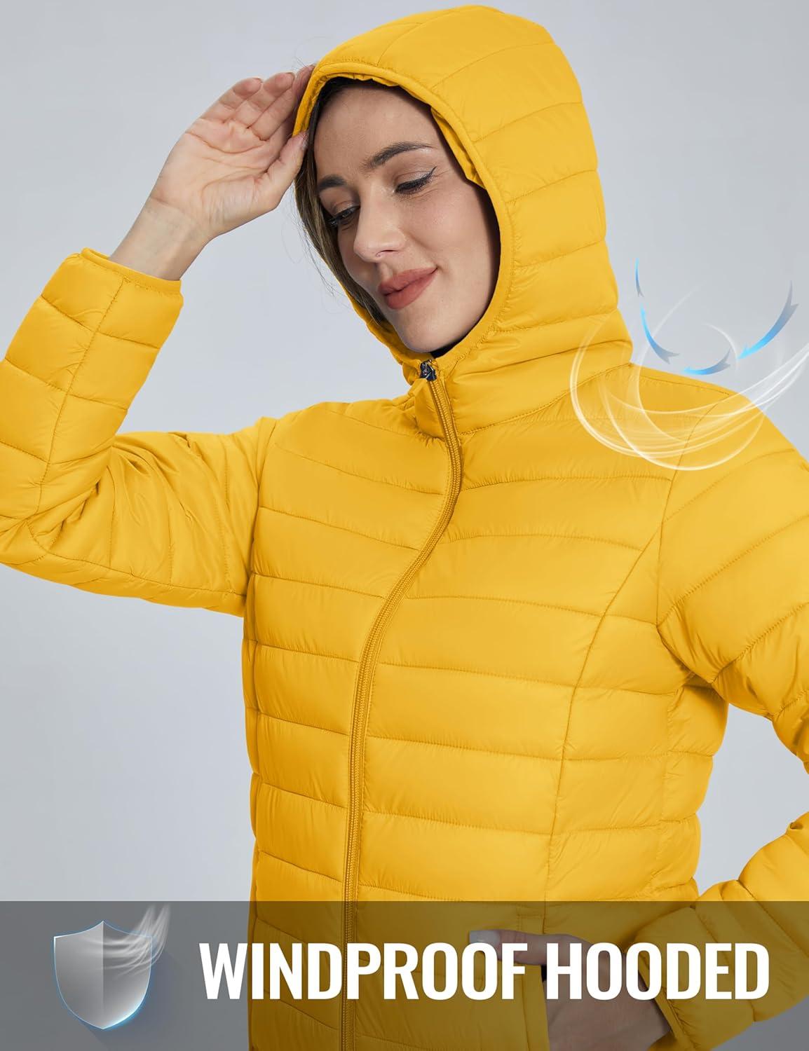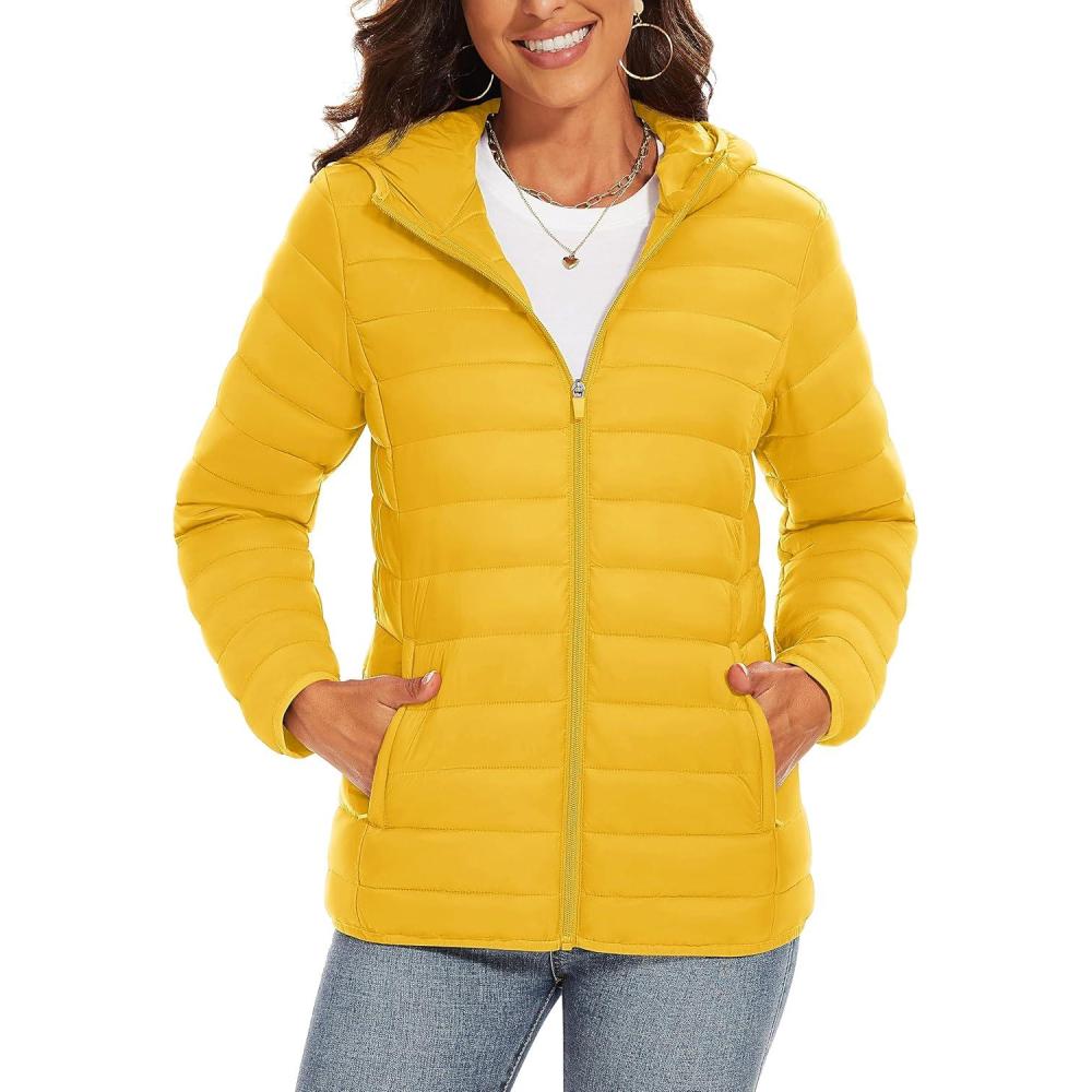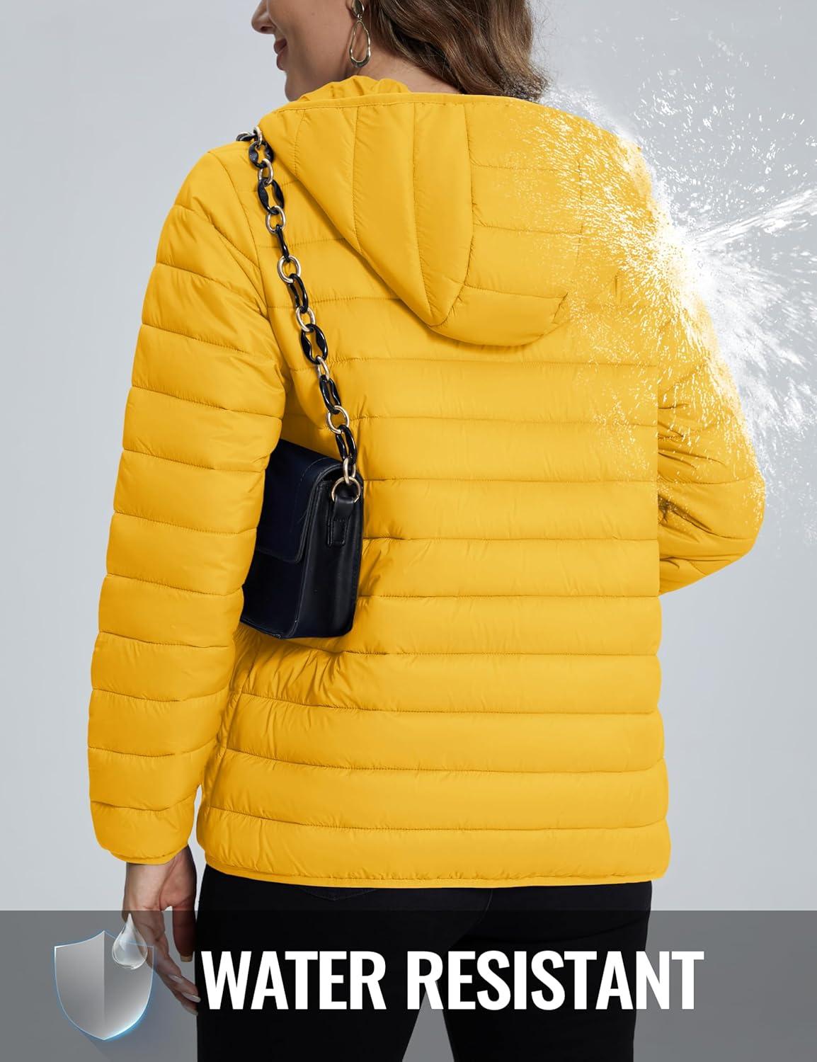 TACVASEN Women’s Lightweight Puffer Jacket with Hood Pockets Quilted Padded Full-zip Water-Resistant Winter Coat(Ginger)